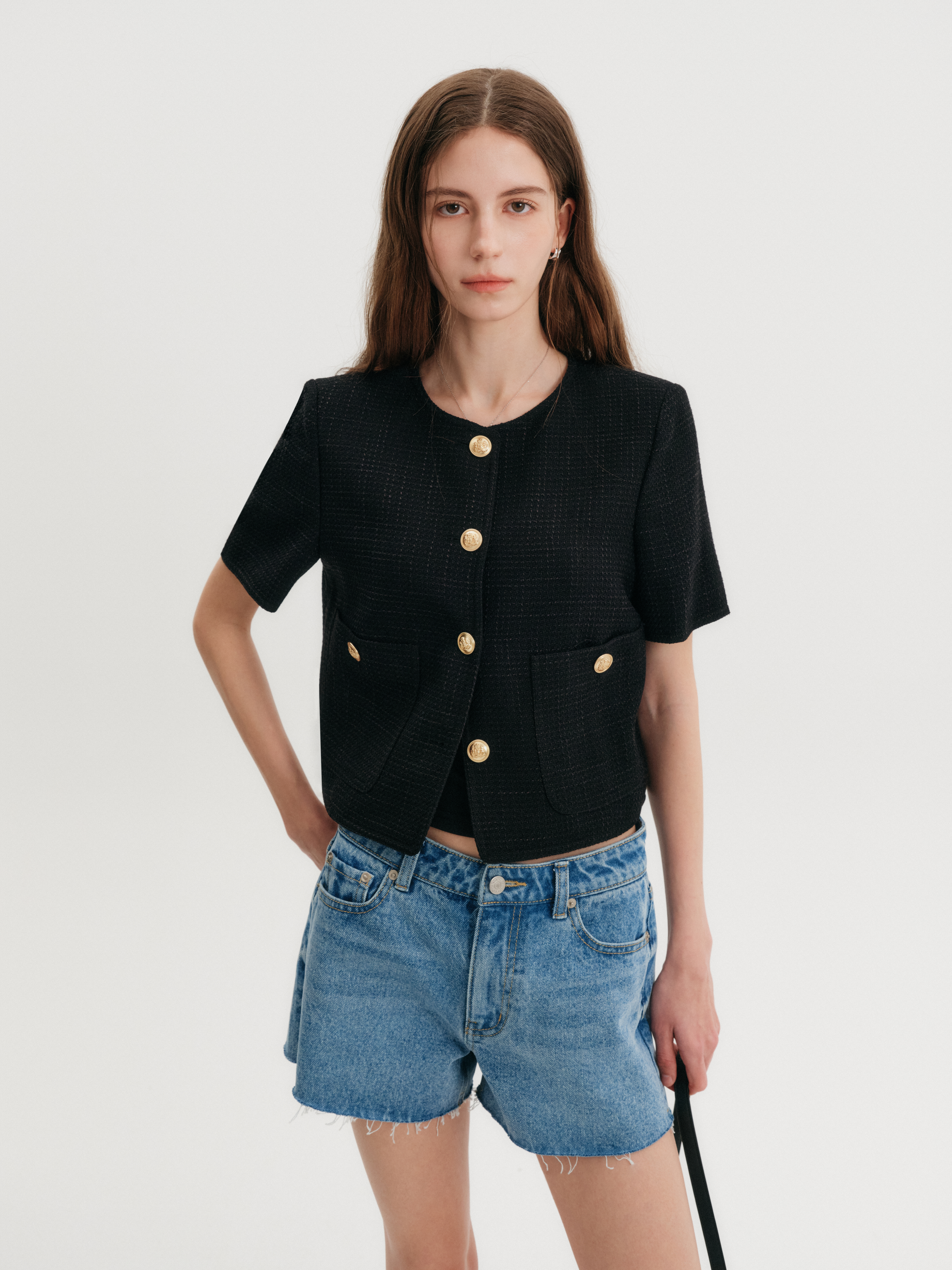 [Influencer pick] DANNA CROP TWEED JACKET_BLACK