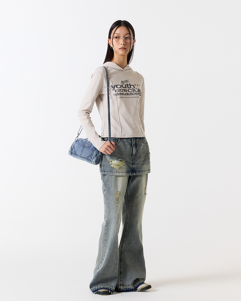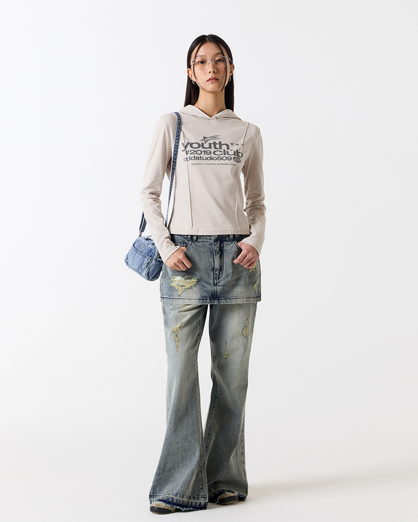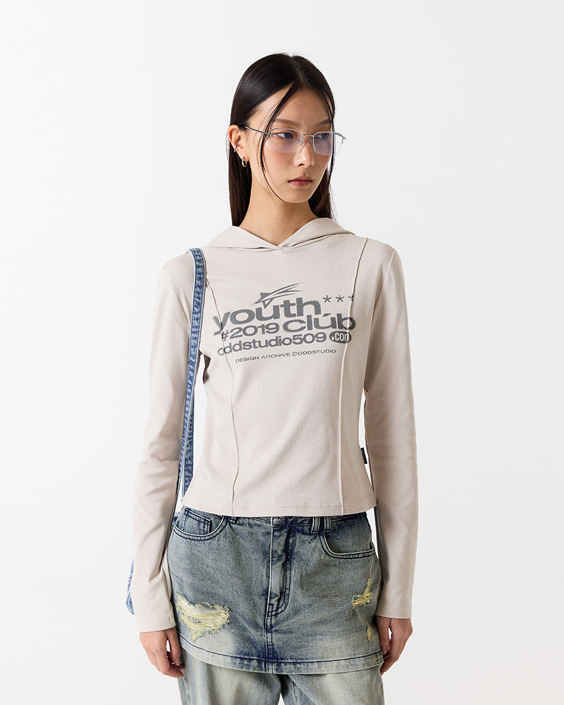 Youth Club Slim Pintuck Hood Long Sleeve - SAND BEIGE