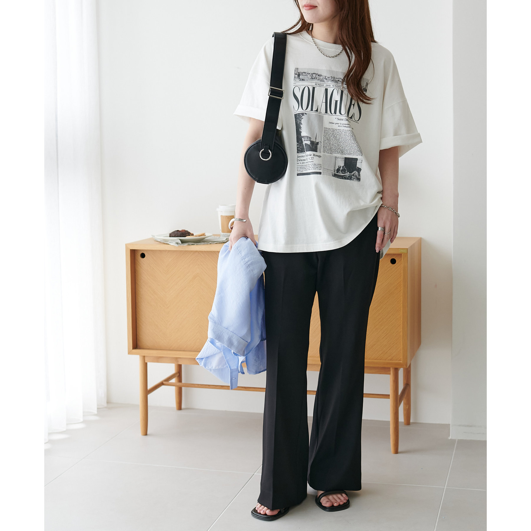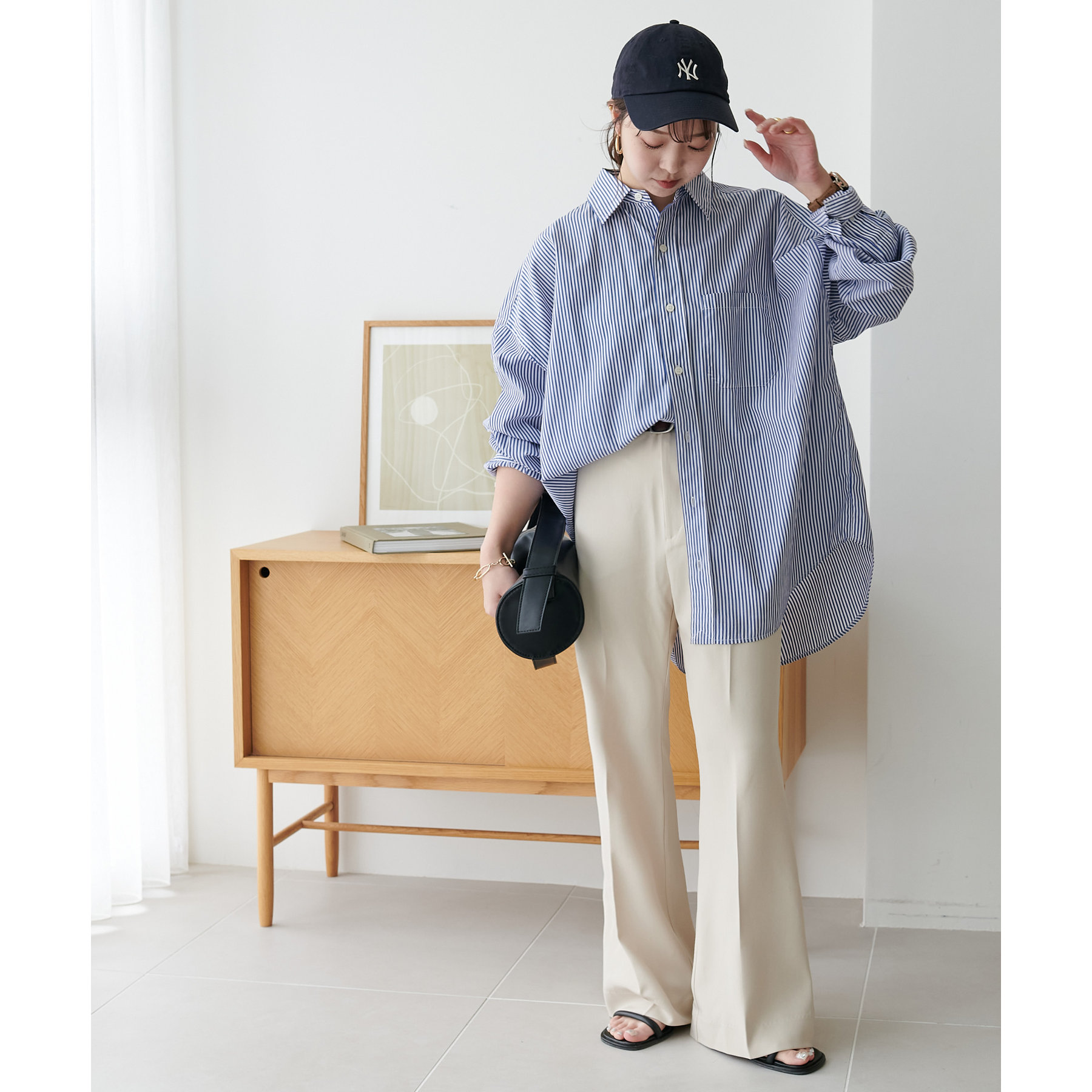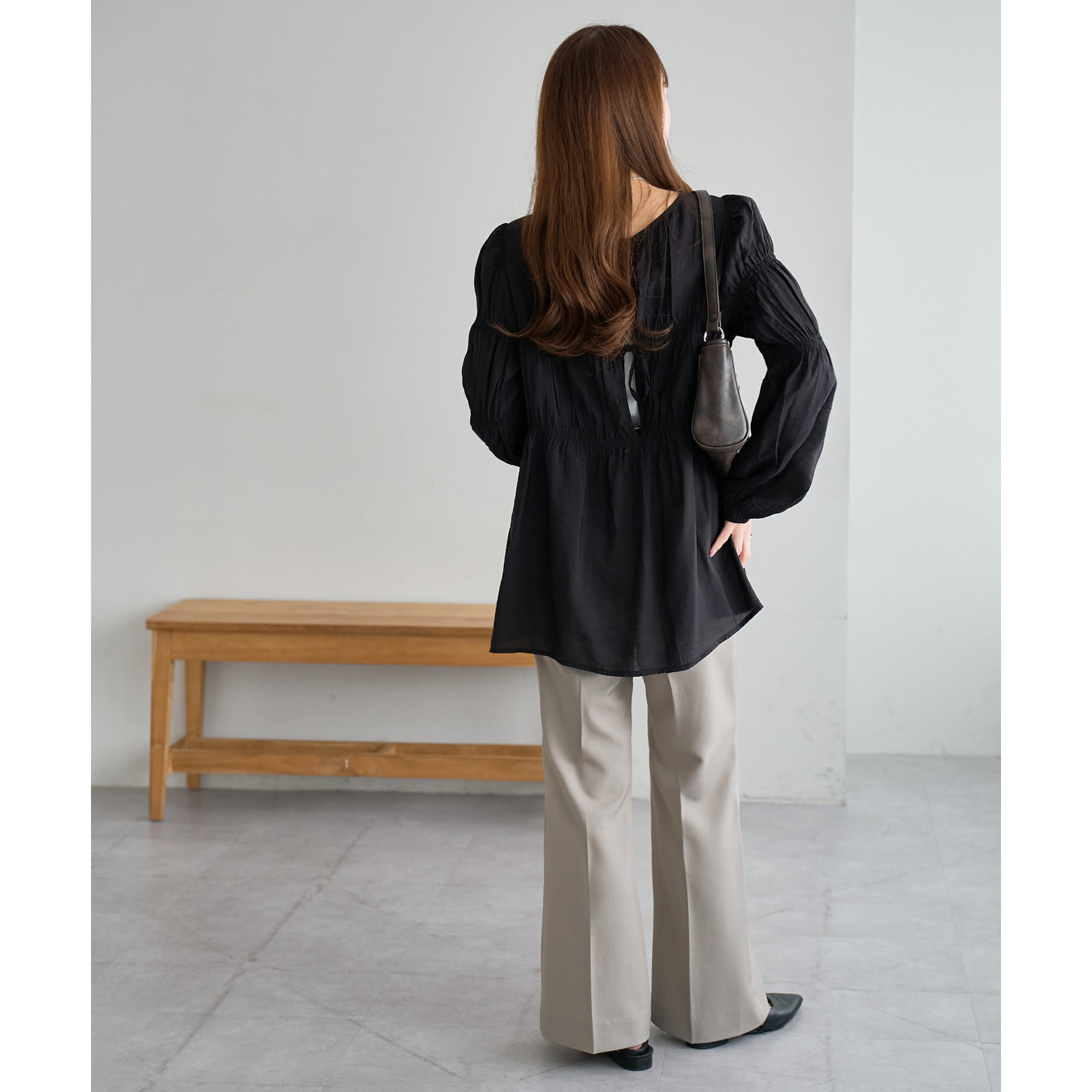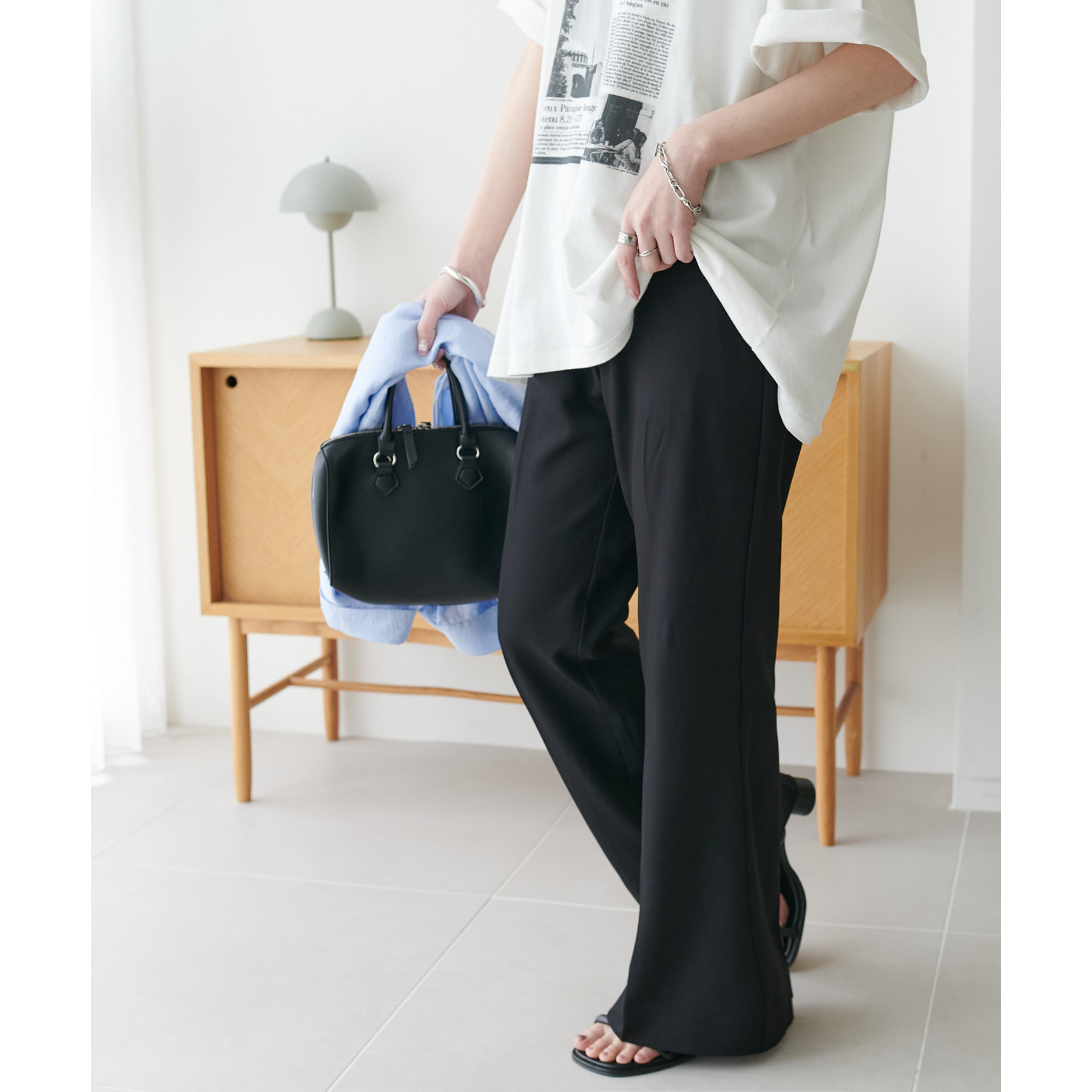 また、腰回りはすっきりとしたシルエットなので、チュニック丈のアイテムを合わせてもバランスの良い着こなしに◎