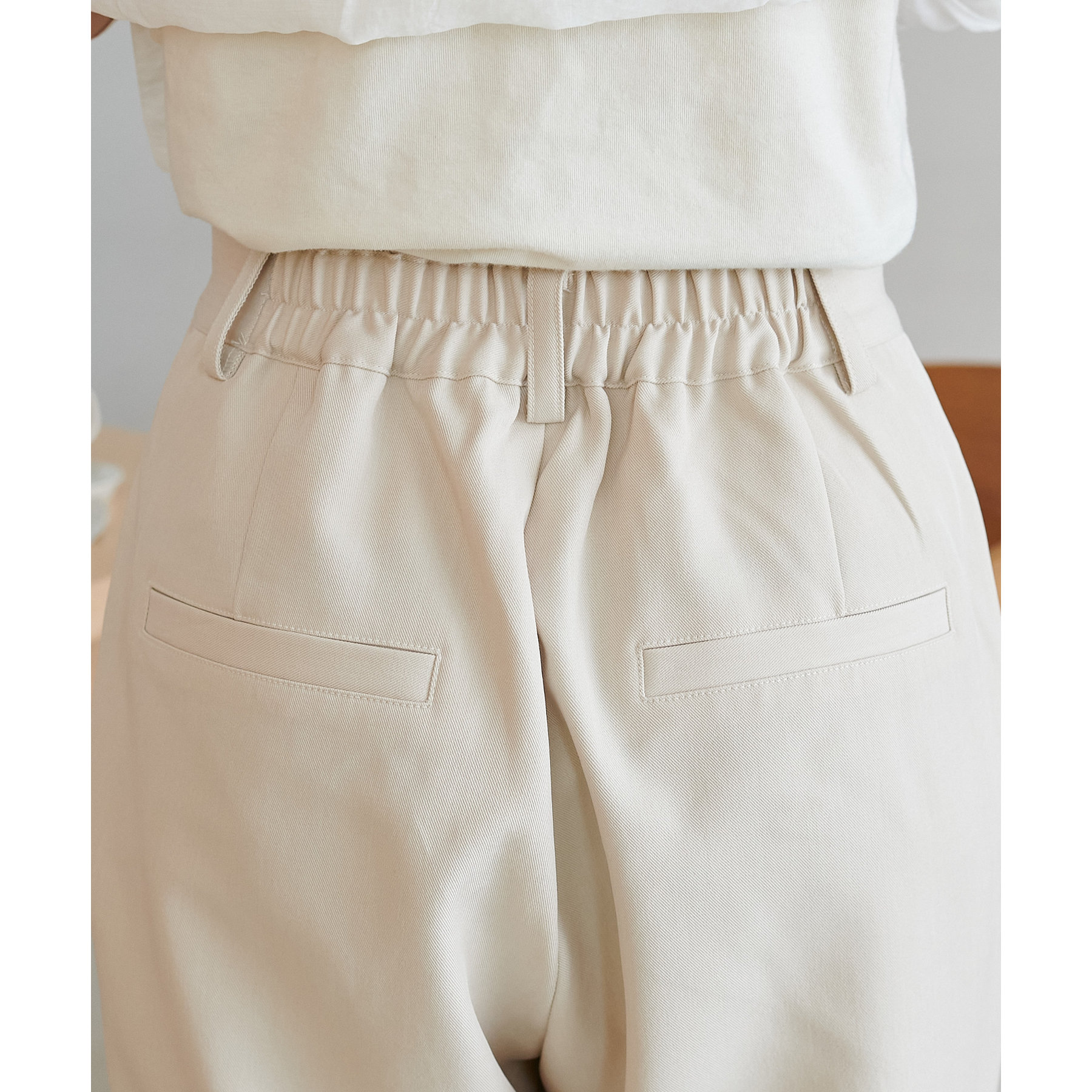 ウエストバックはゴムのデザインで、窮屈感なくストレスフリーな着心地◎