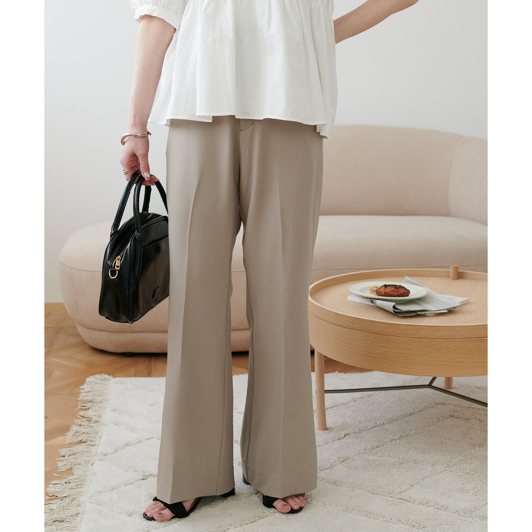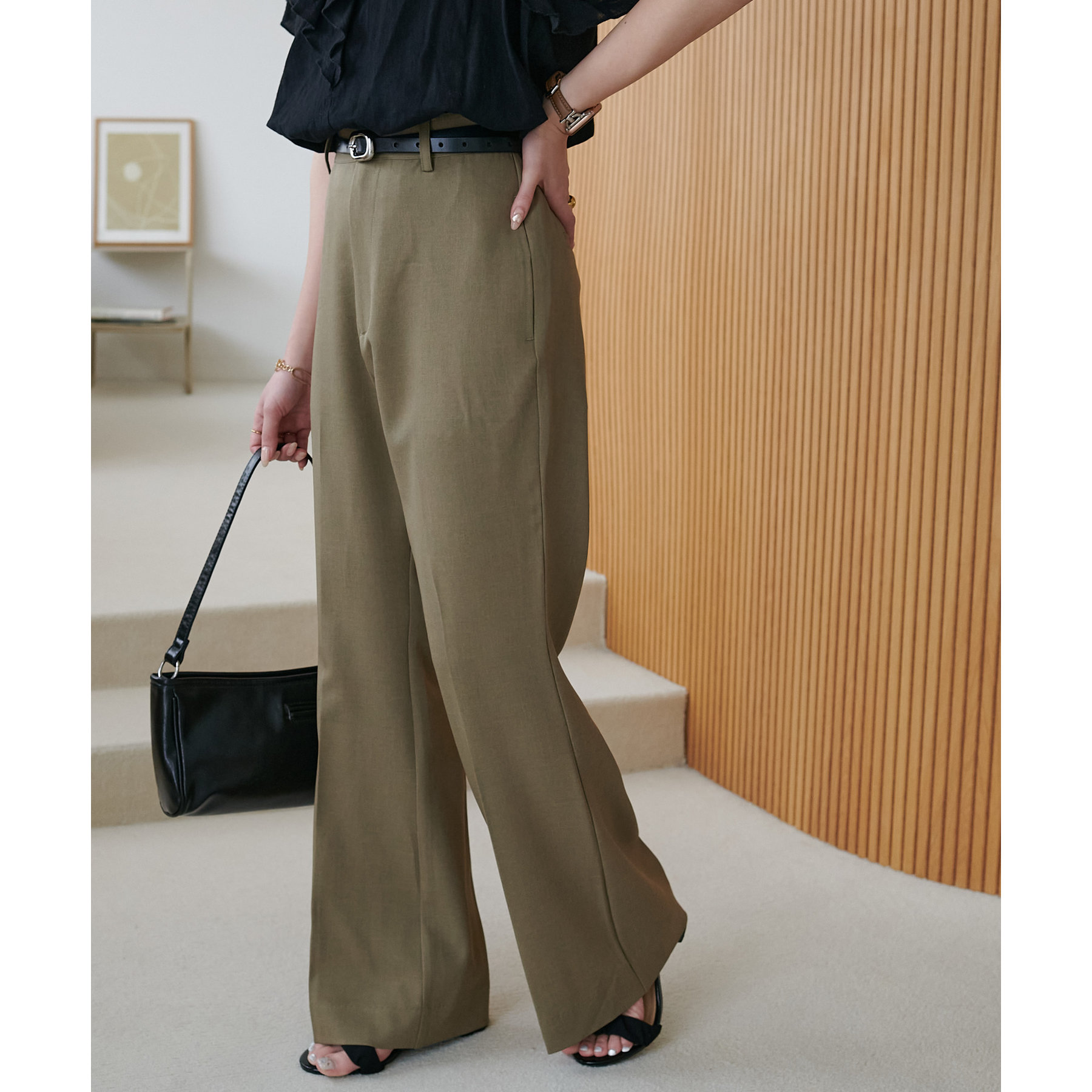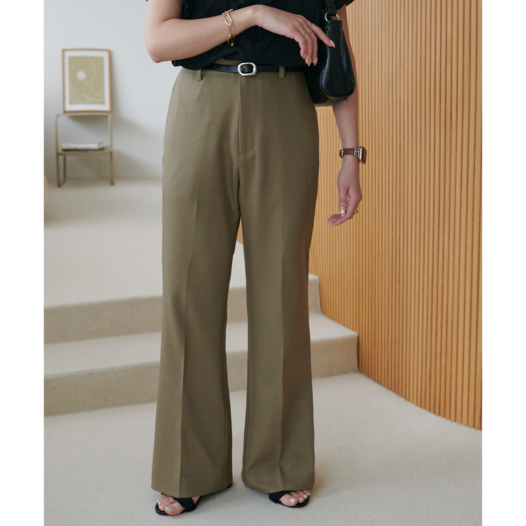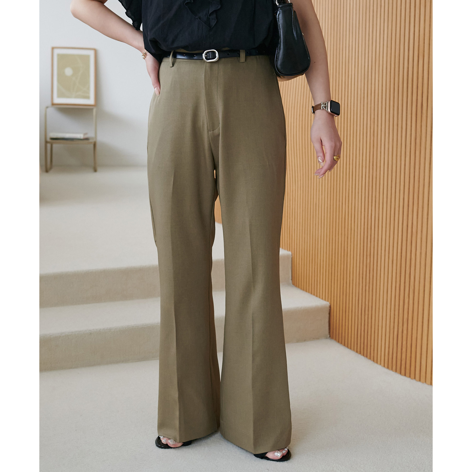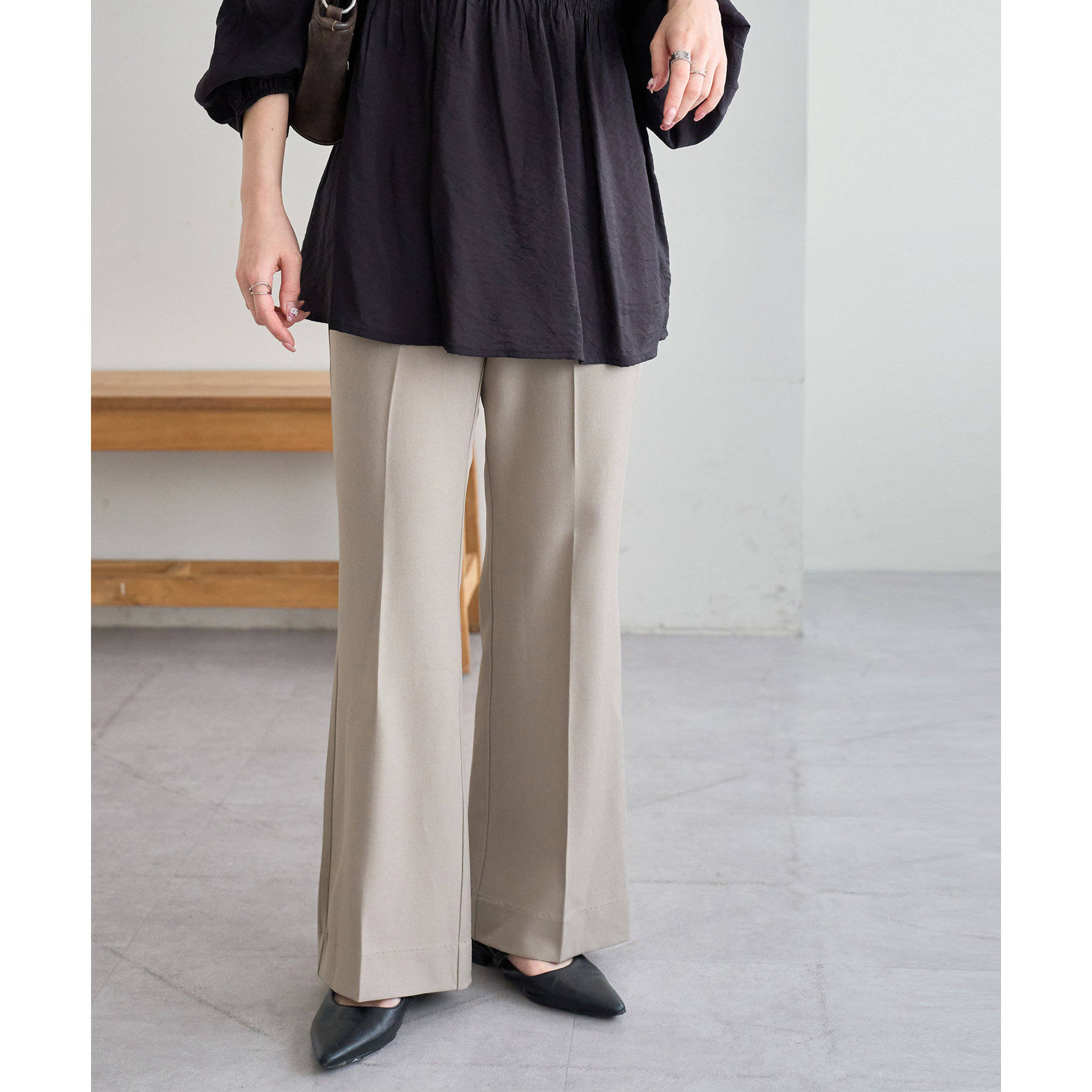 美脚見えするシルエットが魅力のフレアパンツ!