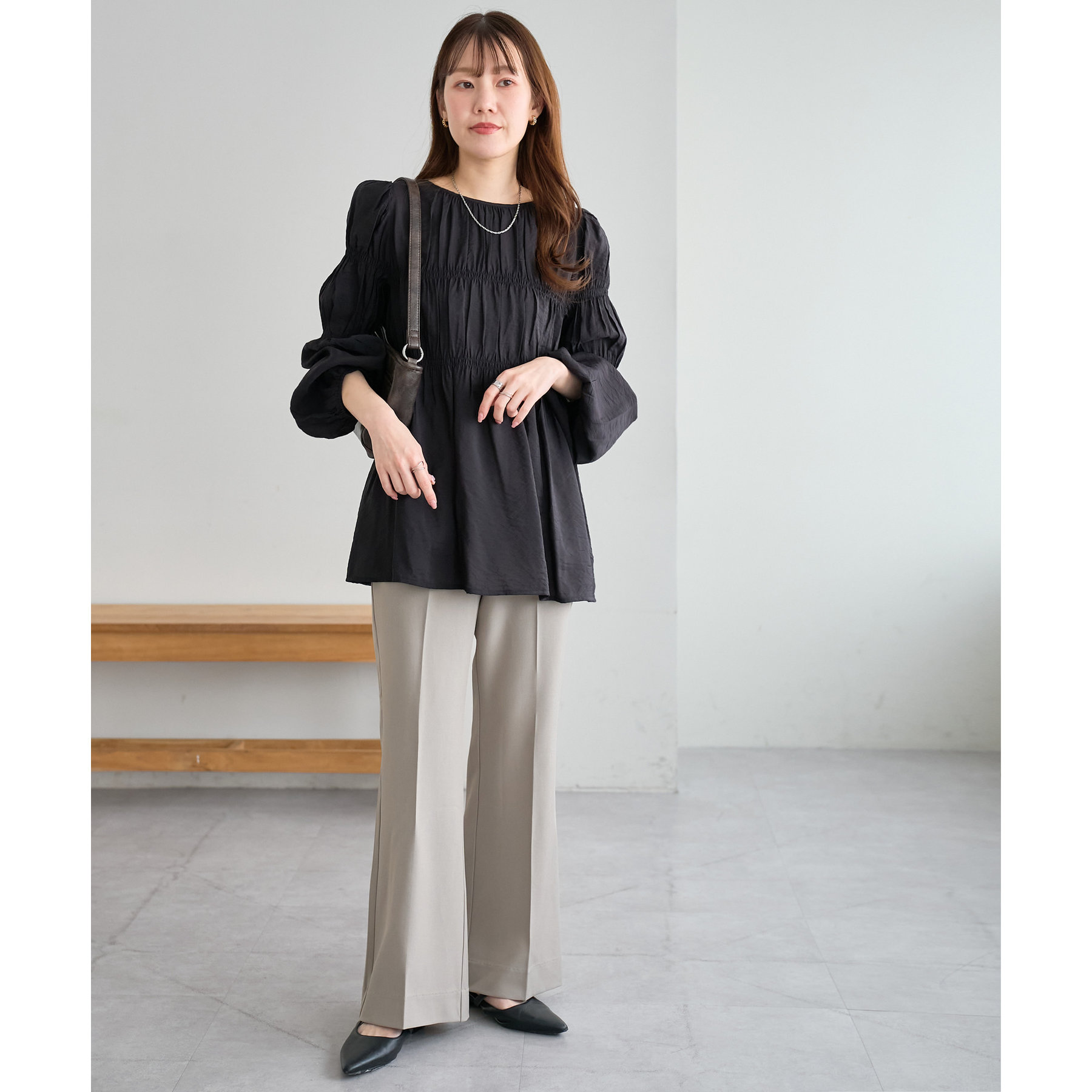 しめつけ感がなく着心地抜群です。ブラウスを合わせればオフィスコーデとしても活躍しそうです!