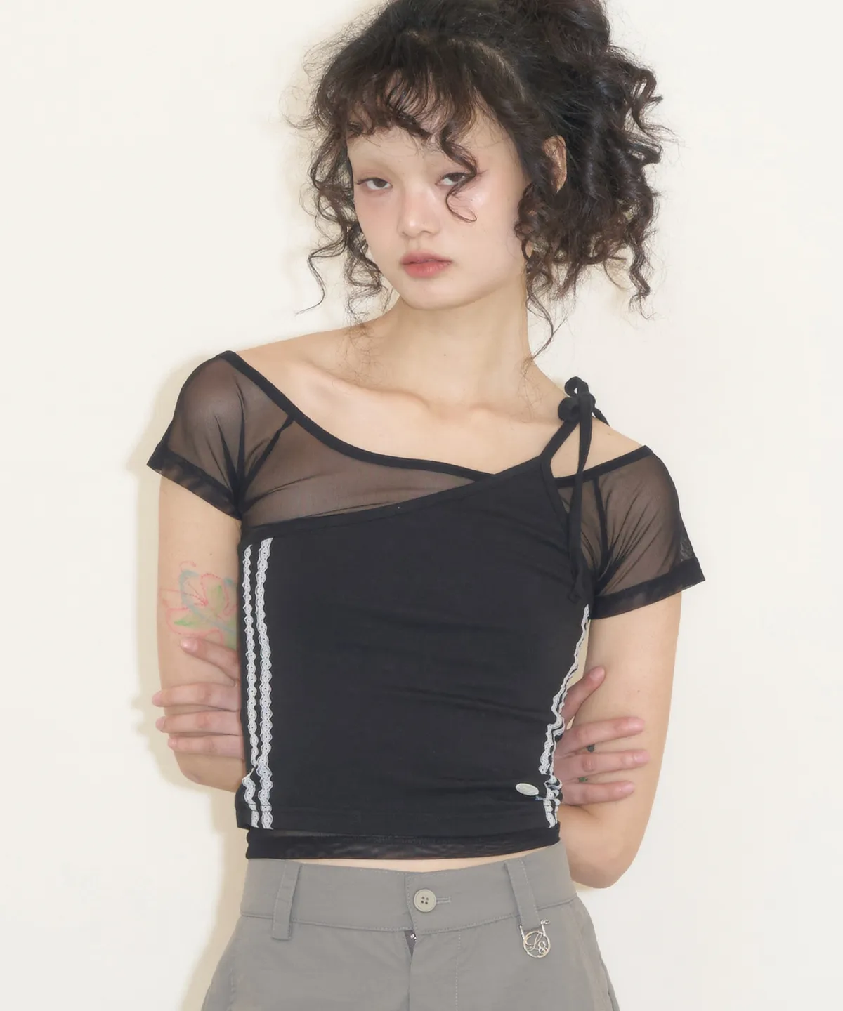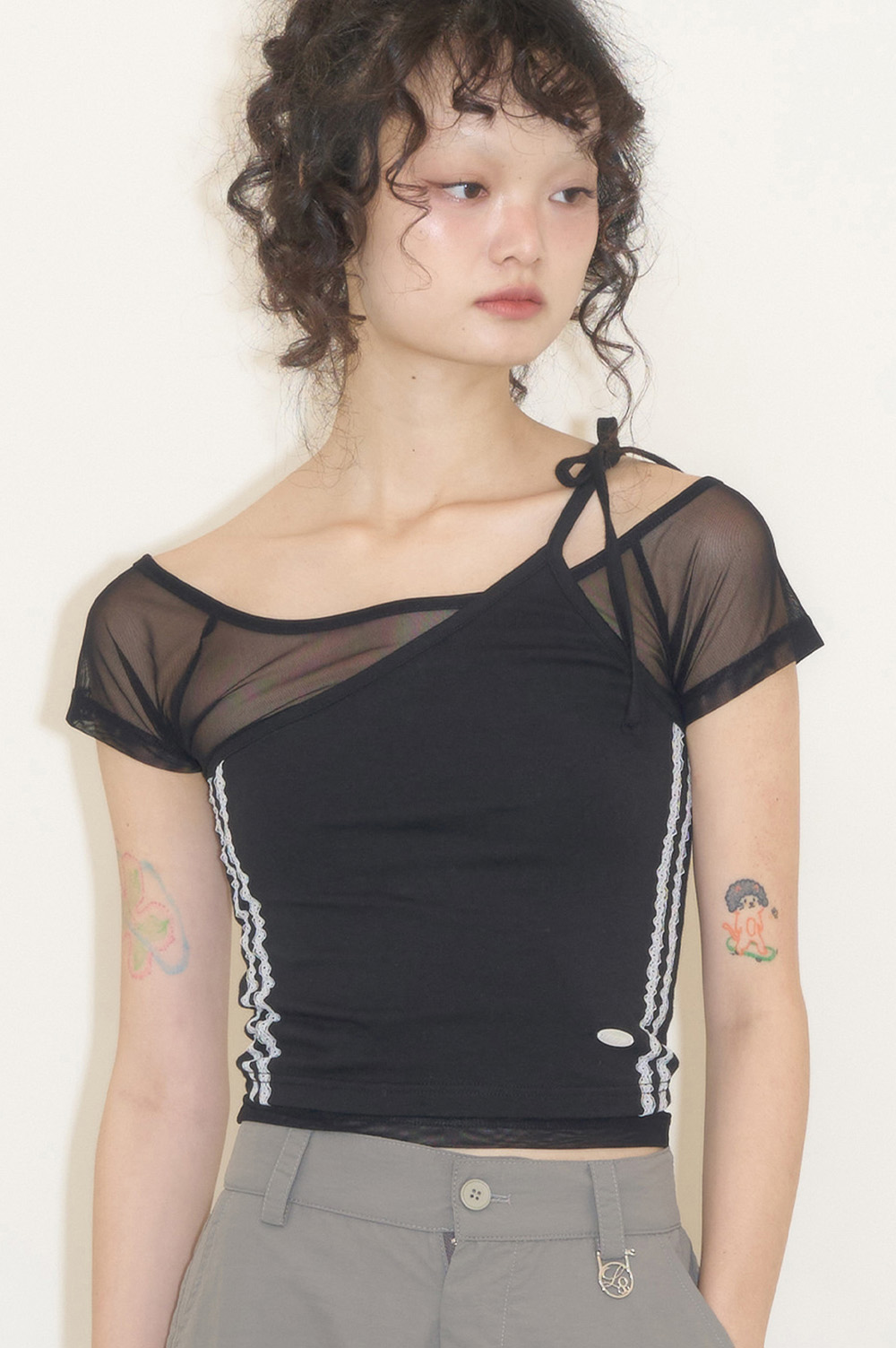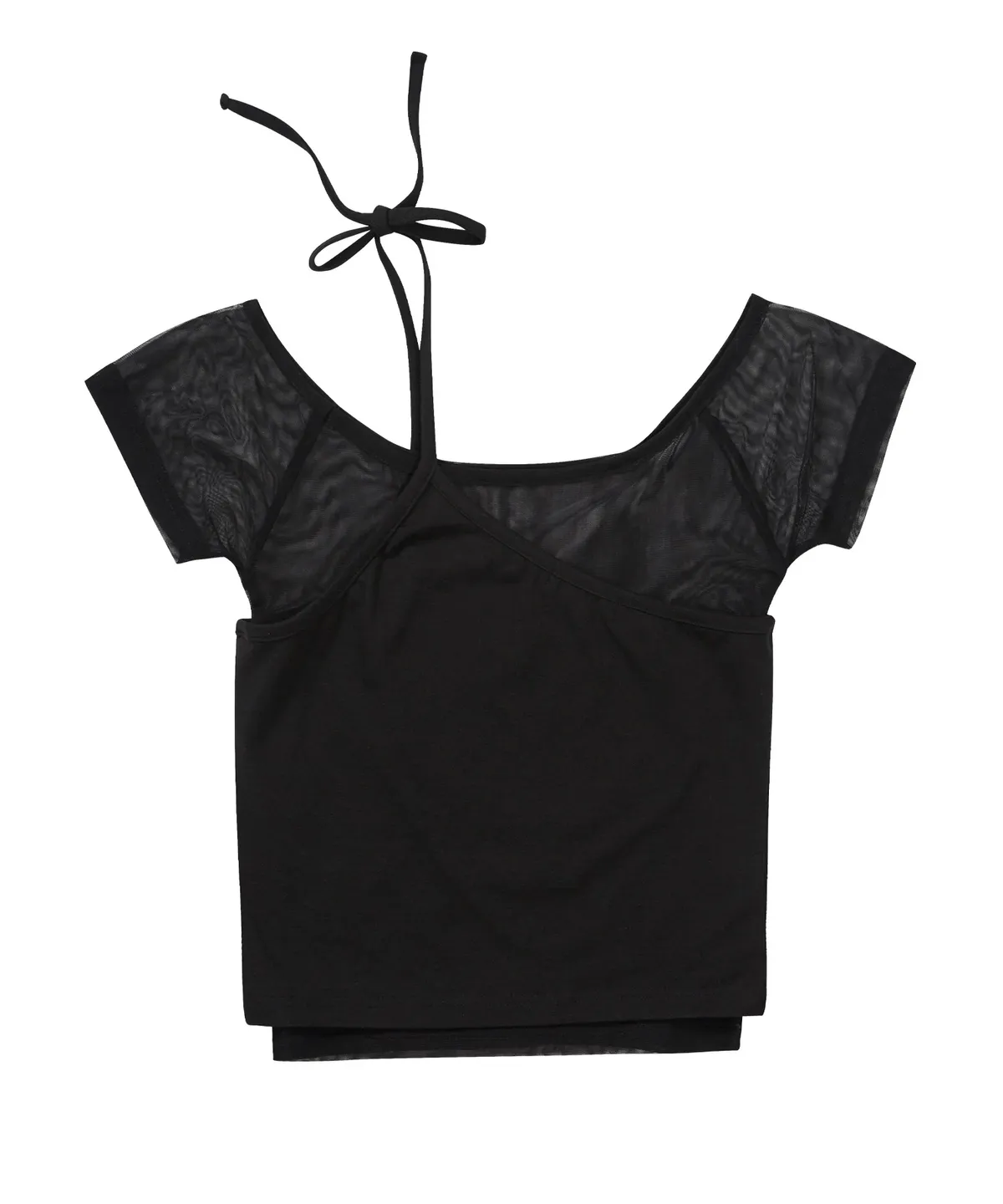 MESH SHEER LAYERED T-SHIRT BLACK