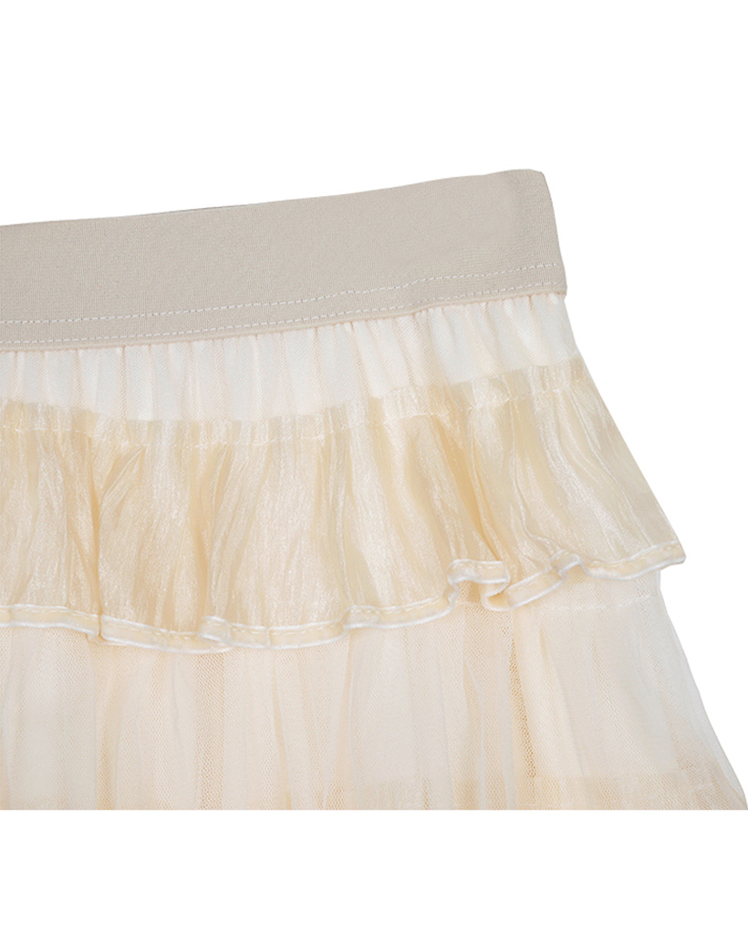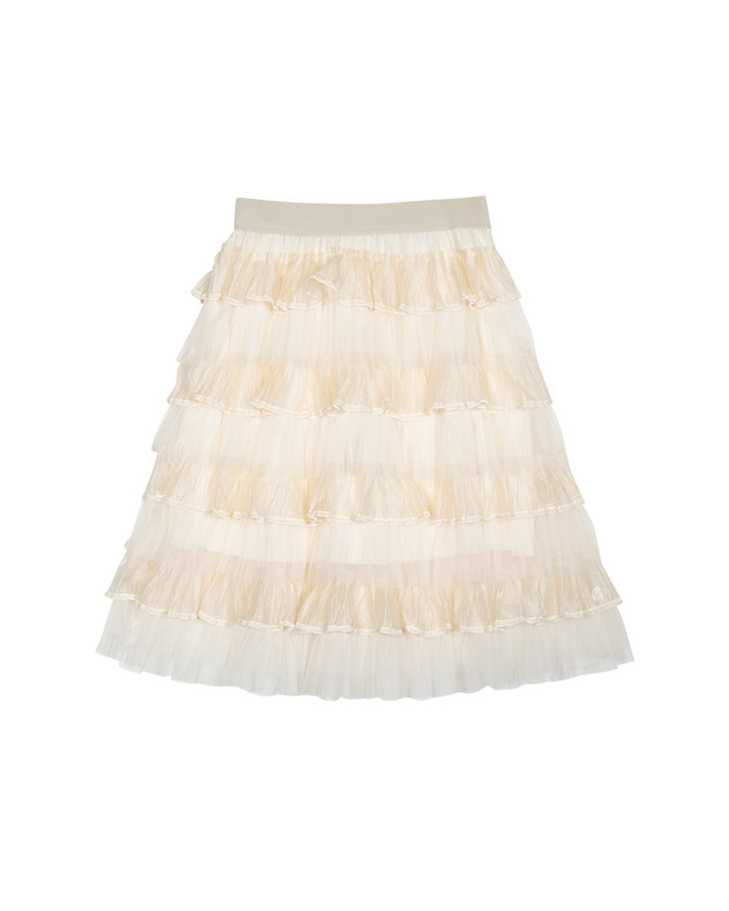 TWILIGHT VELVET TIERED SKIRT_LIGHT BEIGE