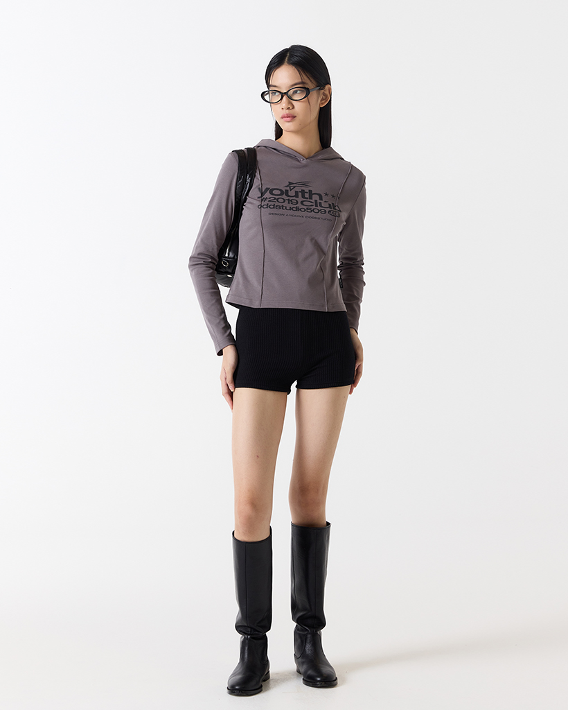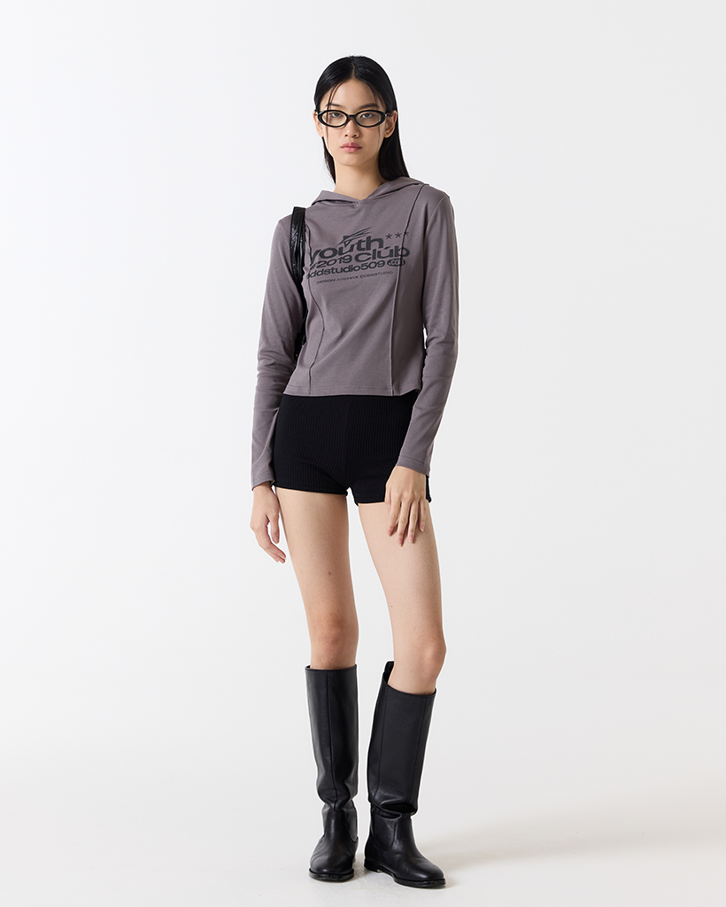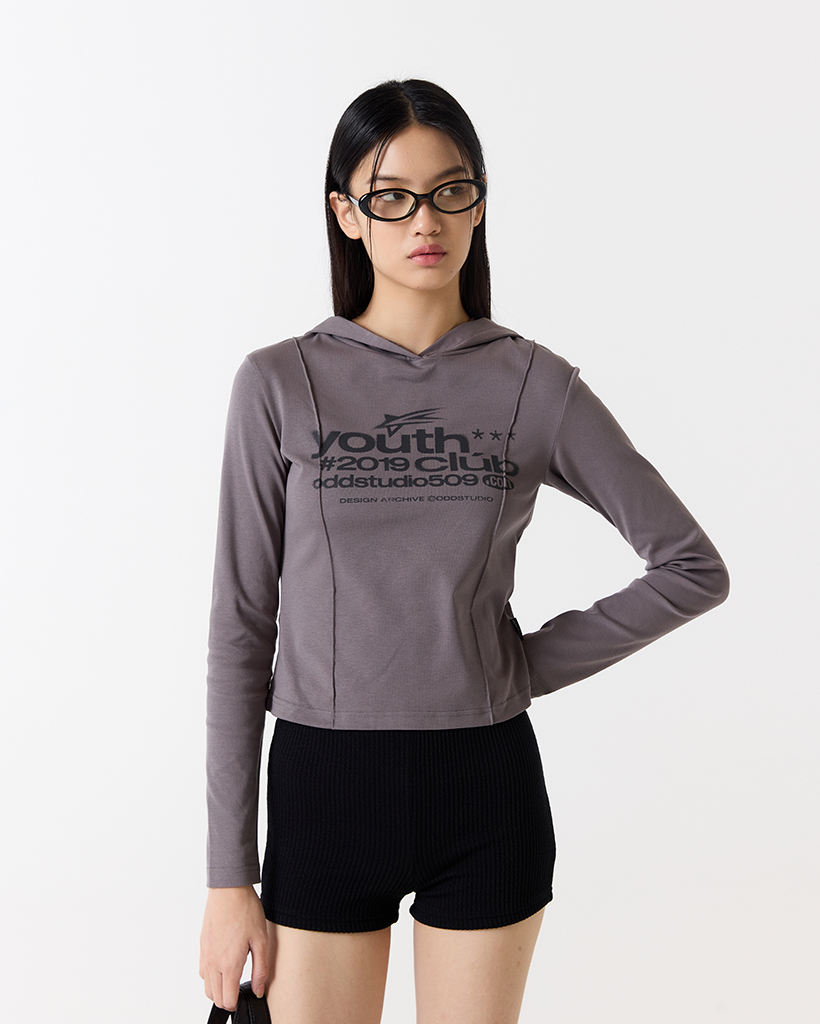 Youth Club Slim Pintuck Hood Long Sleeve - LIGHT GRAY