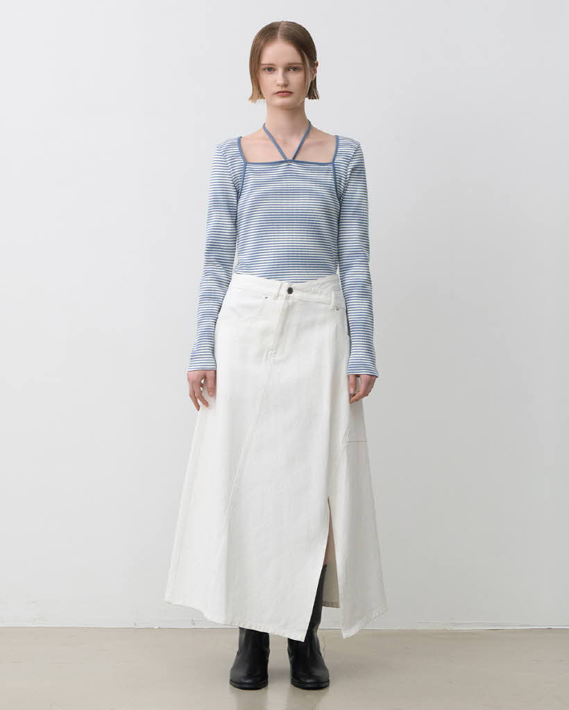 (SK-4996)DIAGONAL UNBALANCE DENIM SKIRT