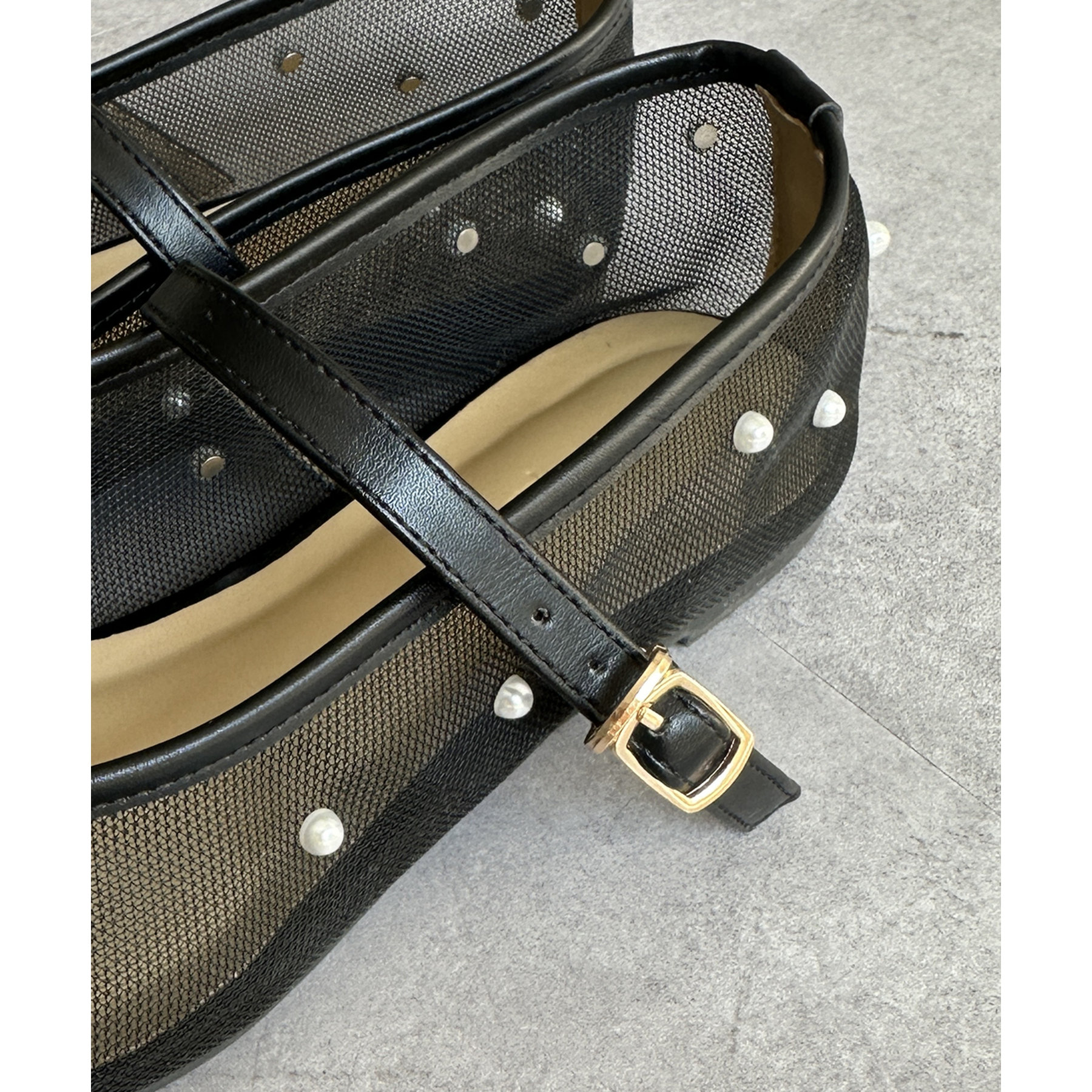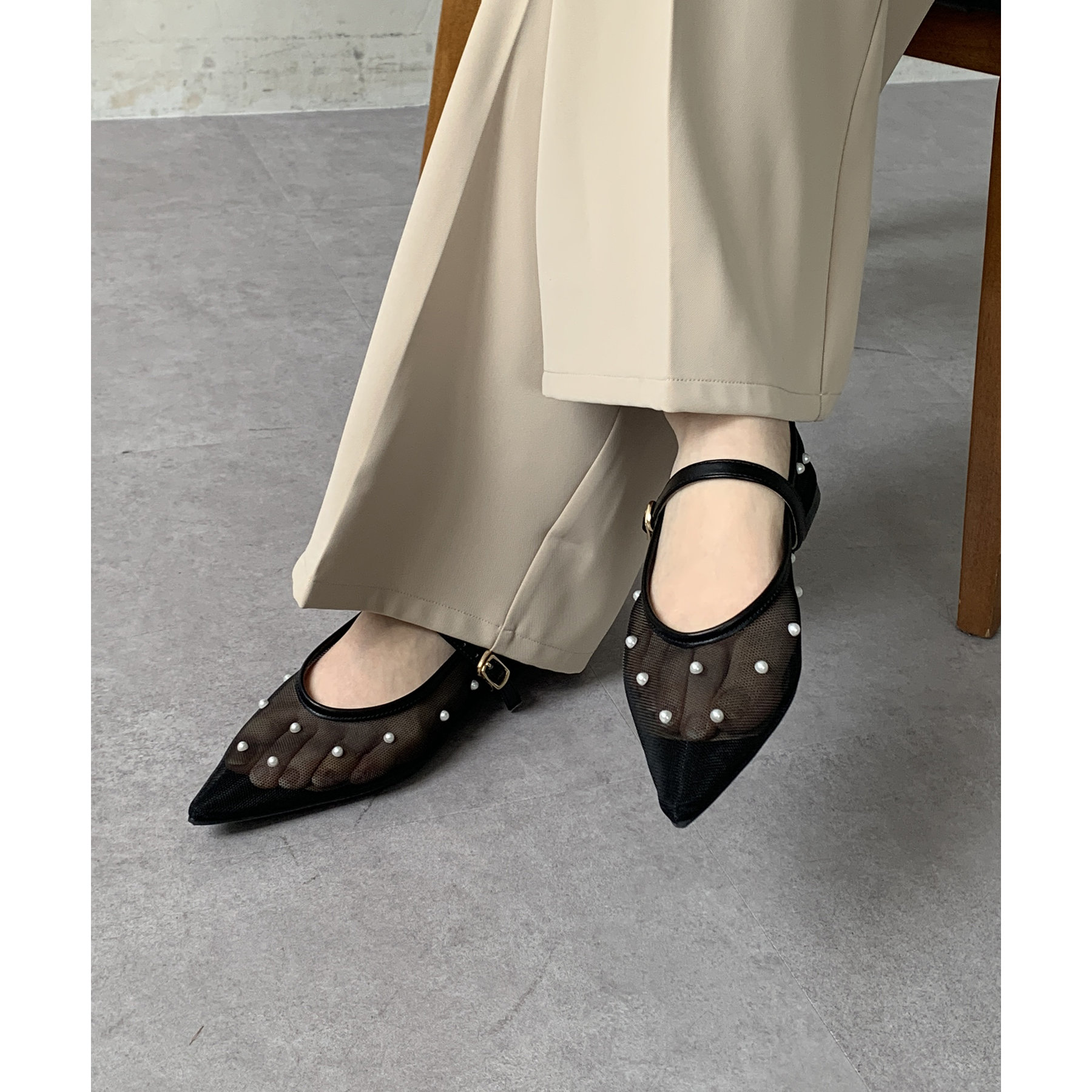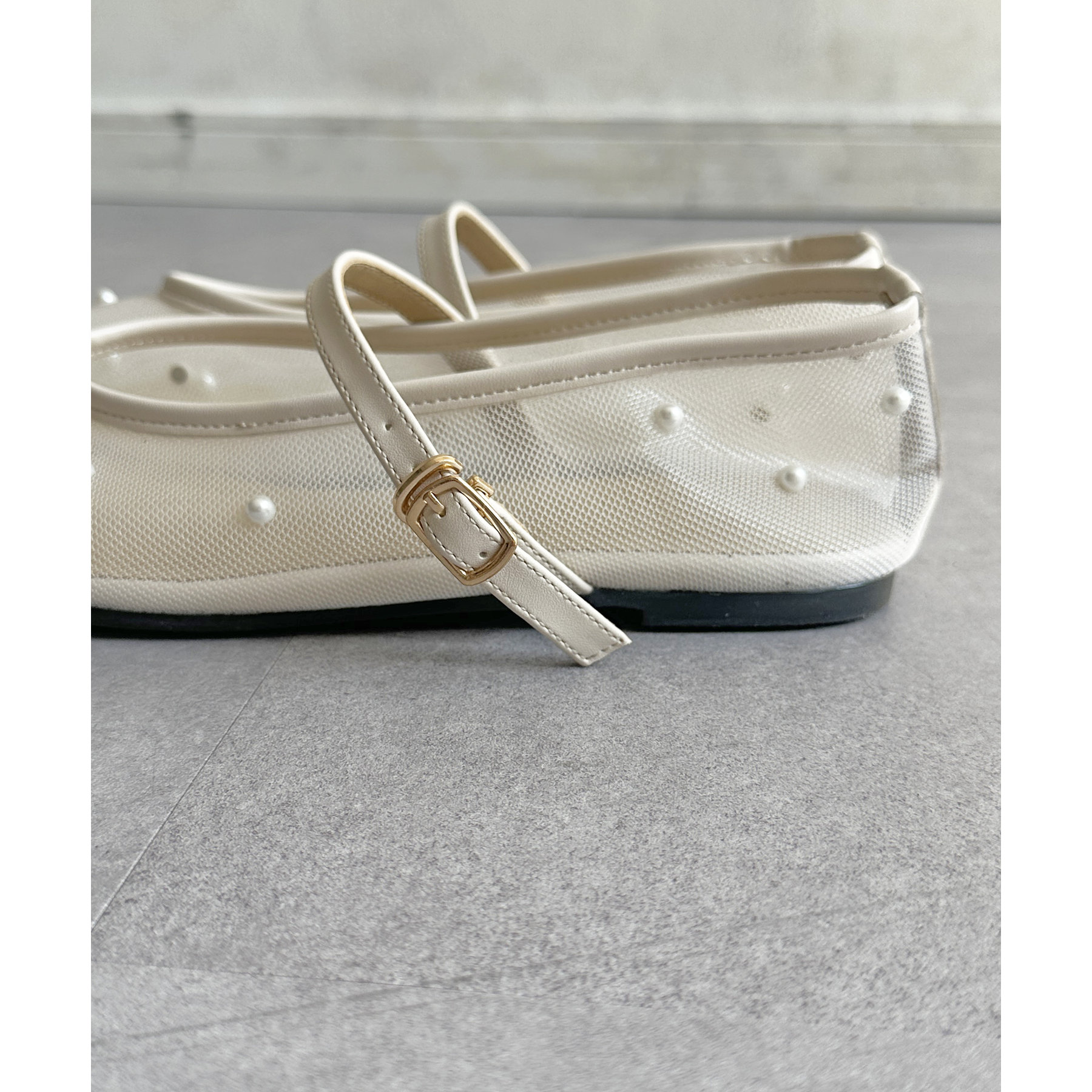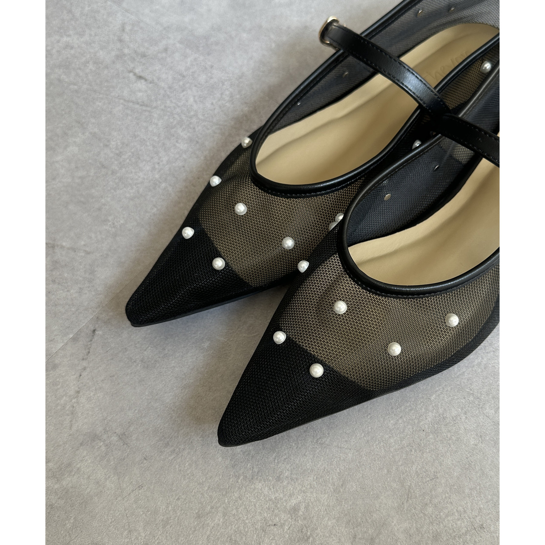 #パンプス #ストラップ #シアー #パール #きれいめ #おでかけ