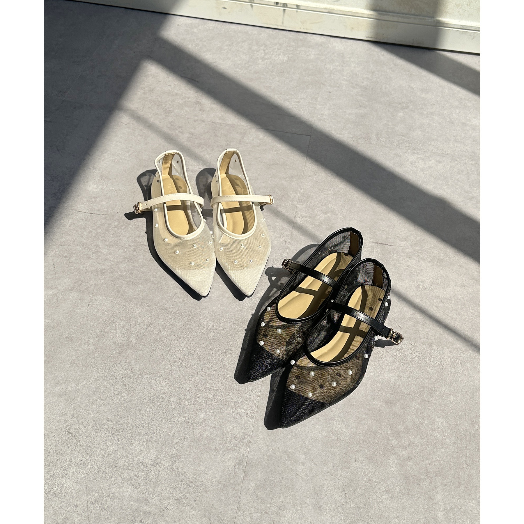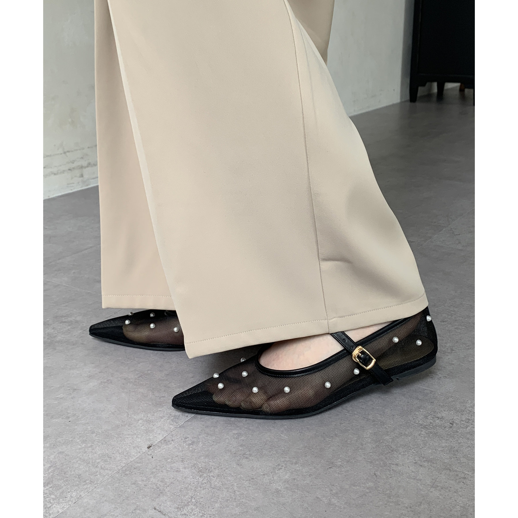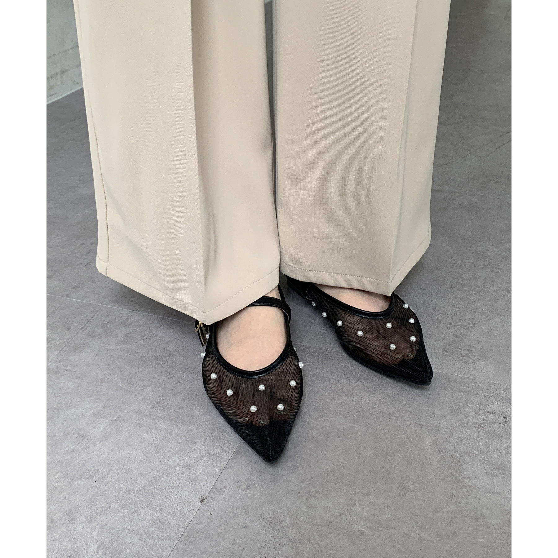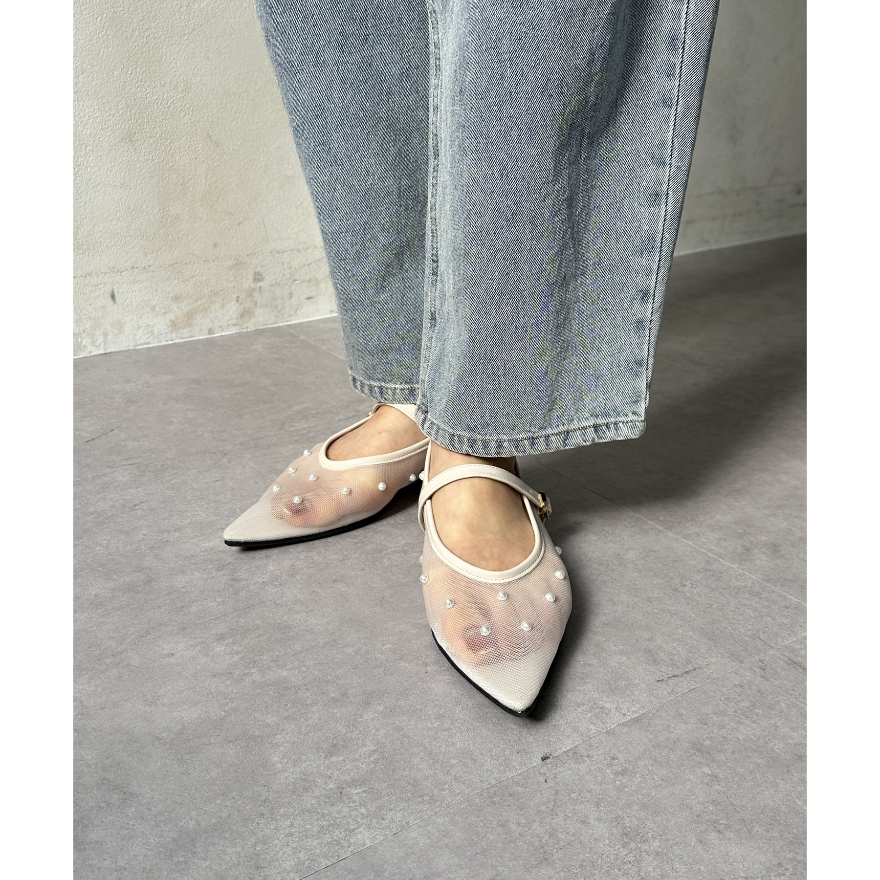 #パンプス #ストラップ #シアー #パール #きれいめ #おでかけ