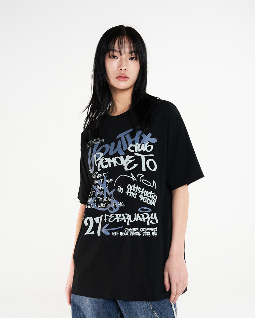 Youth Graffiti Graphic Oversized Fit T-Shirt - black