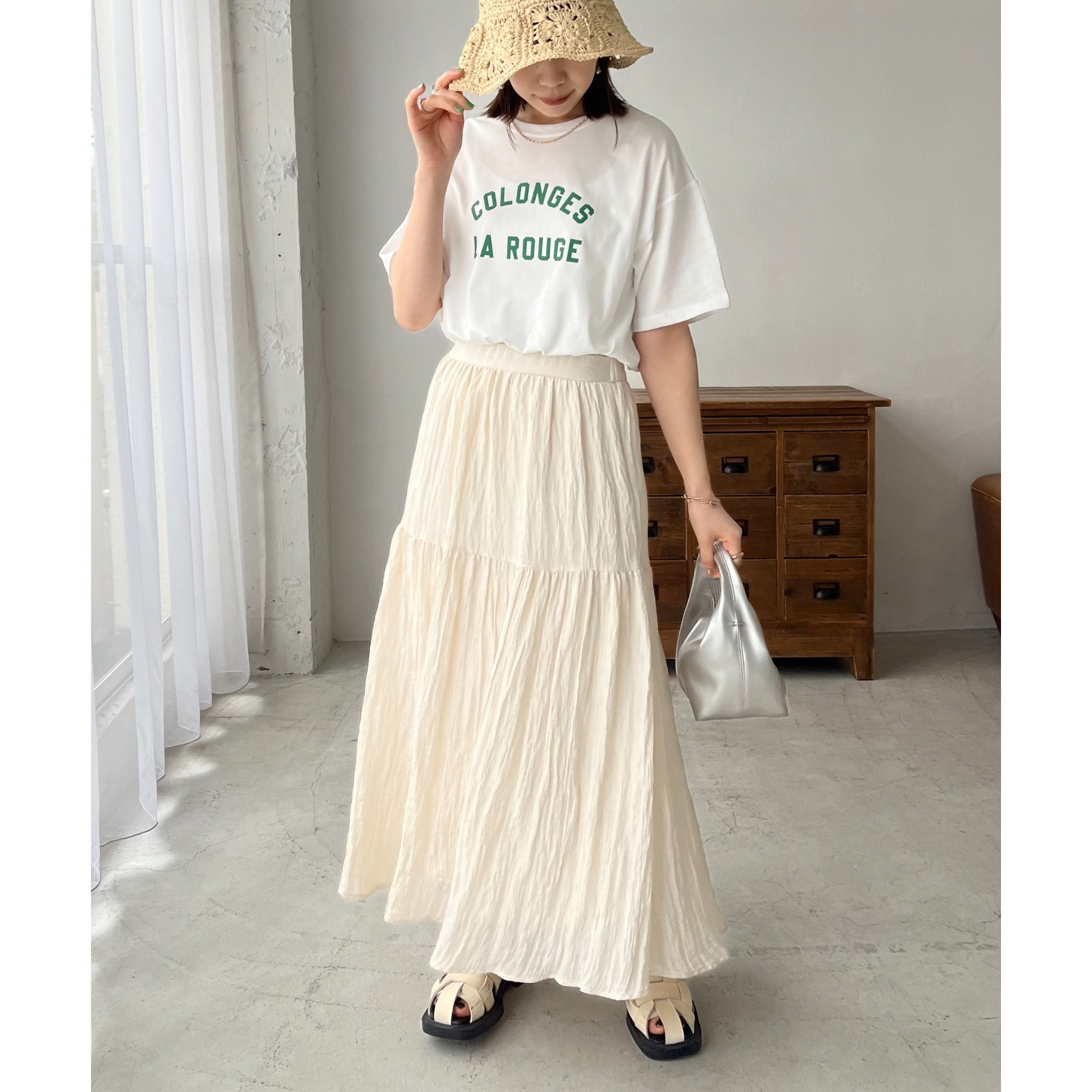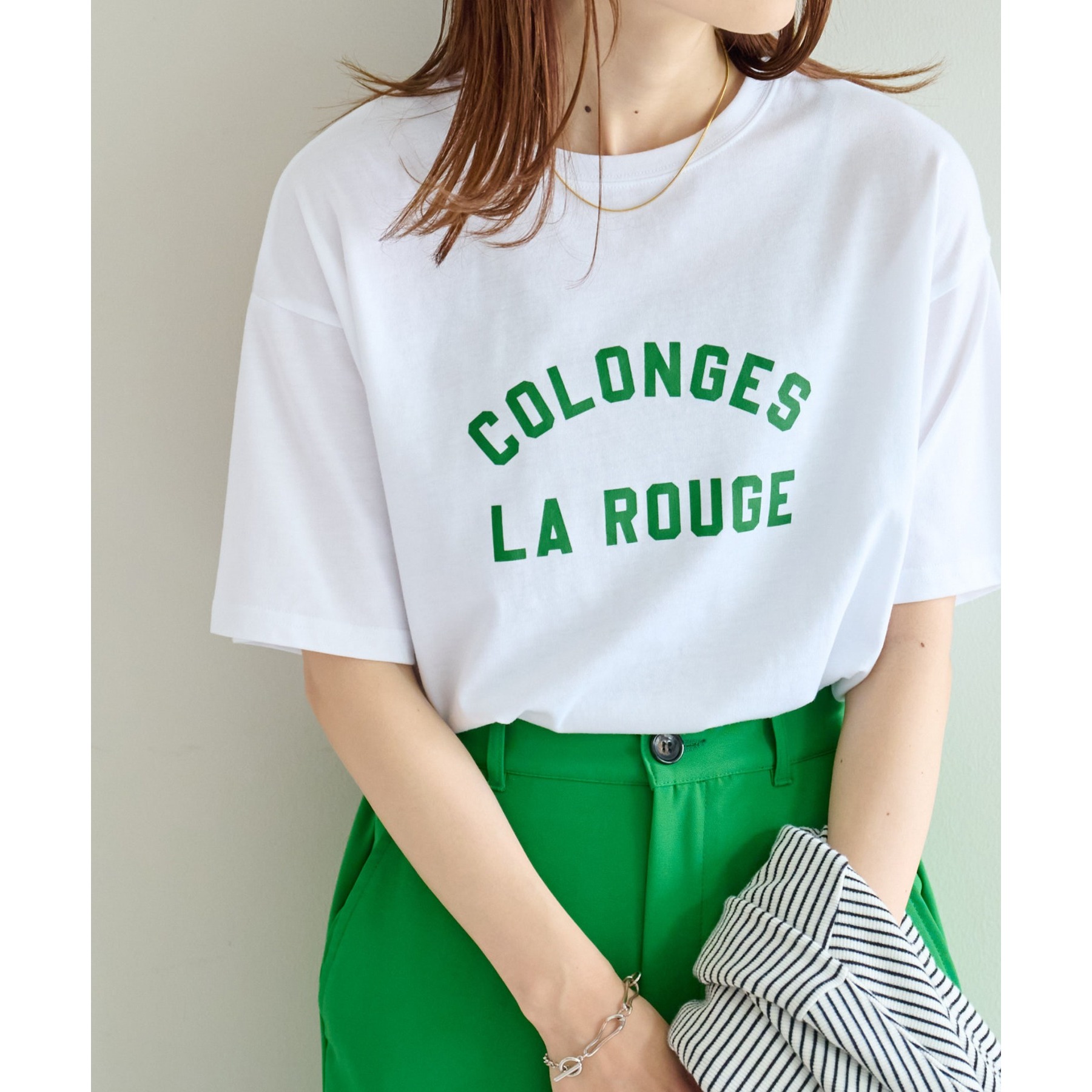 一枚着はもちろん、レイヤードのインナーとしても万能なロゴプリントTシャツ。女性らしく仕上がる旬のバイカラーに、ロゴプリントがシンプルでありながらコーディネートにトレンド感をプラスしてくれるデザイン。程よくゆったりした、インでもアウトでも使いやすいシルエットで、幅広い着回しに大活躍間違いなしです◎
