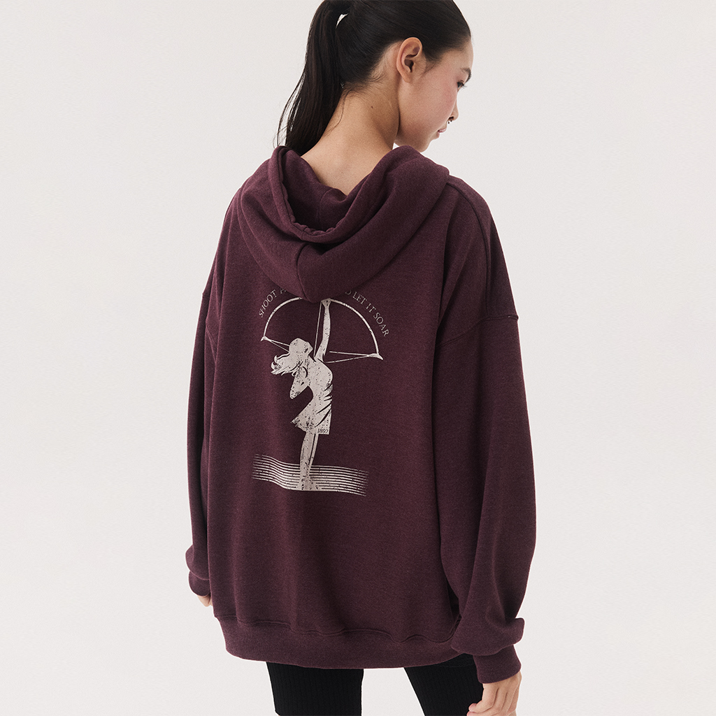 OVER FIT ARROW HOODY ZIP UP_vintage burgundy