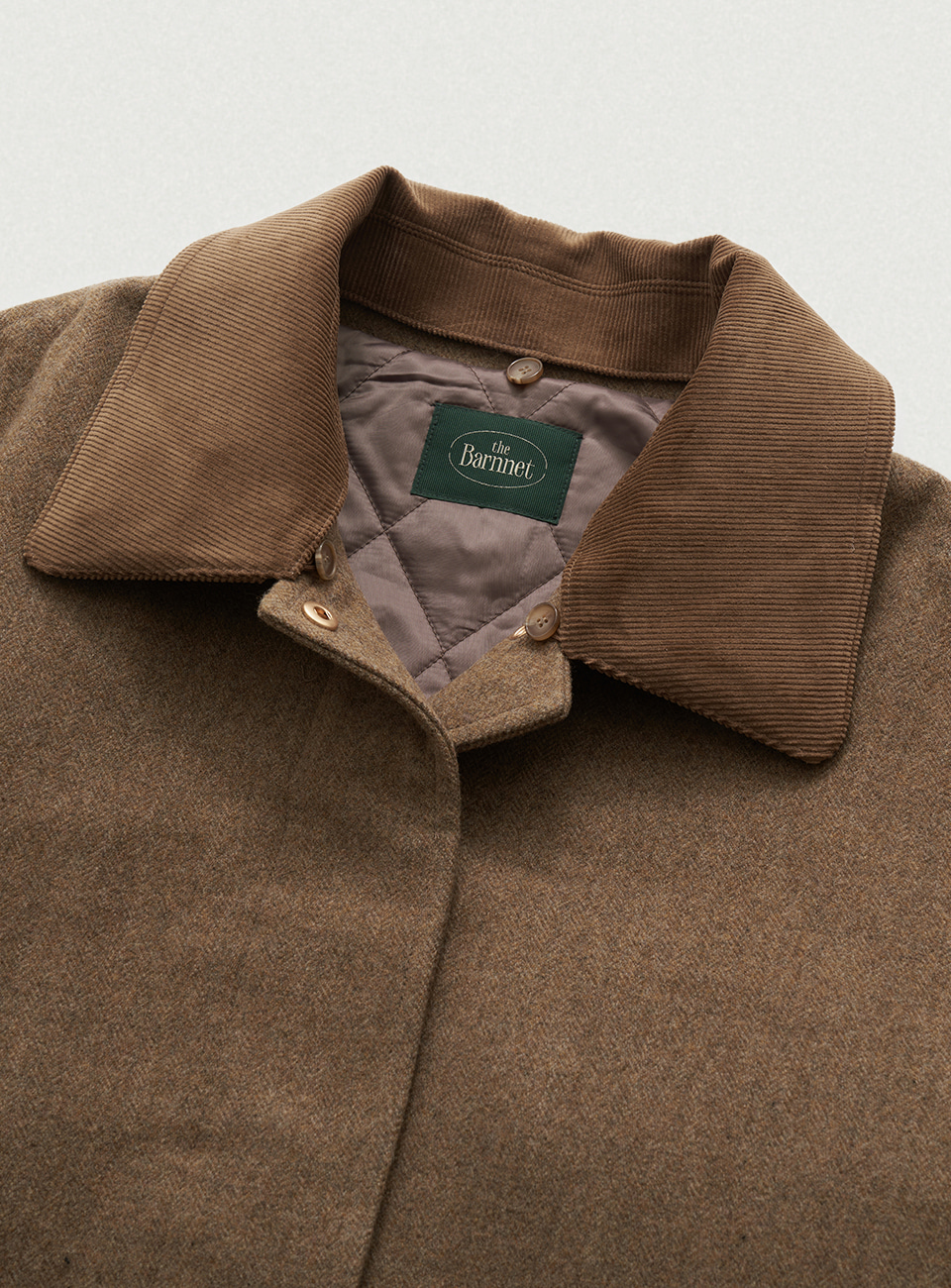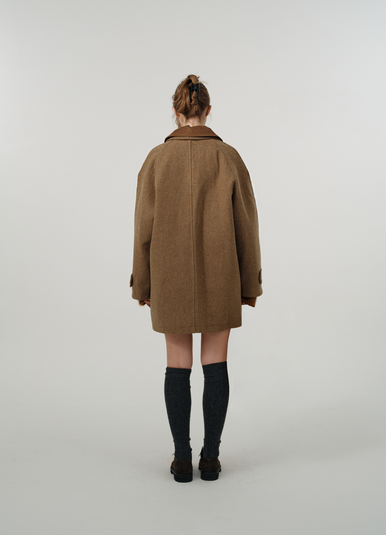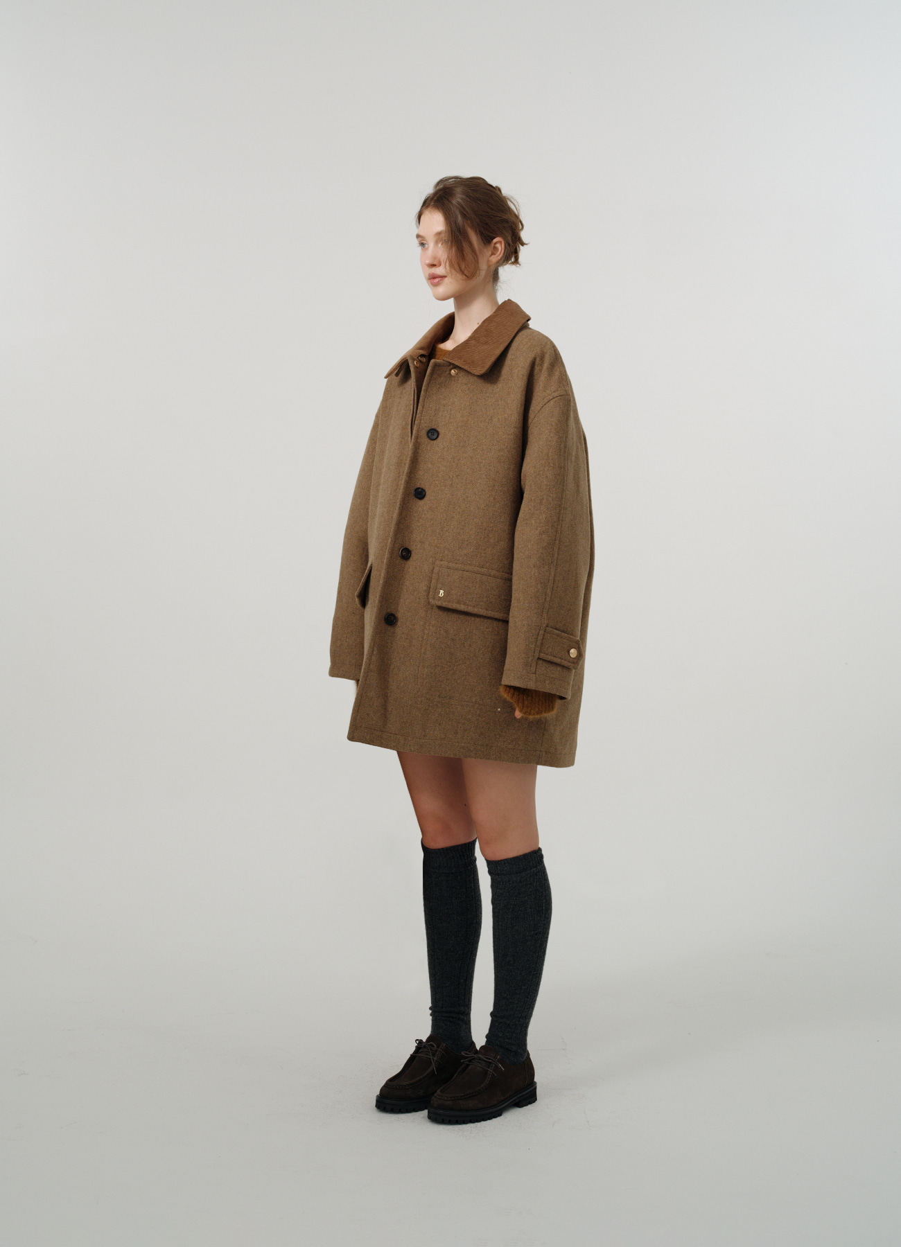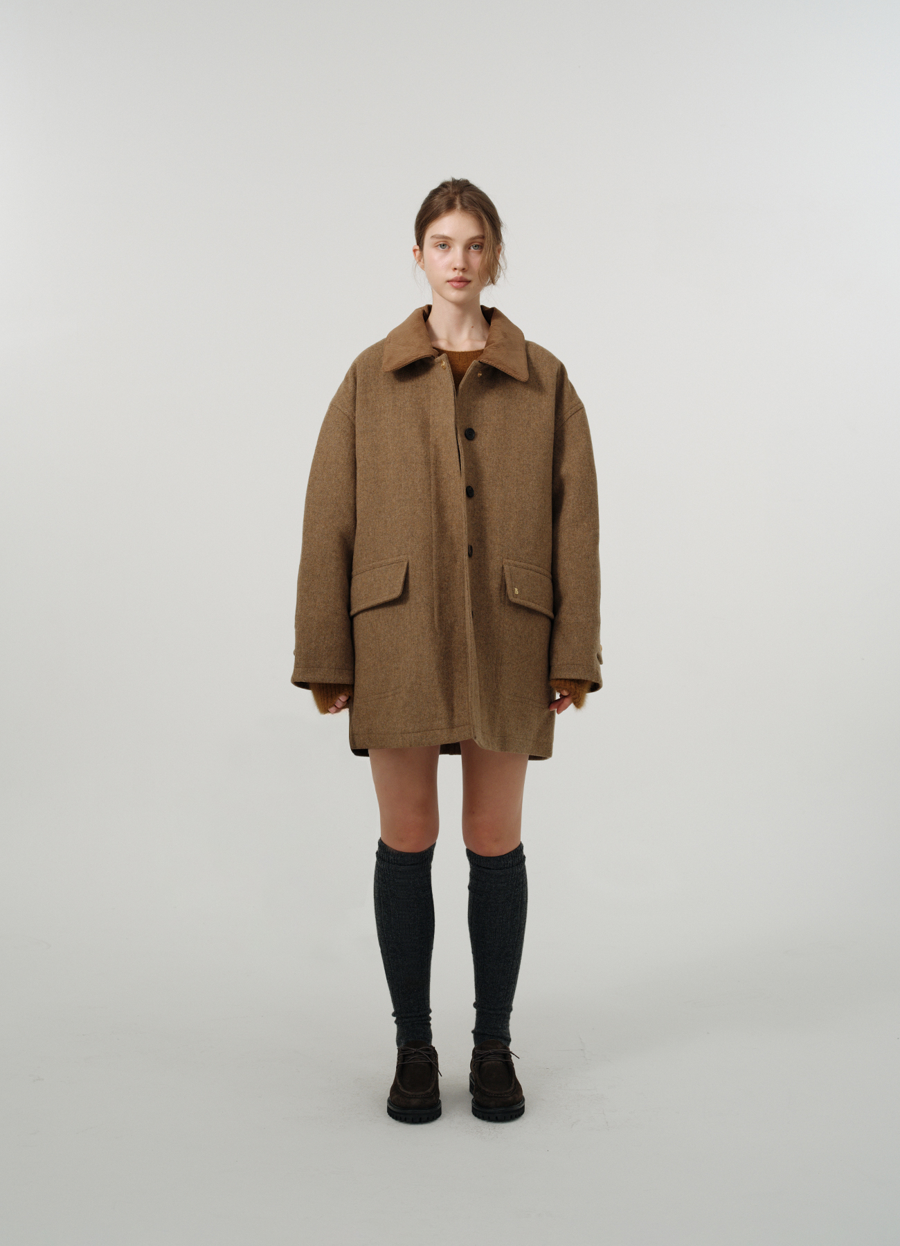 [Influencer pick] Corduroy Collar Herringbone Short Coat - Camel