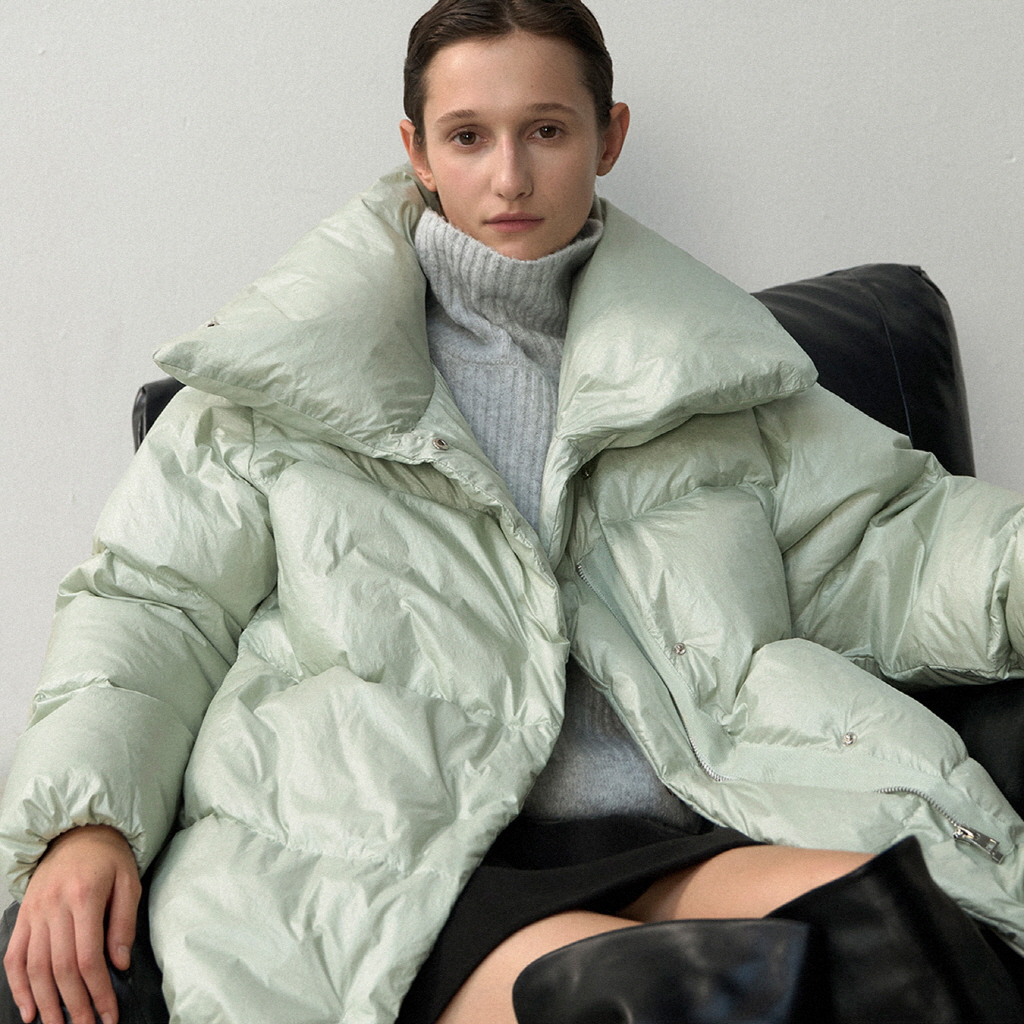 (JP-557)WRINKLE SHINING DOWN JUMPER