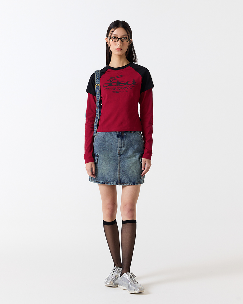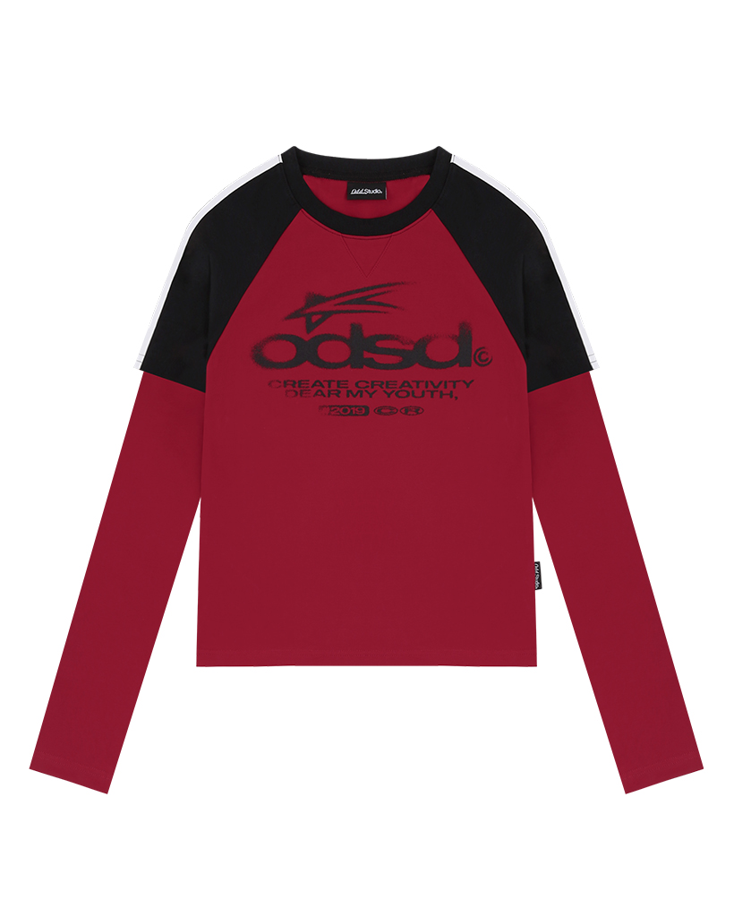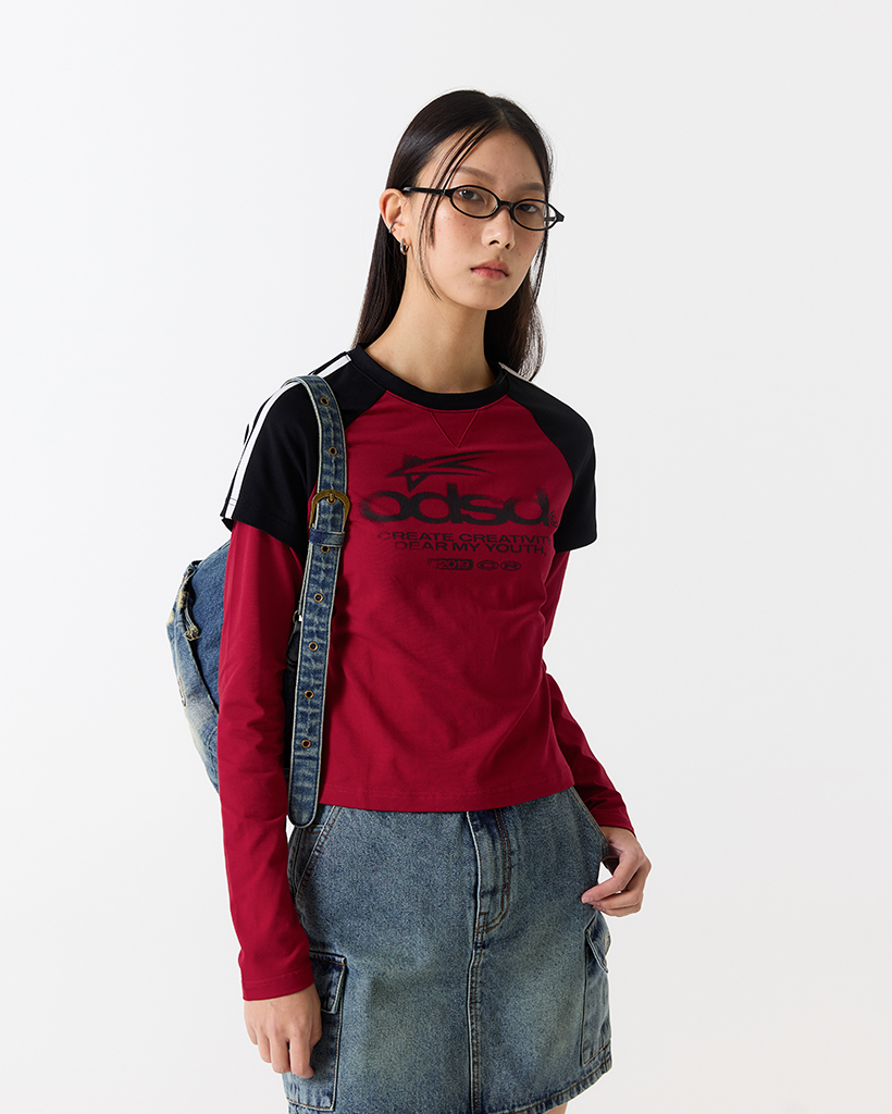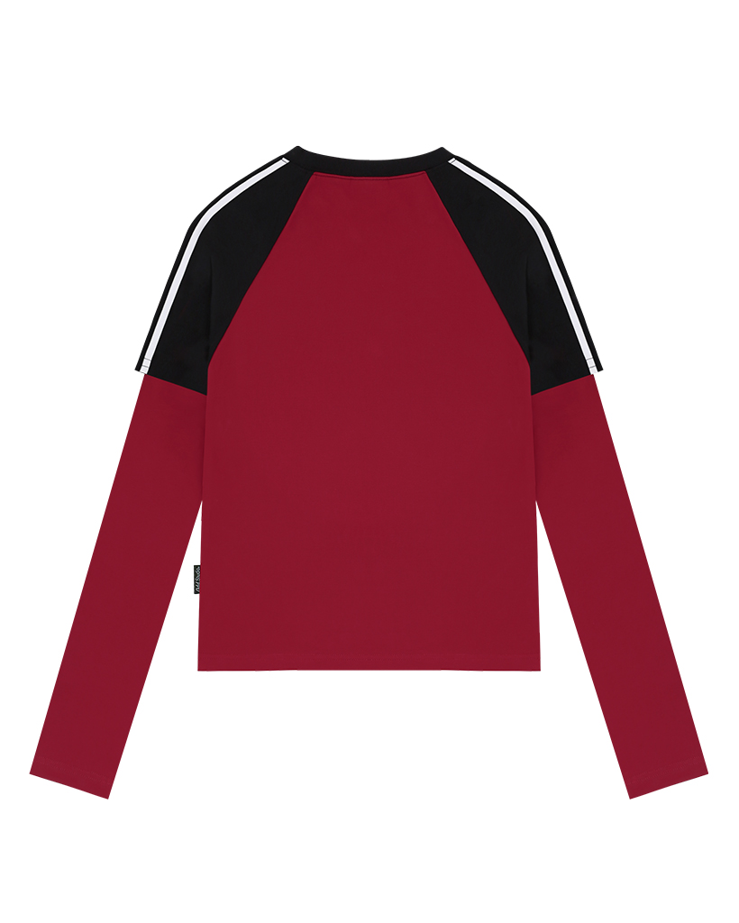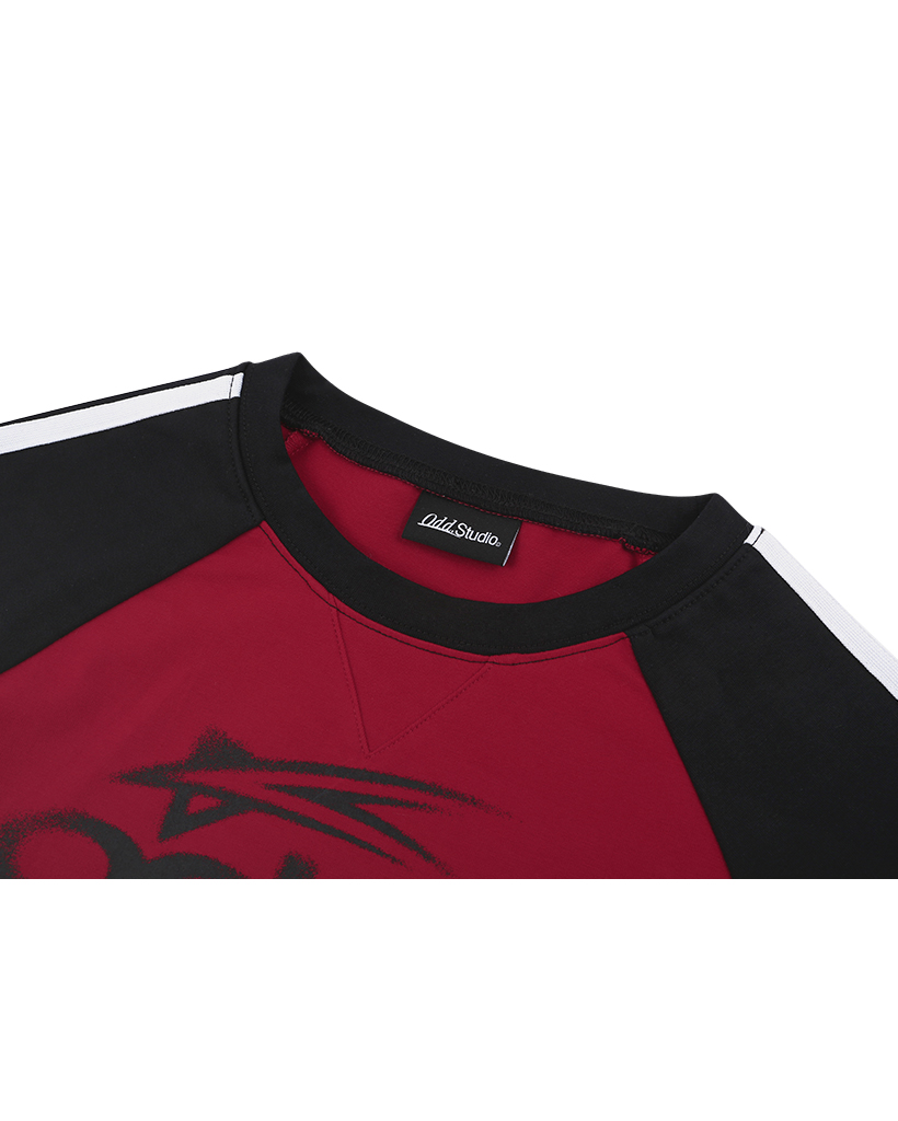 [Influencer pick] ODSD Raglan Track Semi Crop T-shirt - RED / BLACK