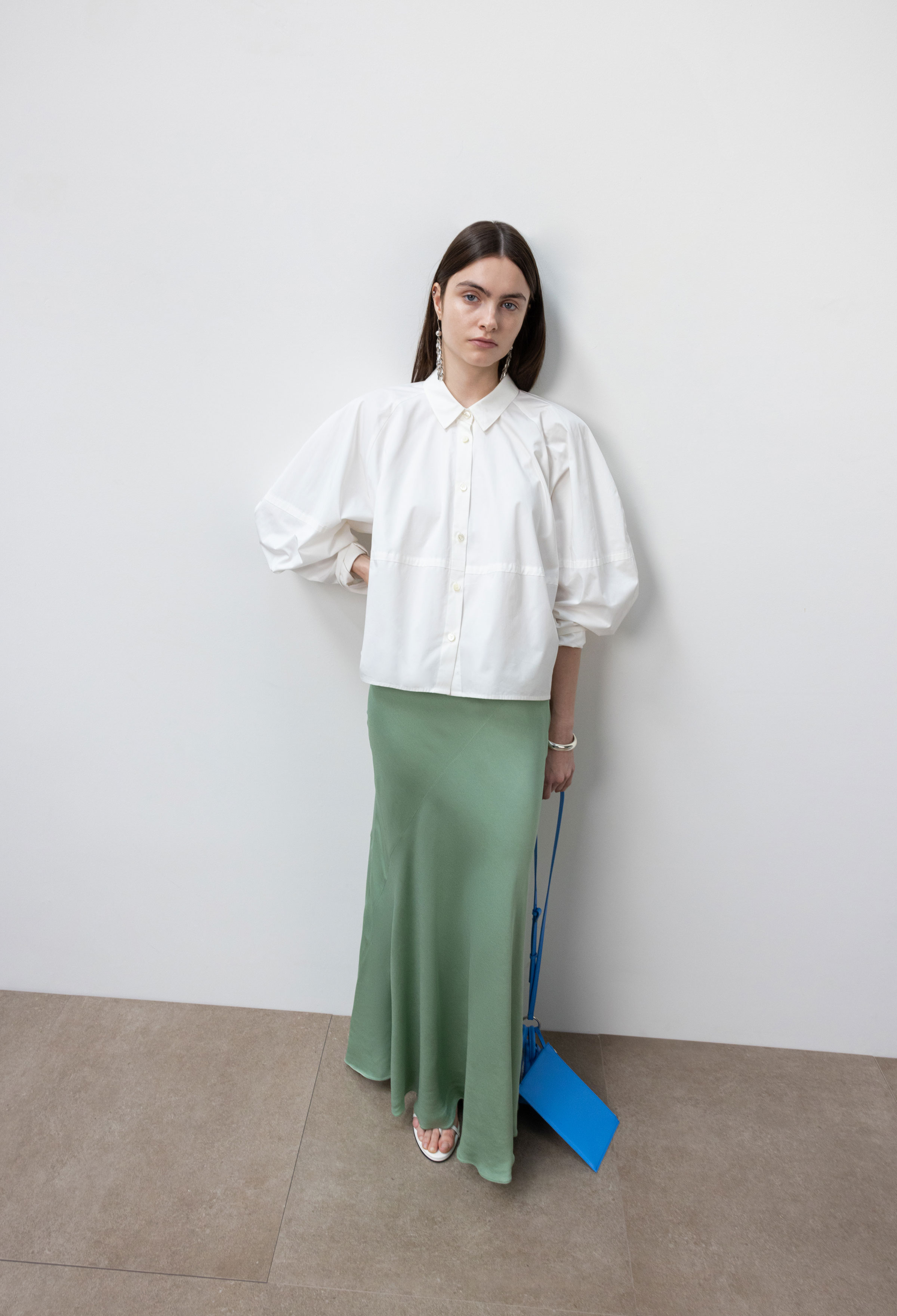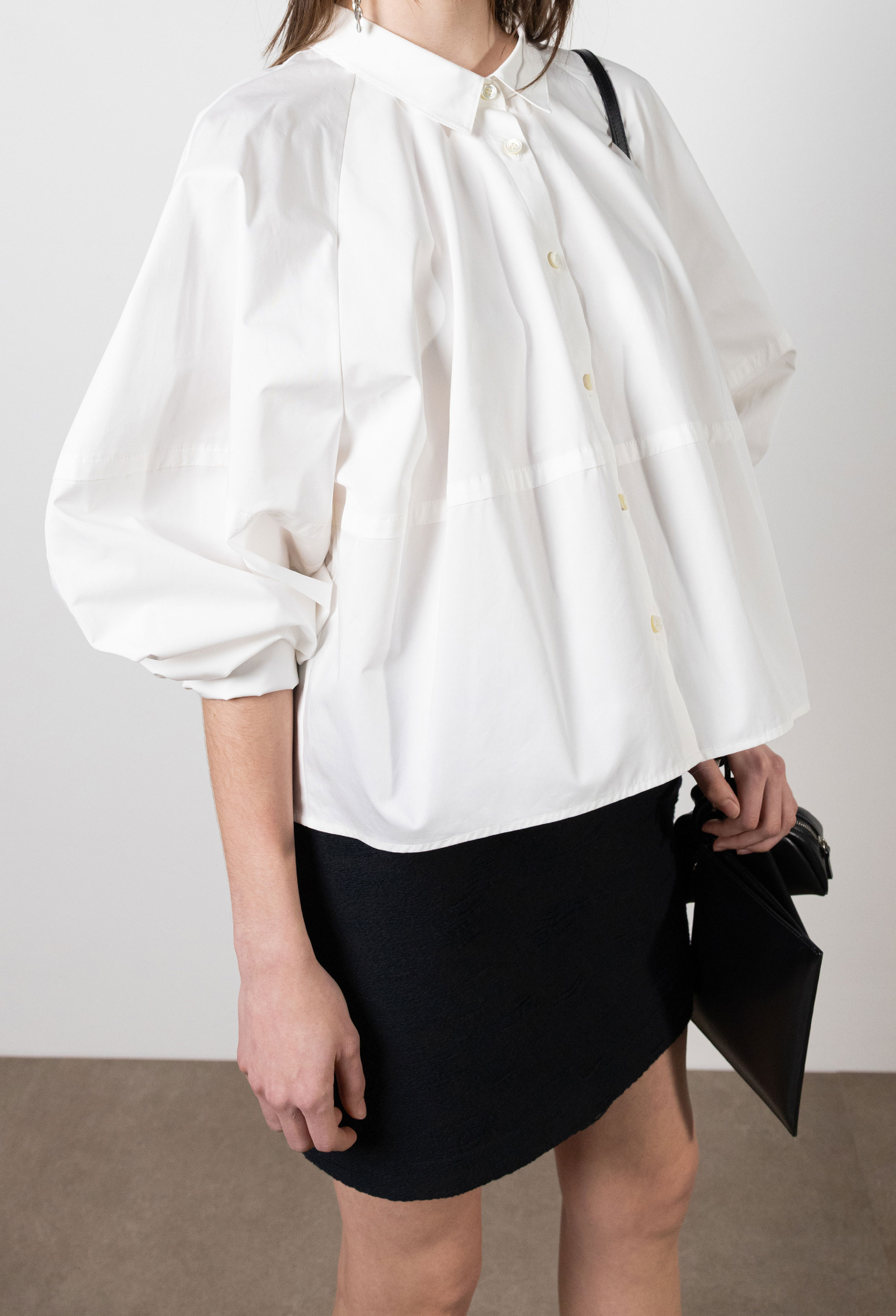 Volume Sleeve Cotton Cropped Shirt
