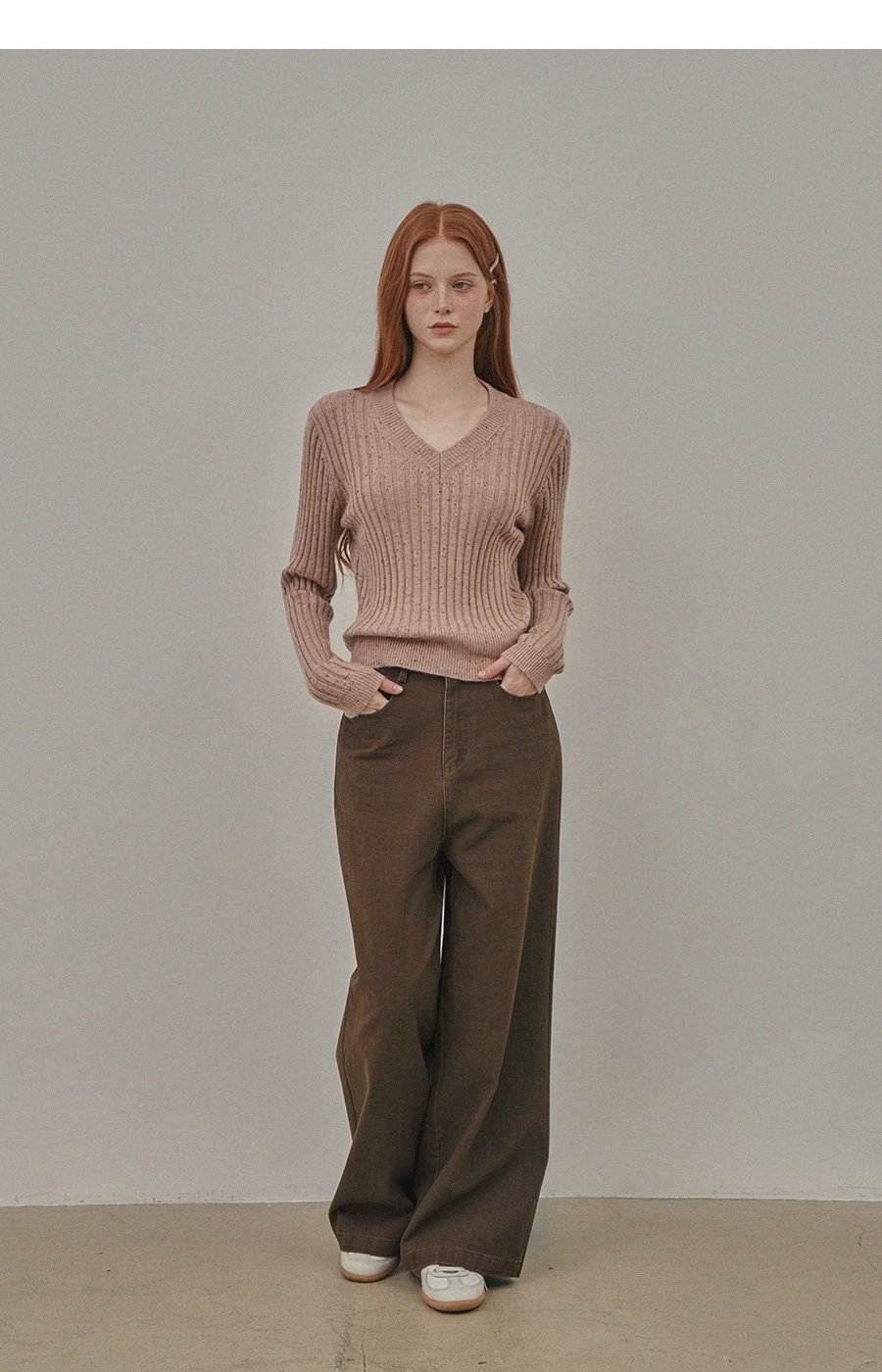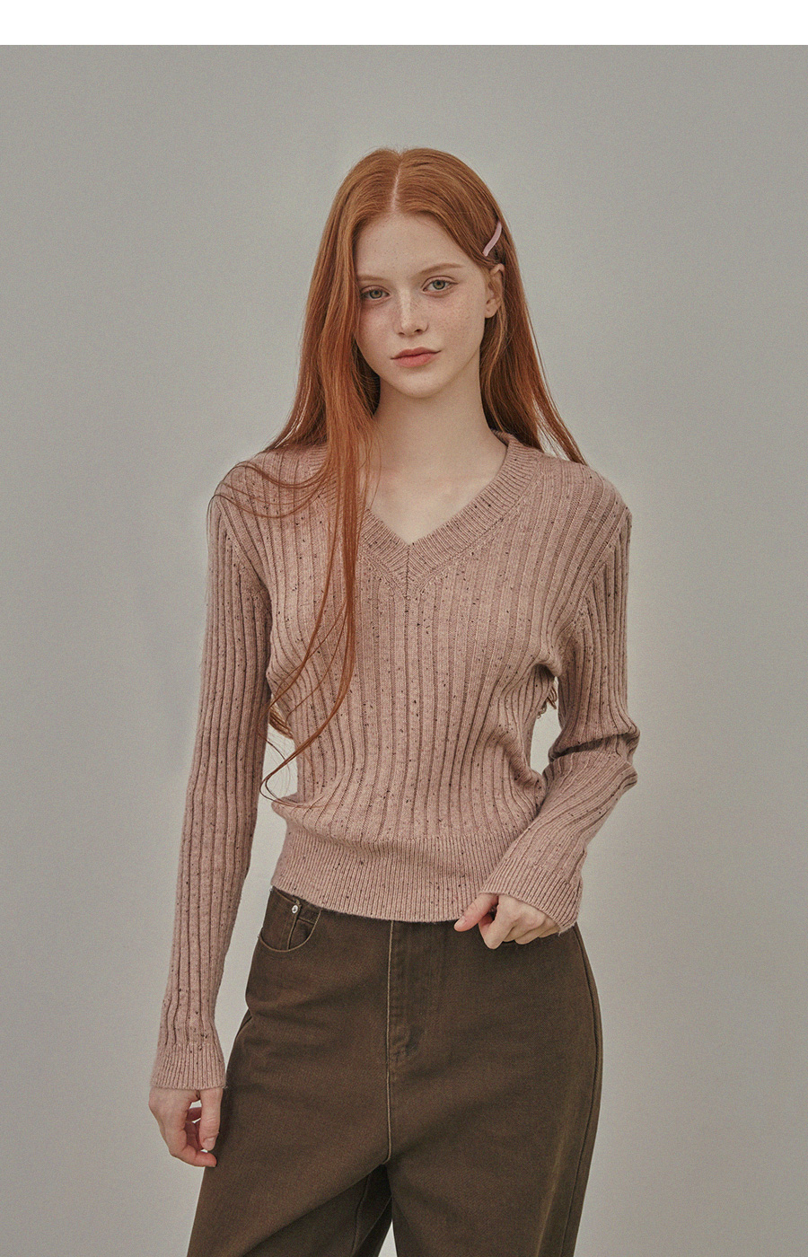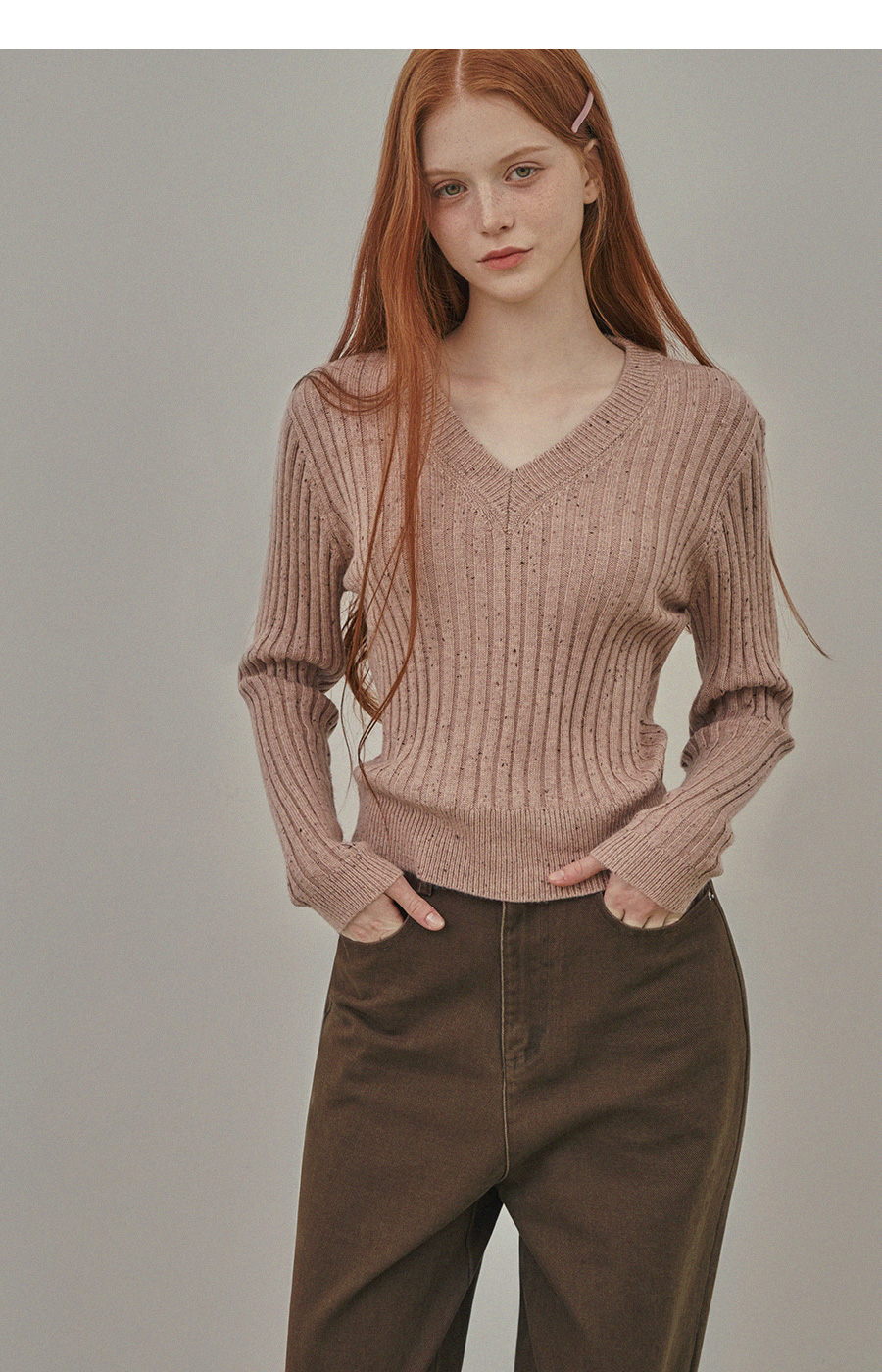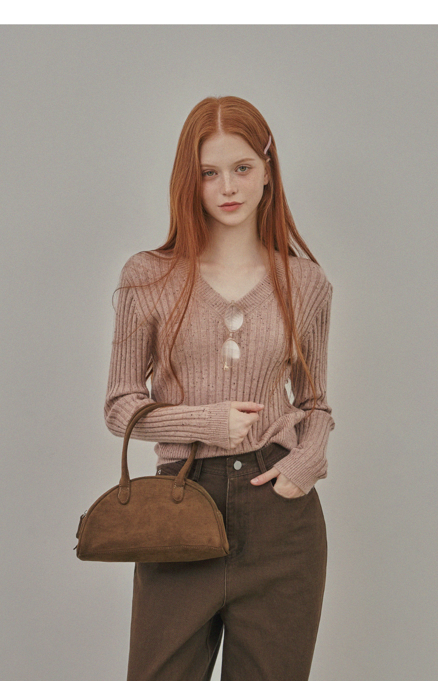 Nibelle Boucle V-Neck Back Button Wool Knit