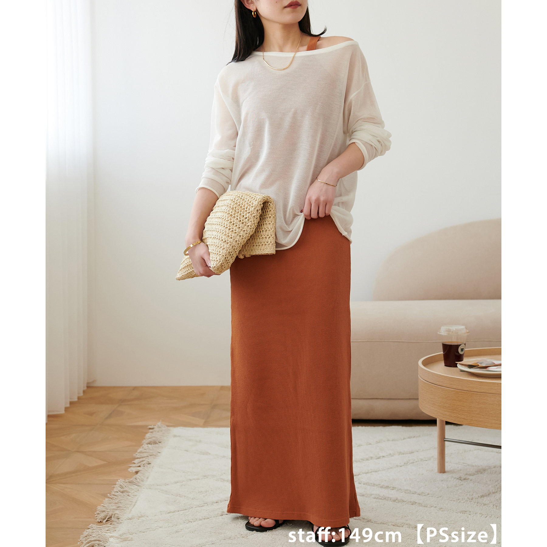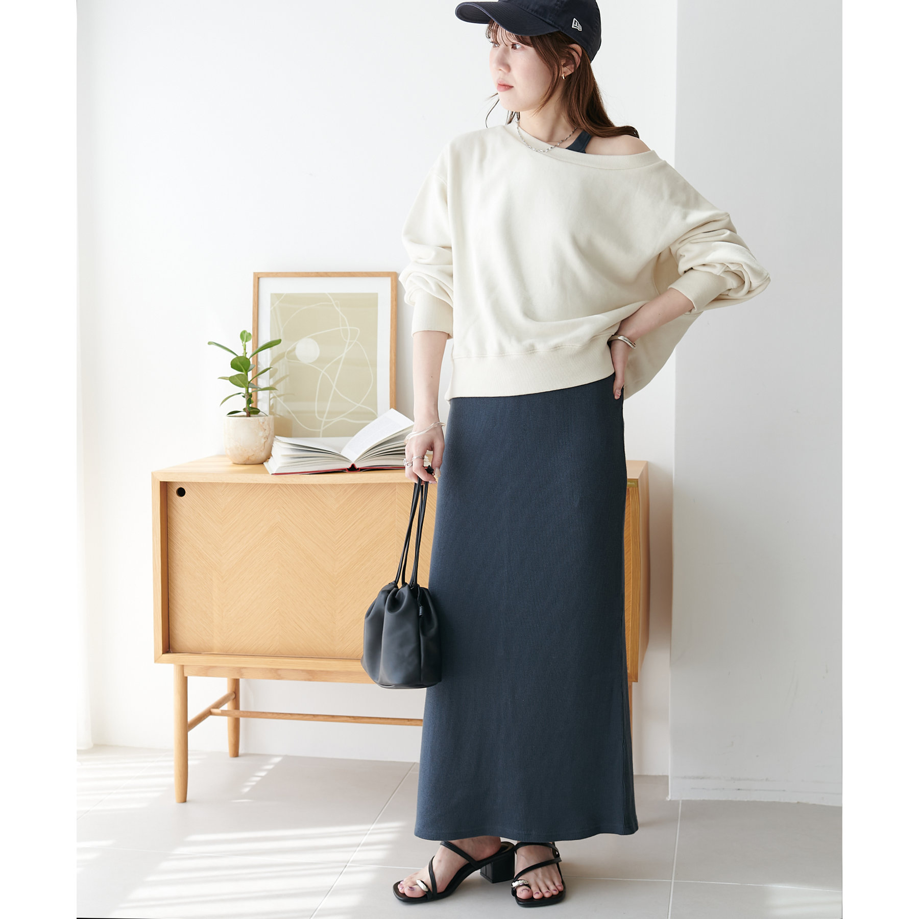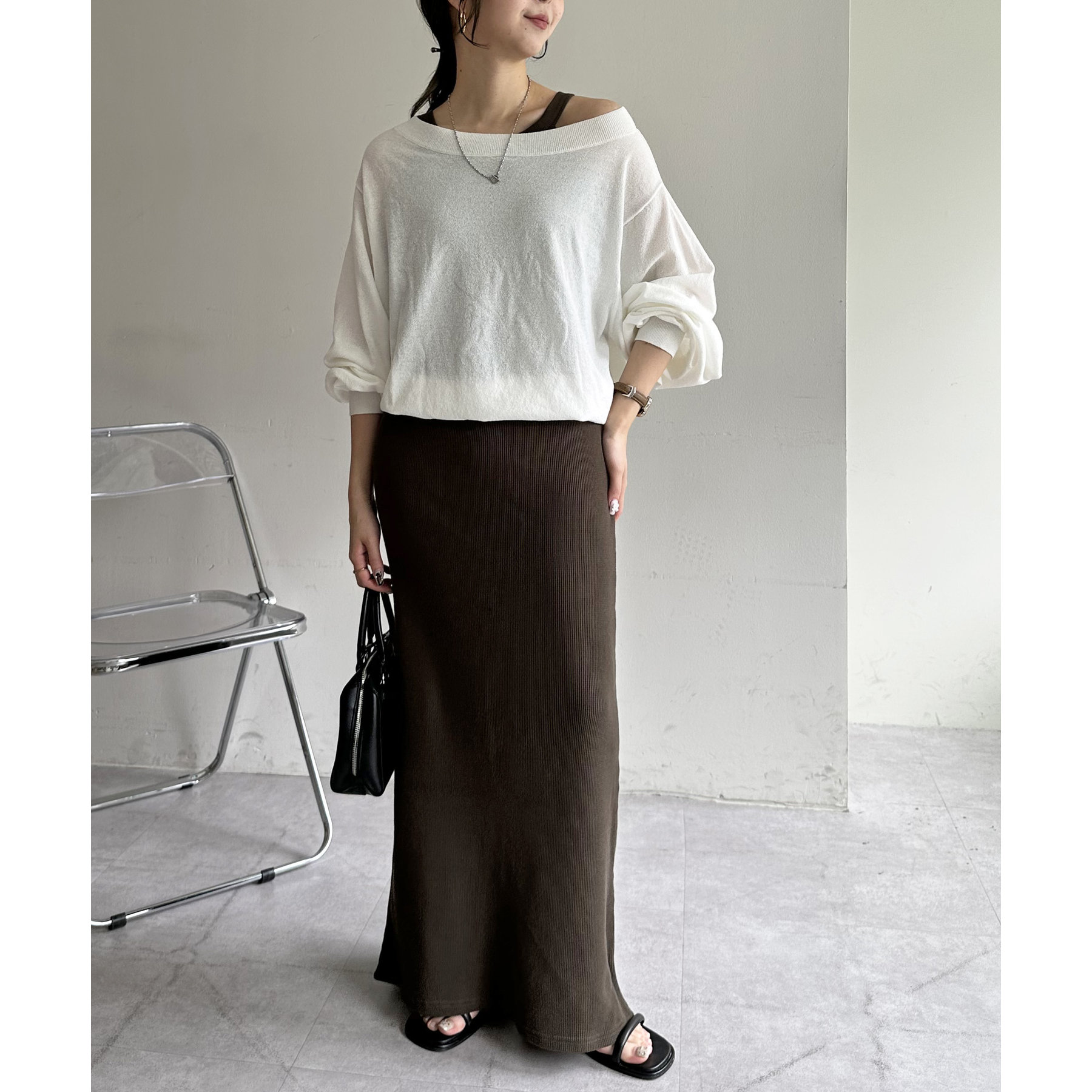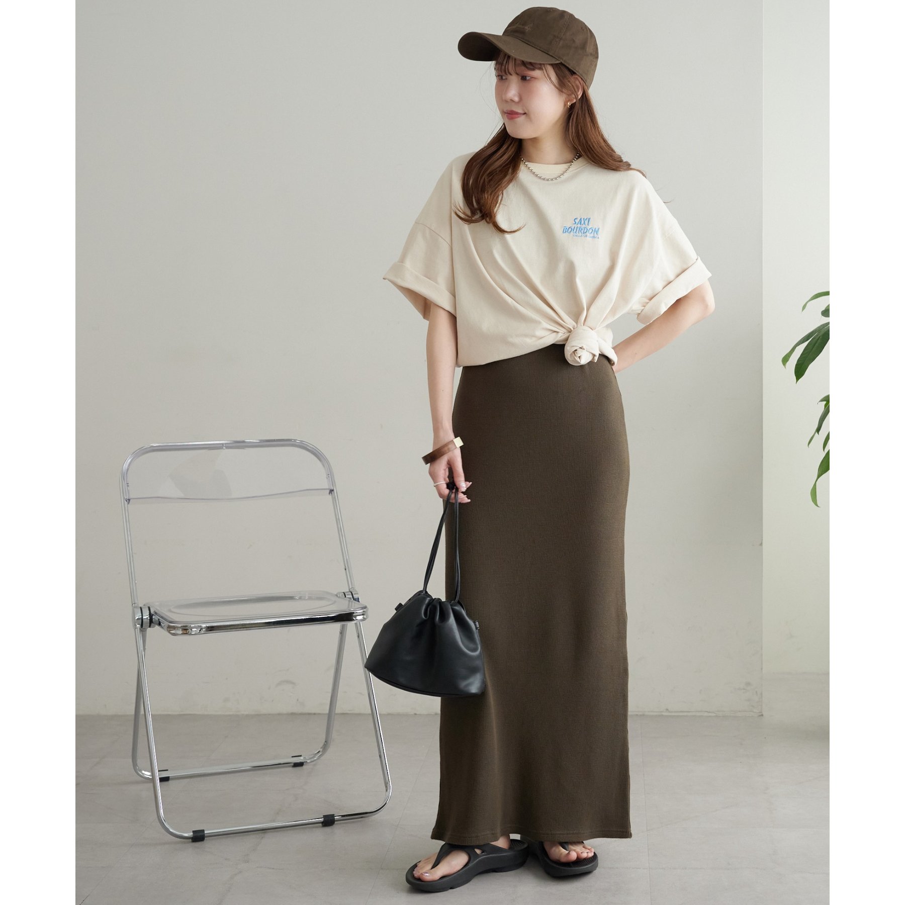 一枚ではもちろんですが、上からTシャツやスウェットと合わせて、スカート使いするのもおすすめです◎