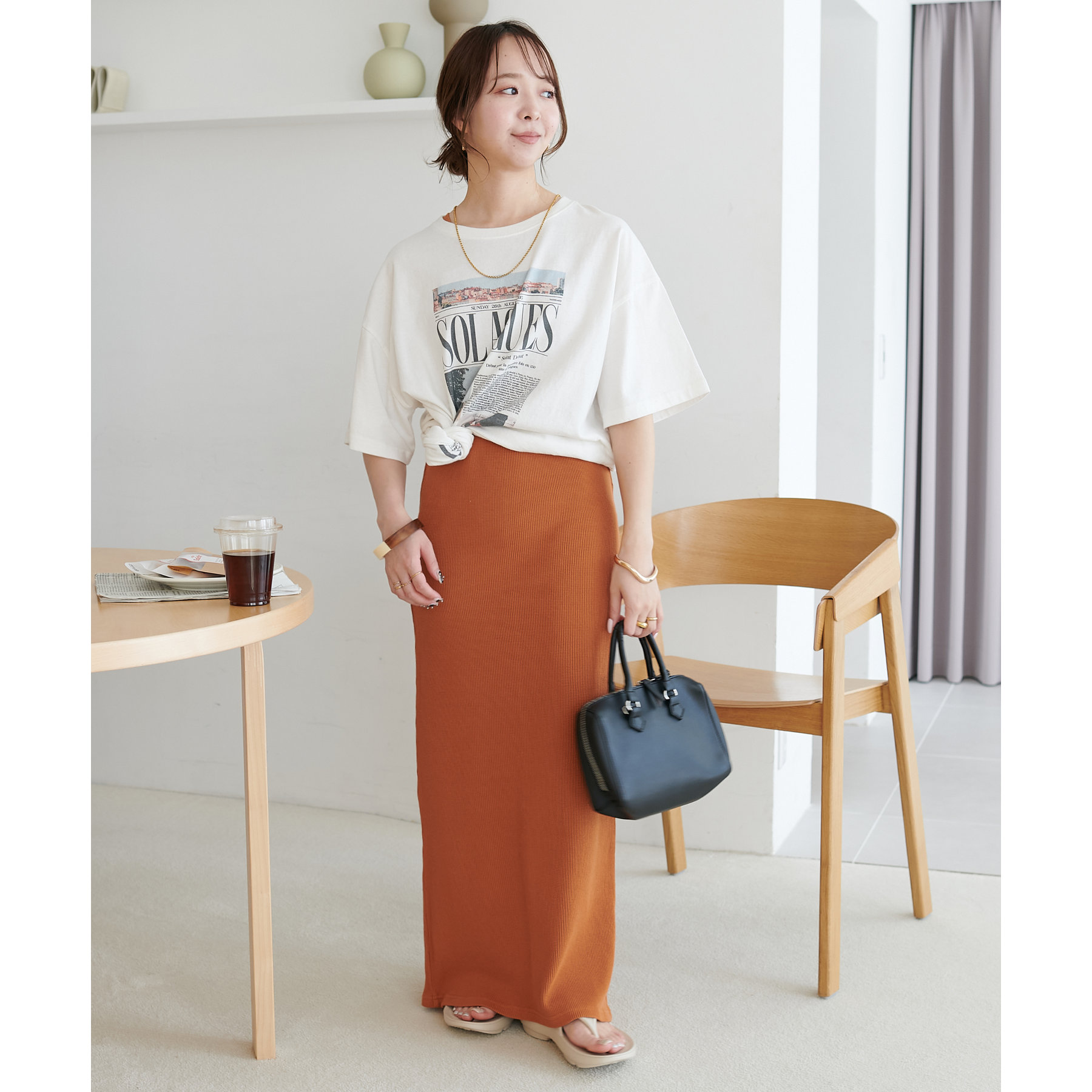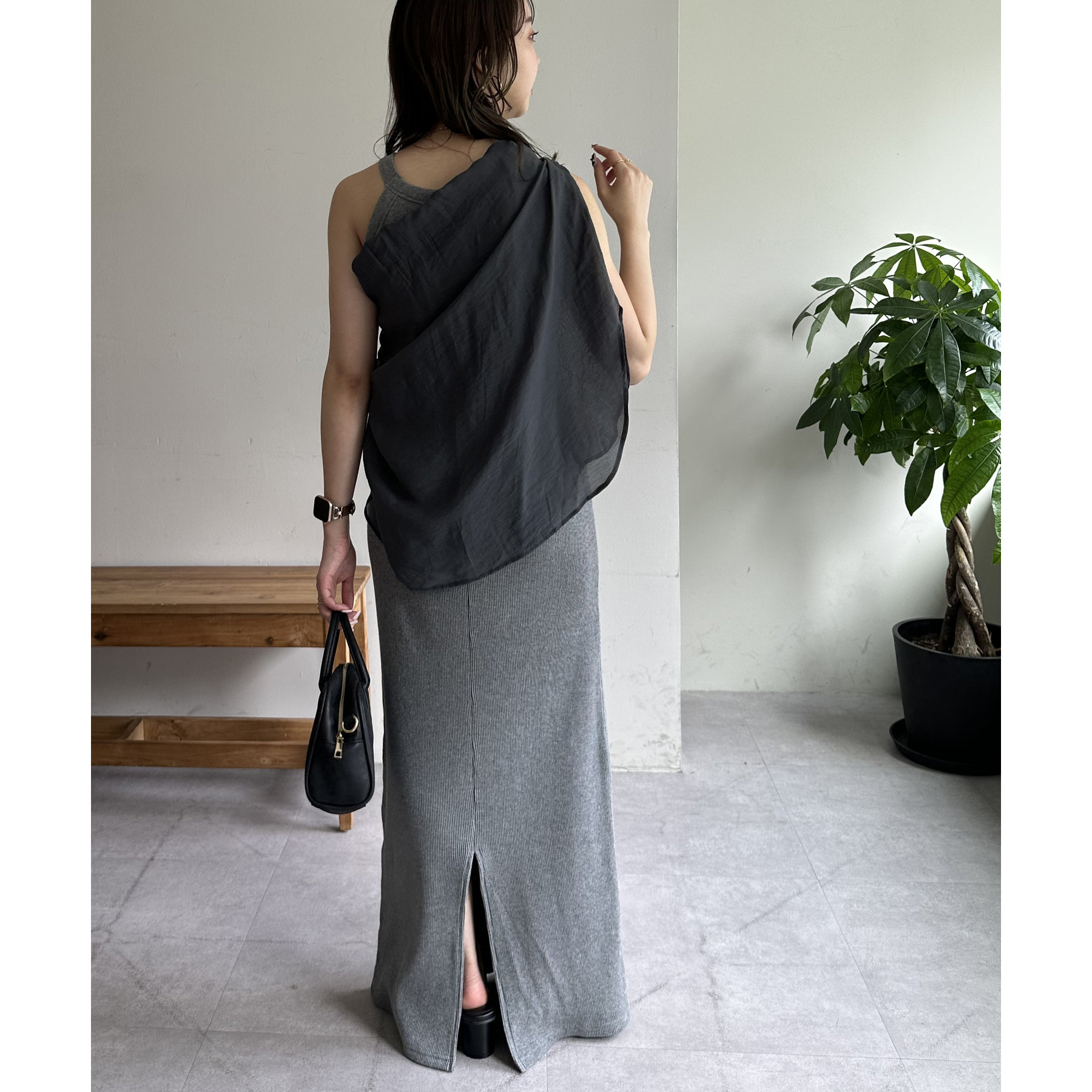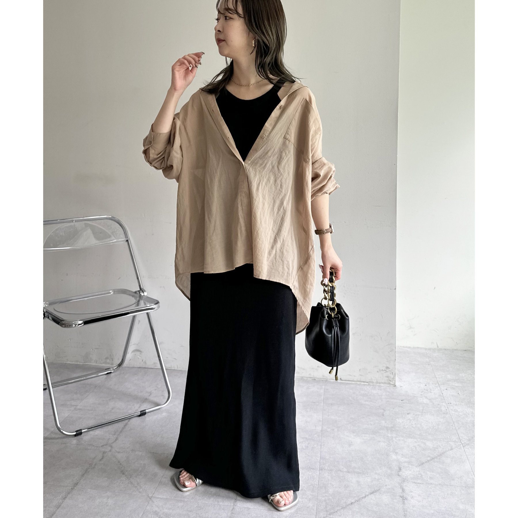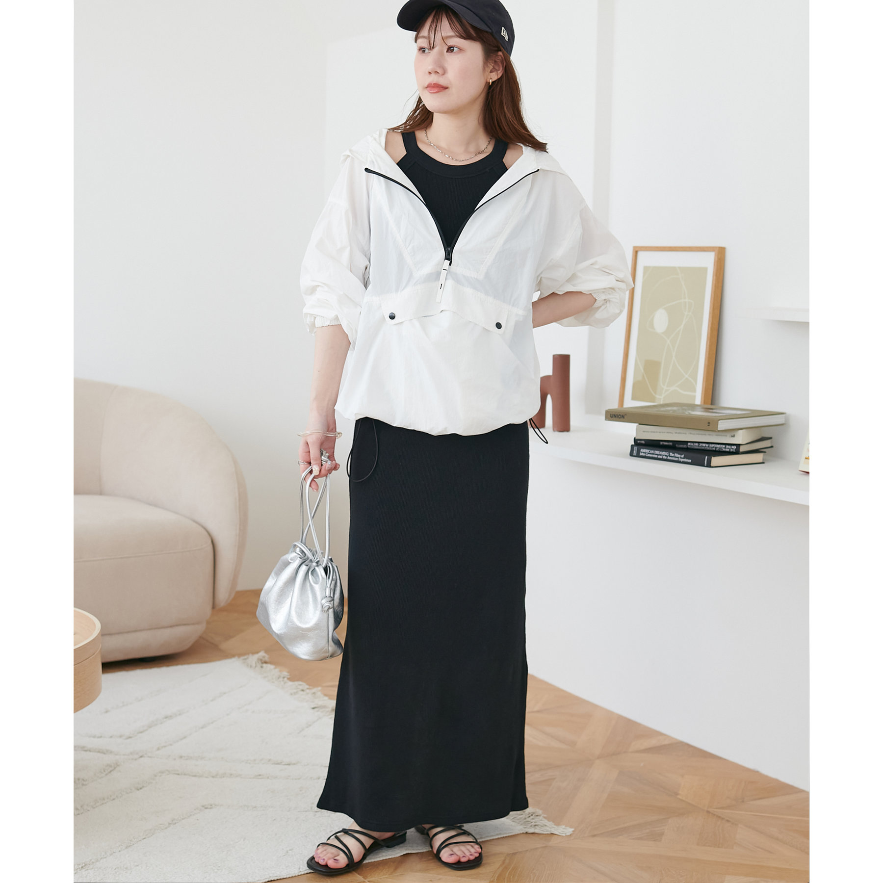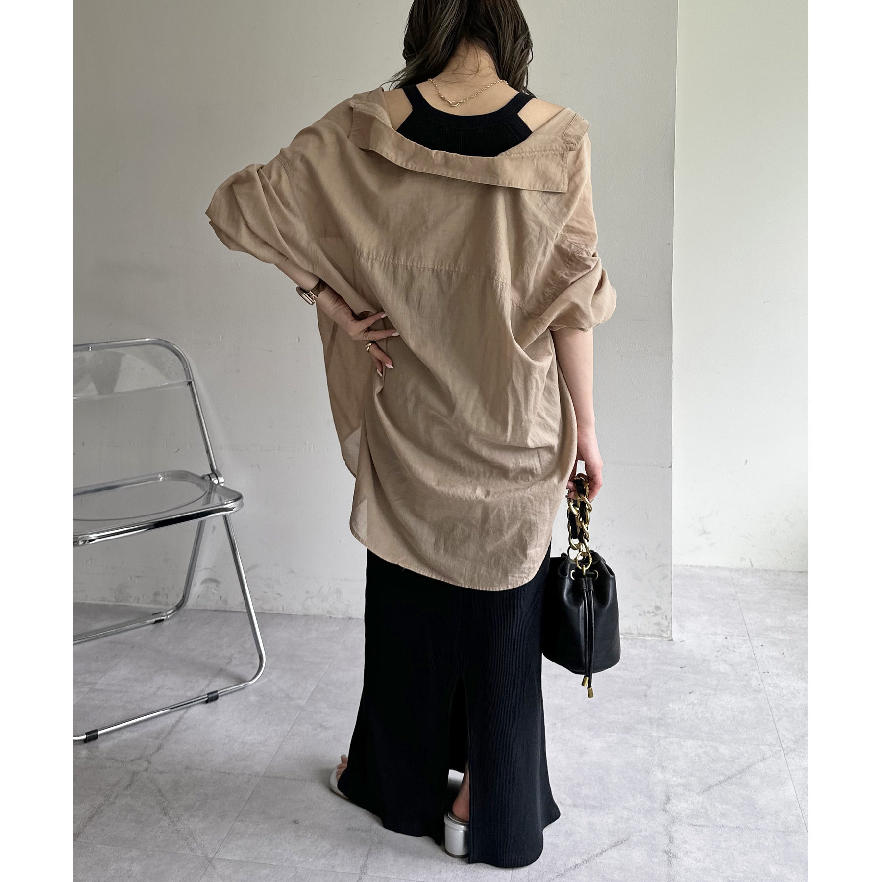 一枚ではもちろんですが、上からTシャツやスウェットと合わせて、スカート使いするのもおすすめです◎