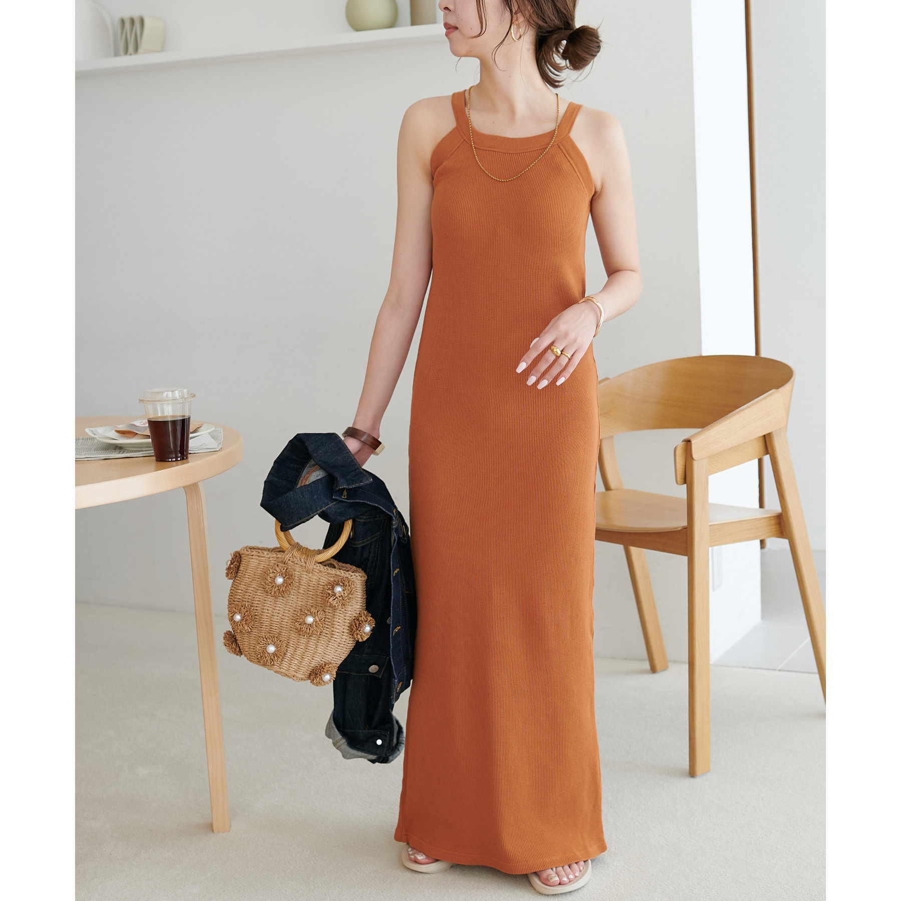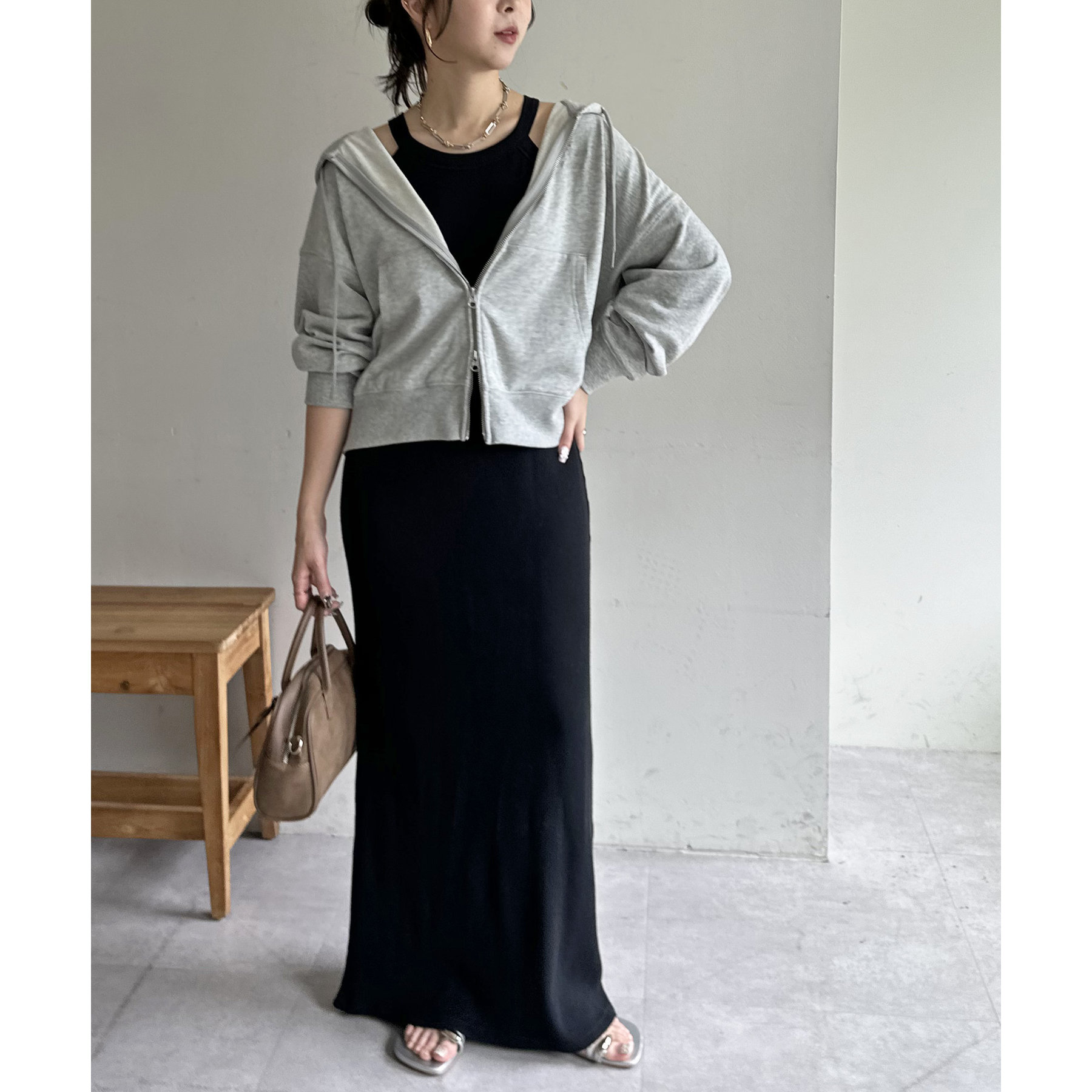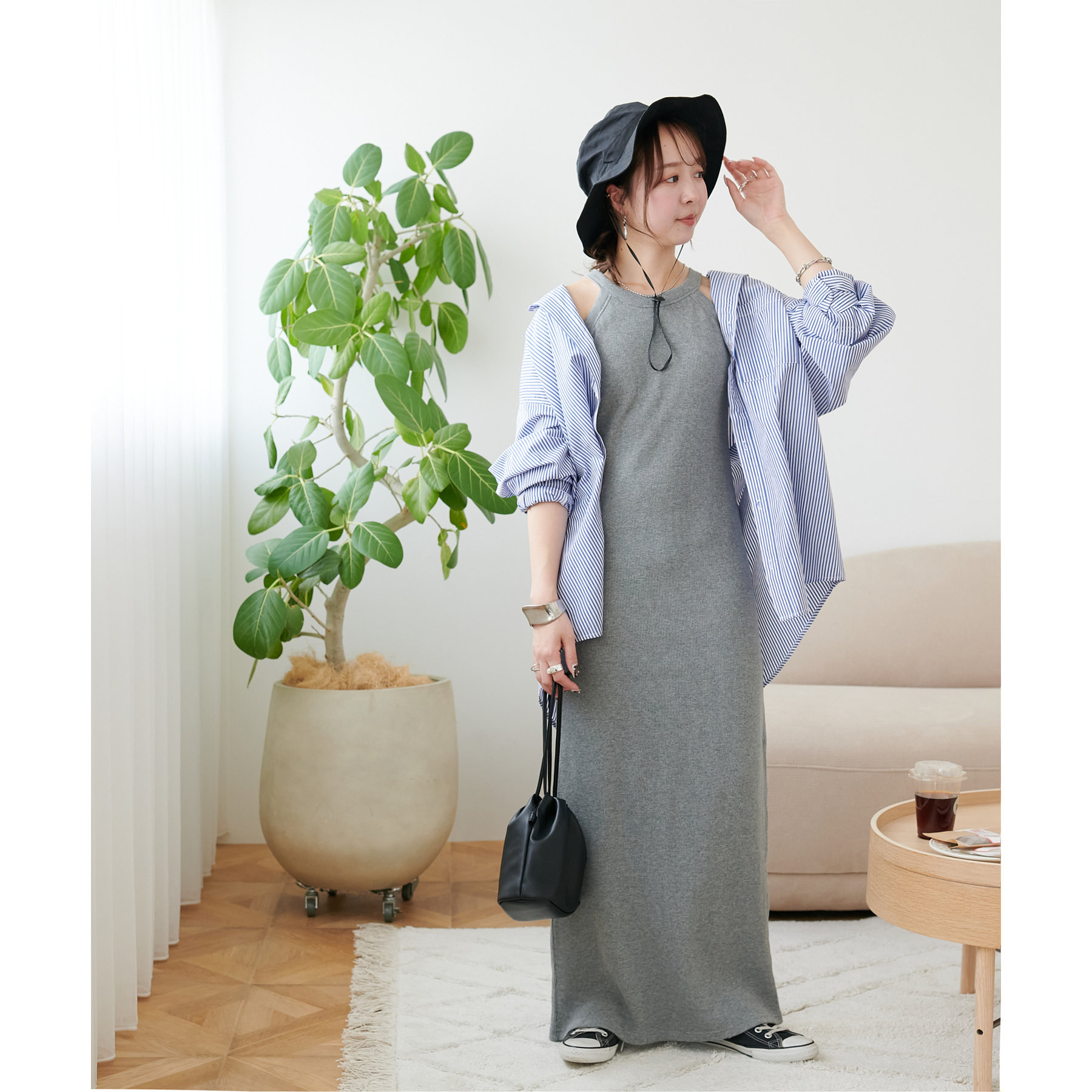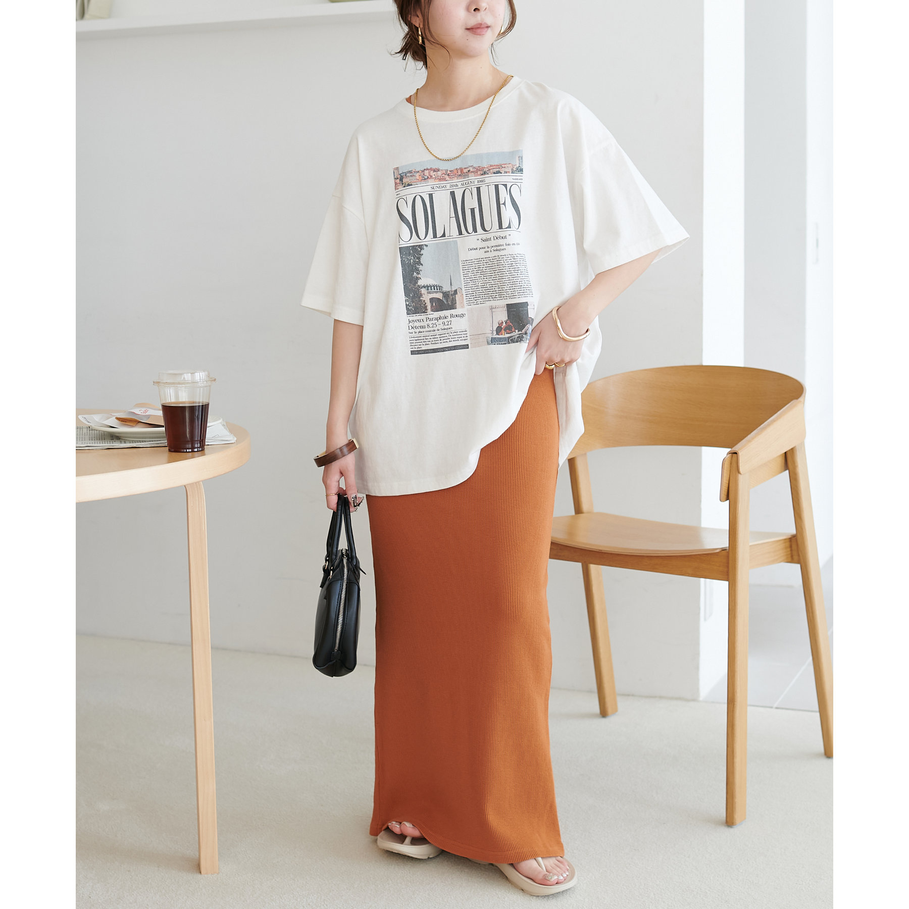 一枚ではもちろんですが、上からTシャツやスウェットと合わせて、スカート使いするのもおすすめです◎