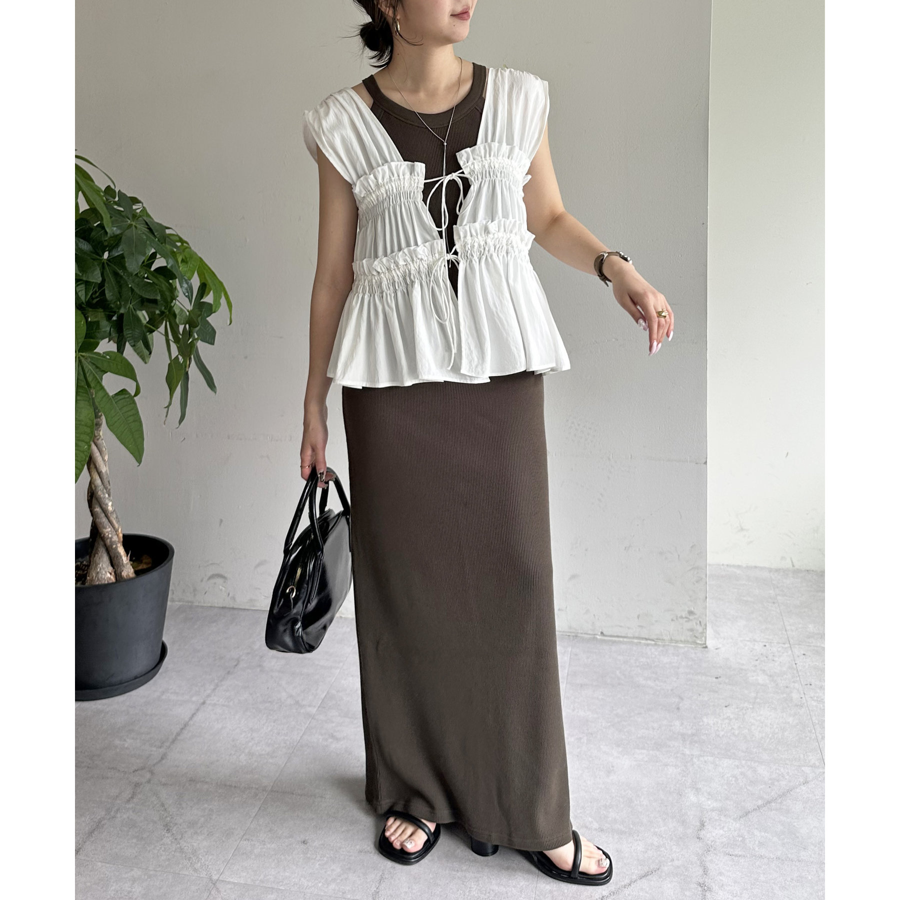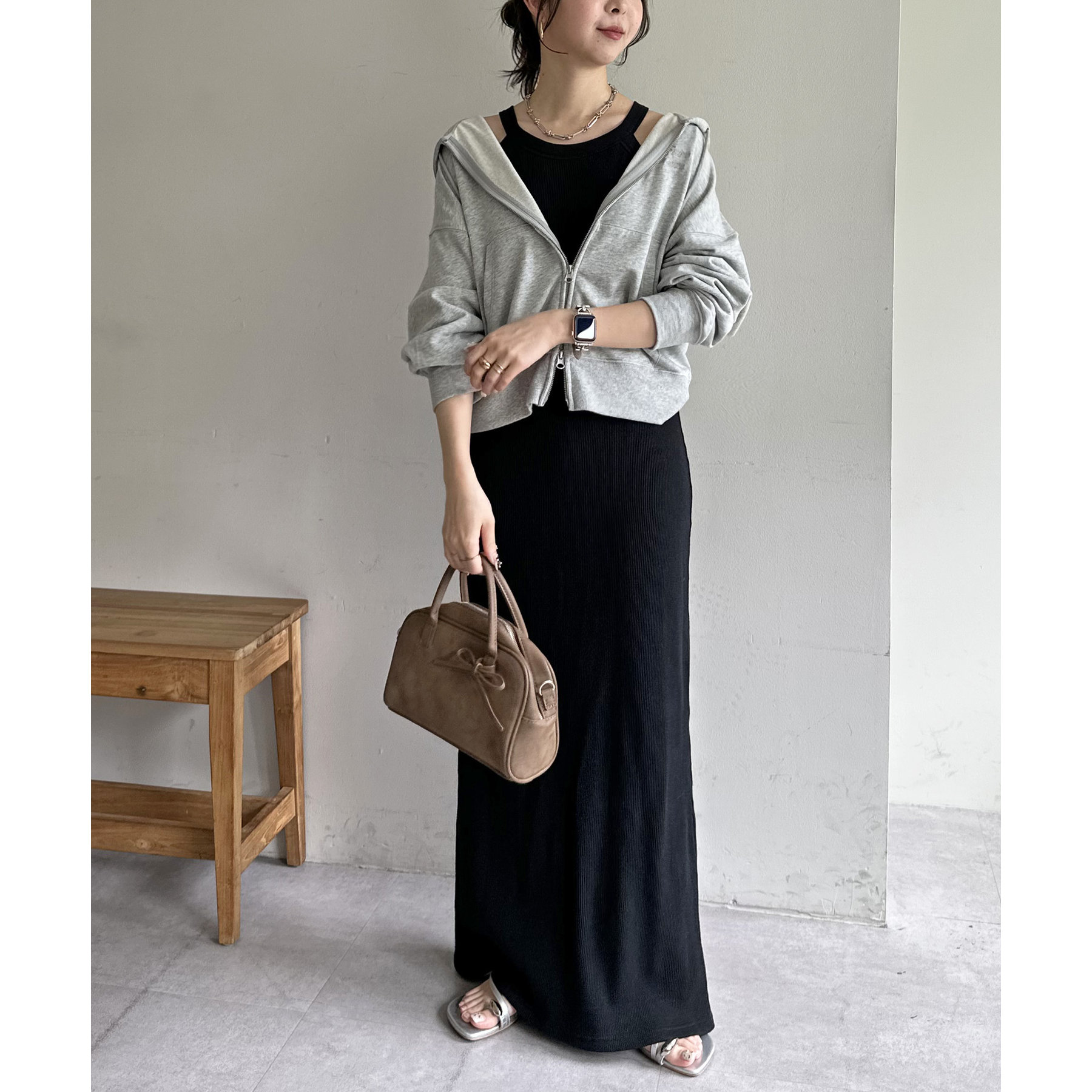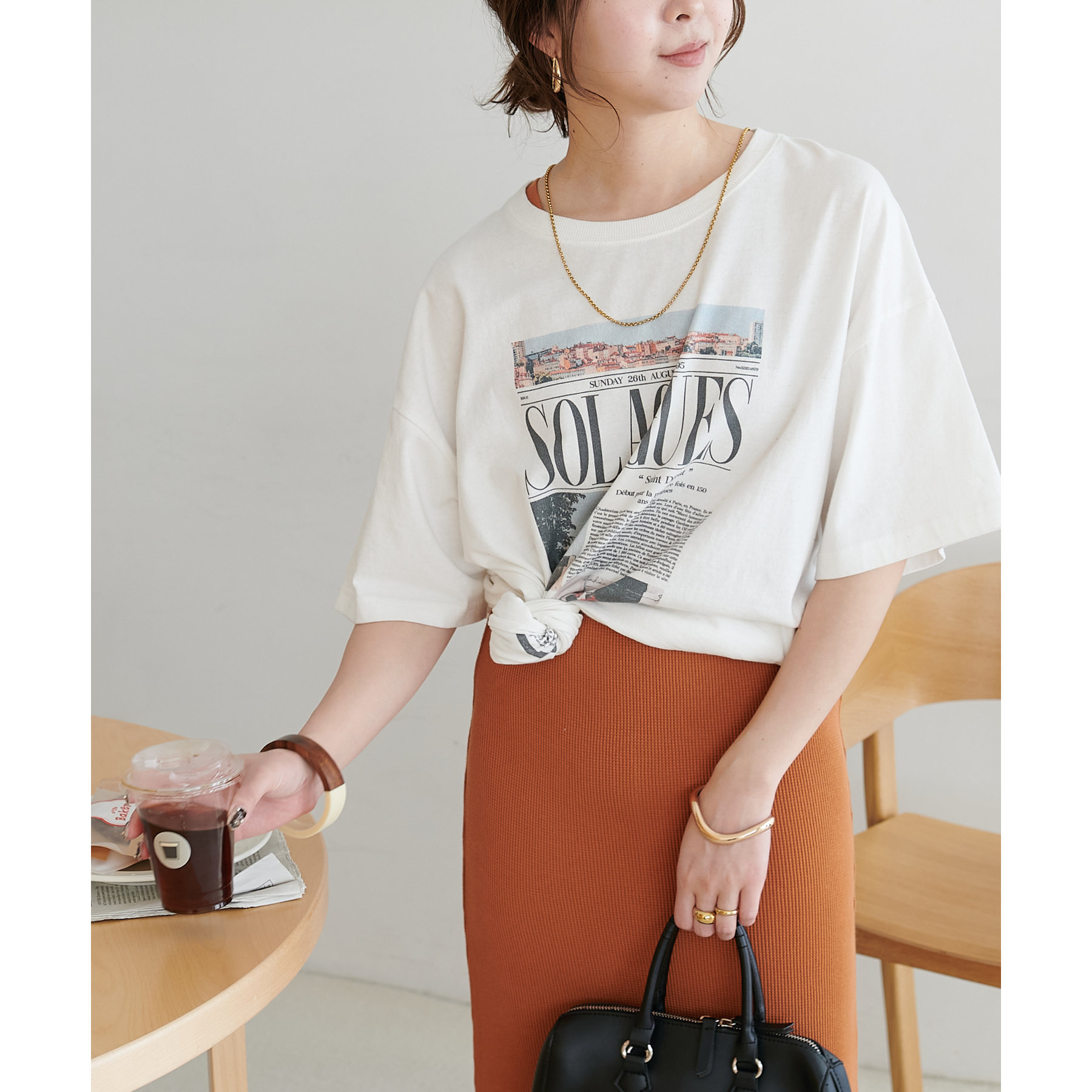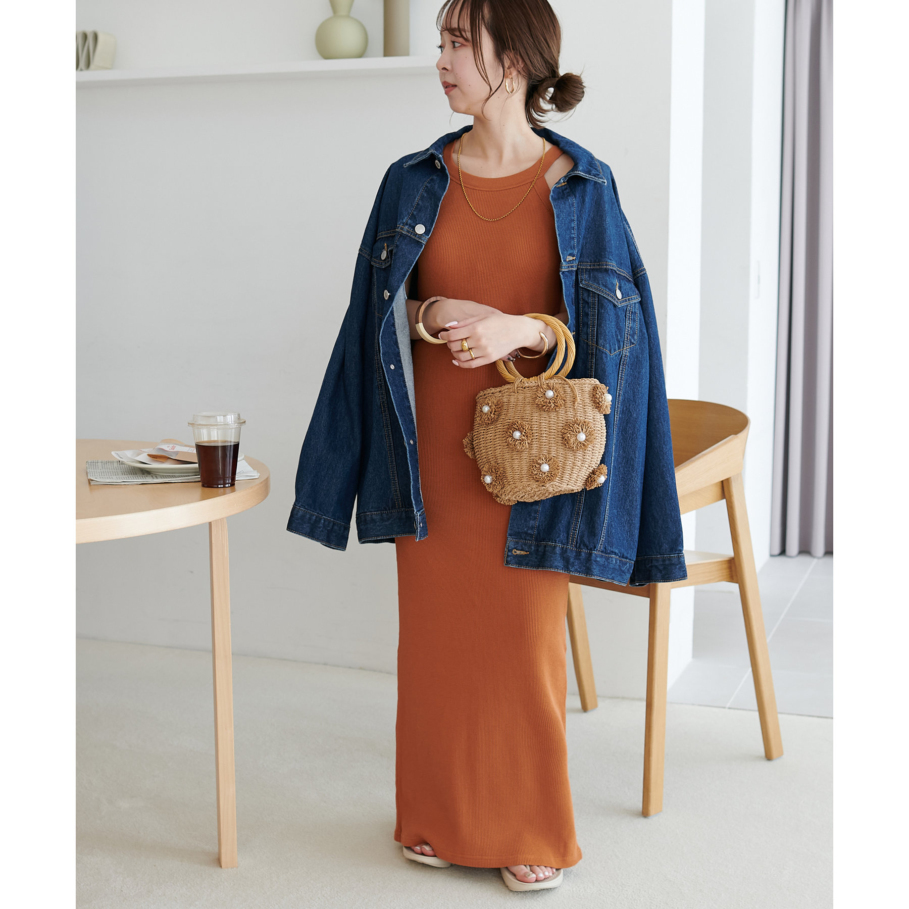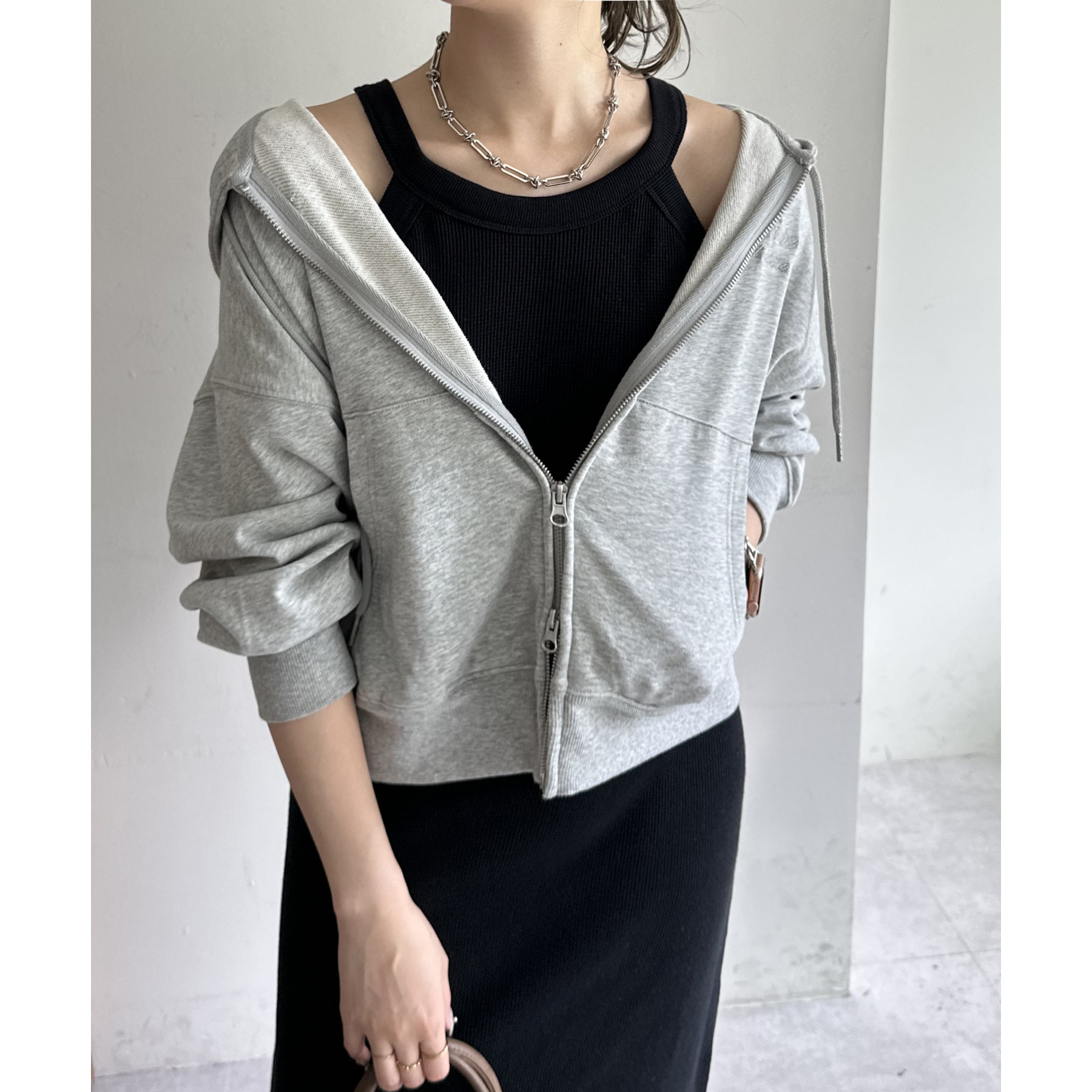 一枚ではもちろんですが、上からTシャツやスウェットと合わせて、スカート使いするのもおすすめです◎