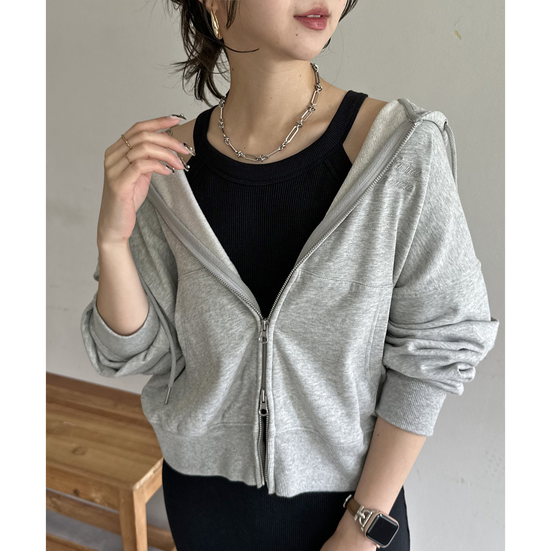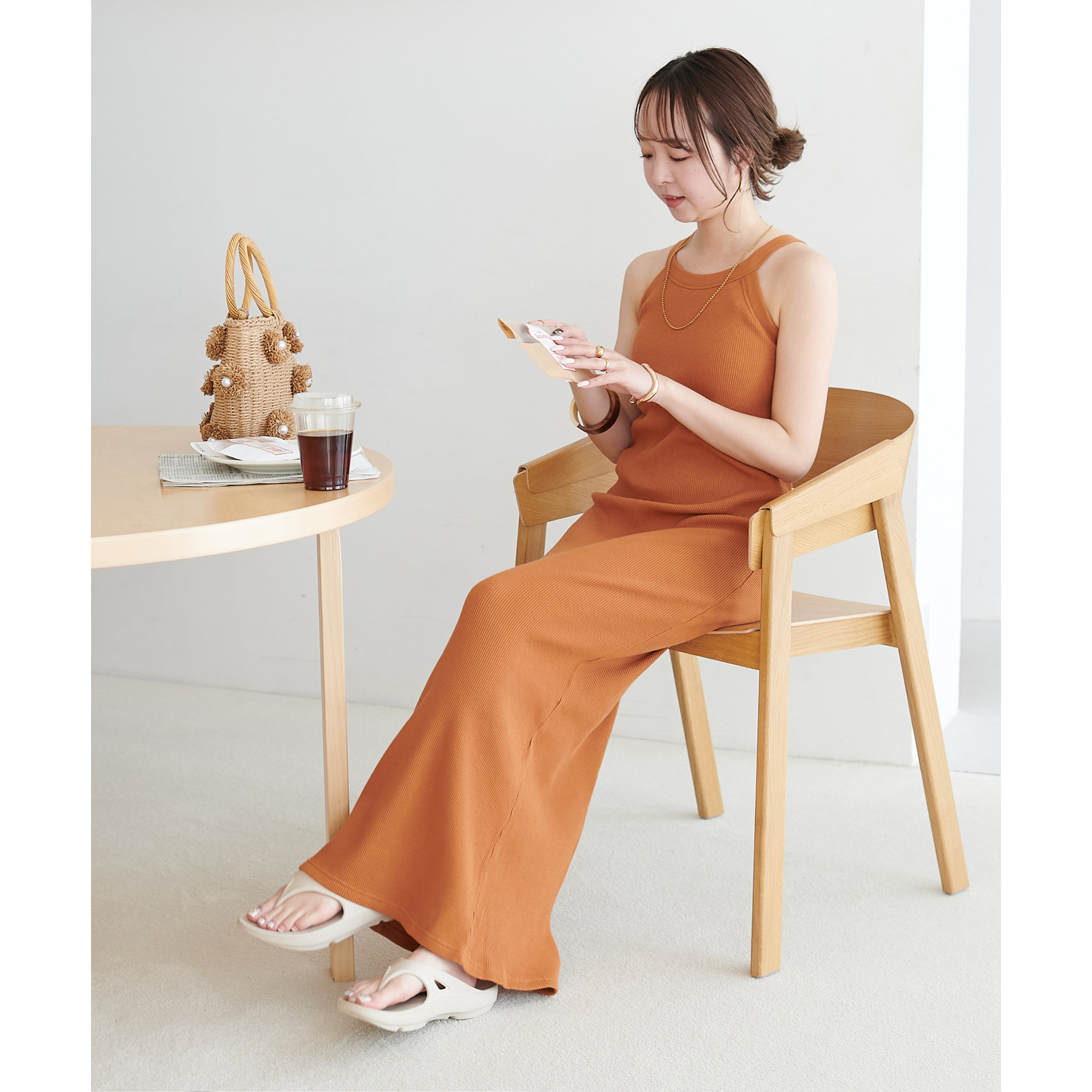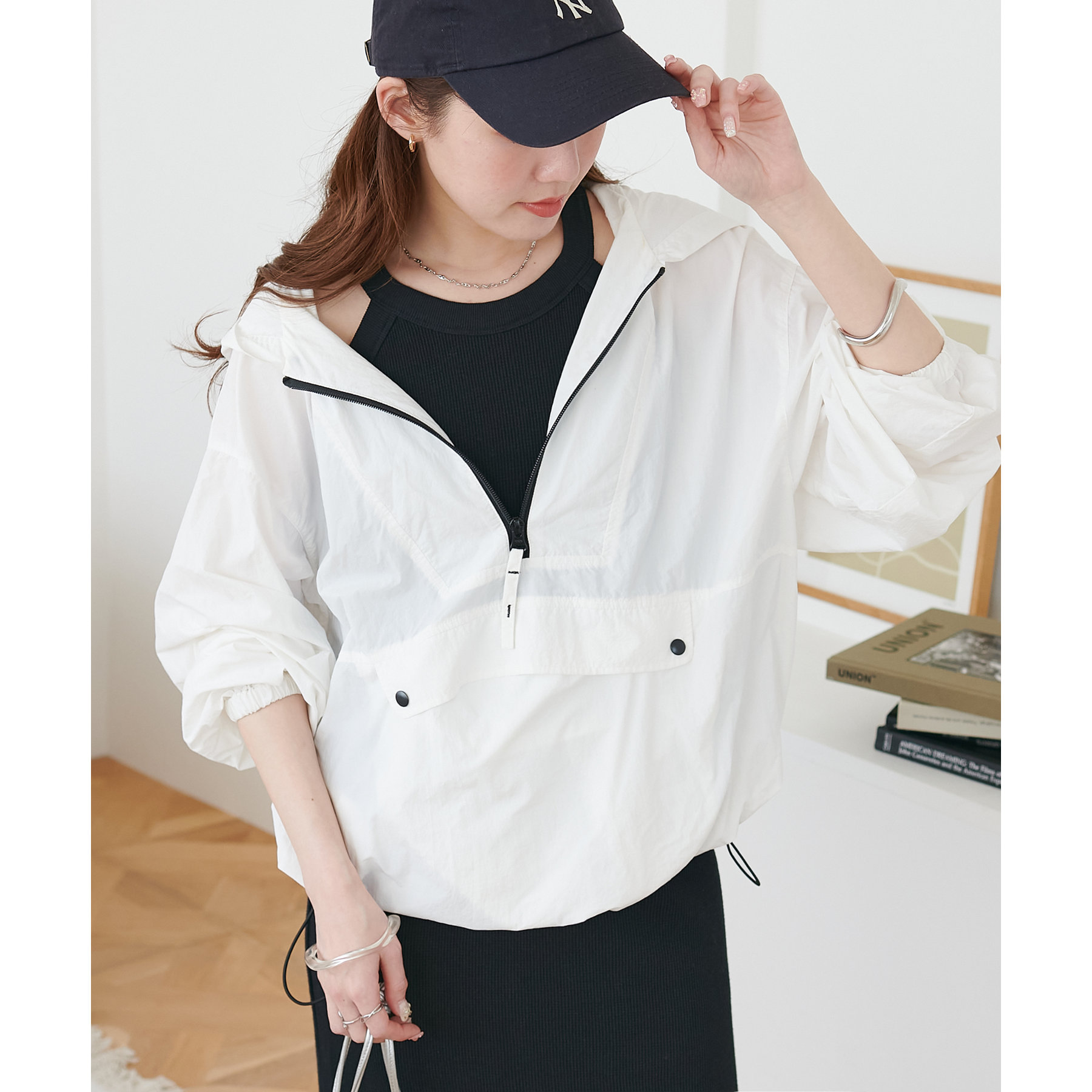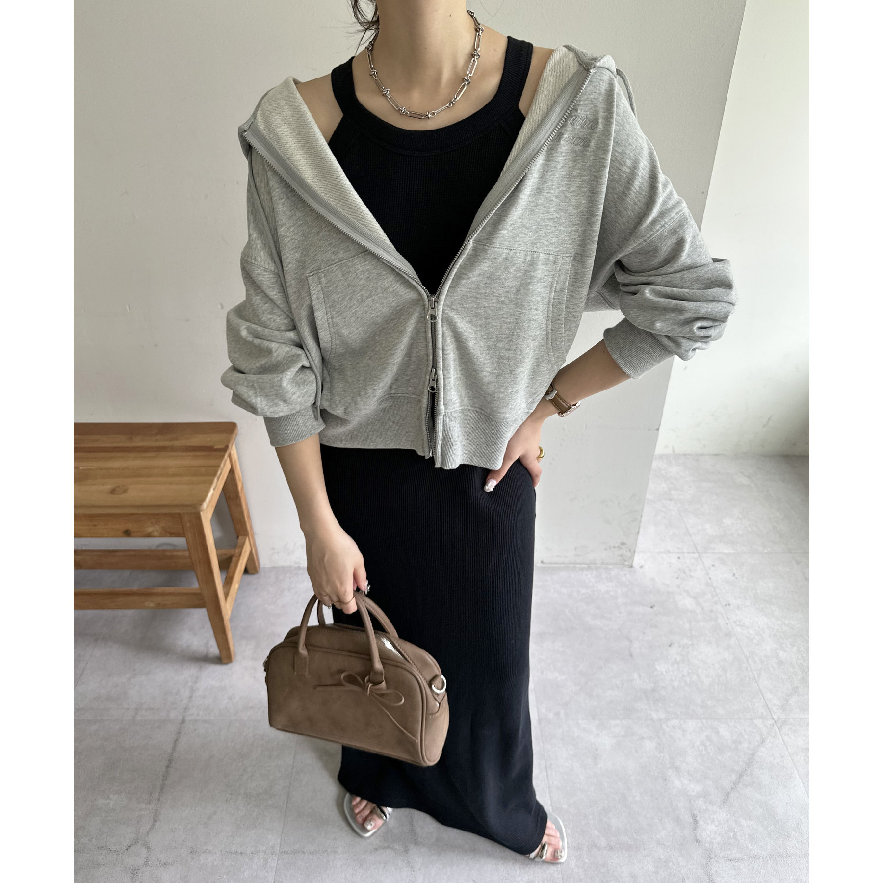 一枚ではもちろんですが、上からTシャツやスウェットと合わせて、スカート使いするのもおすすめです◎