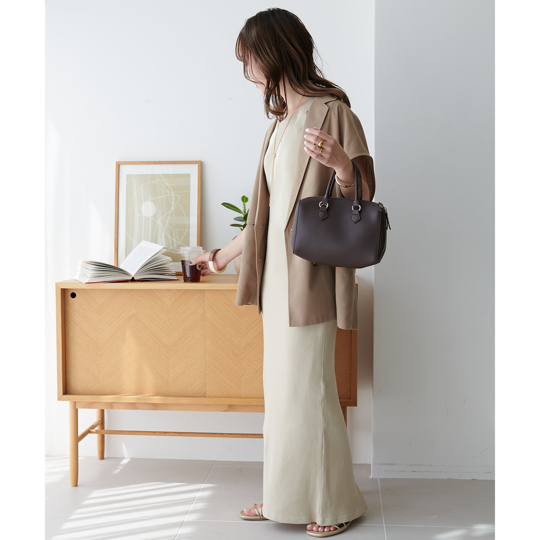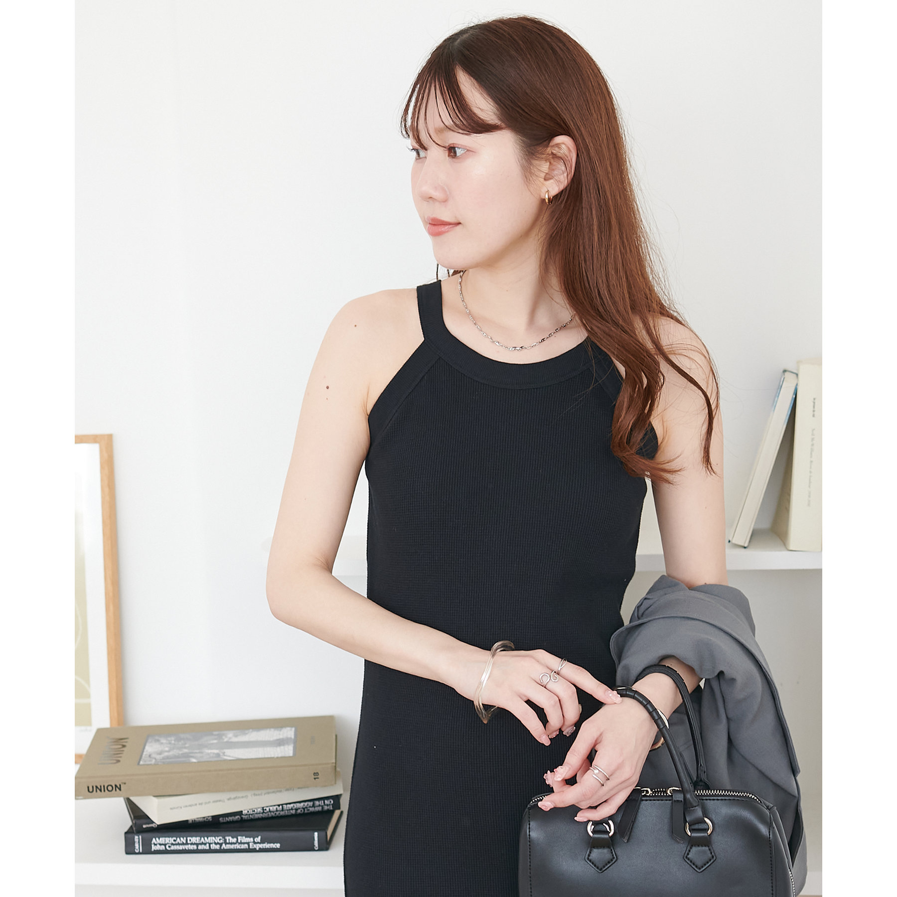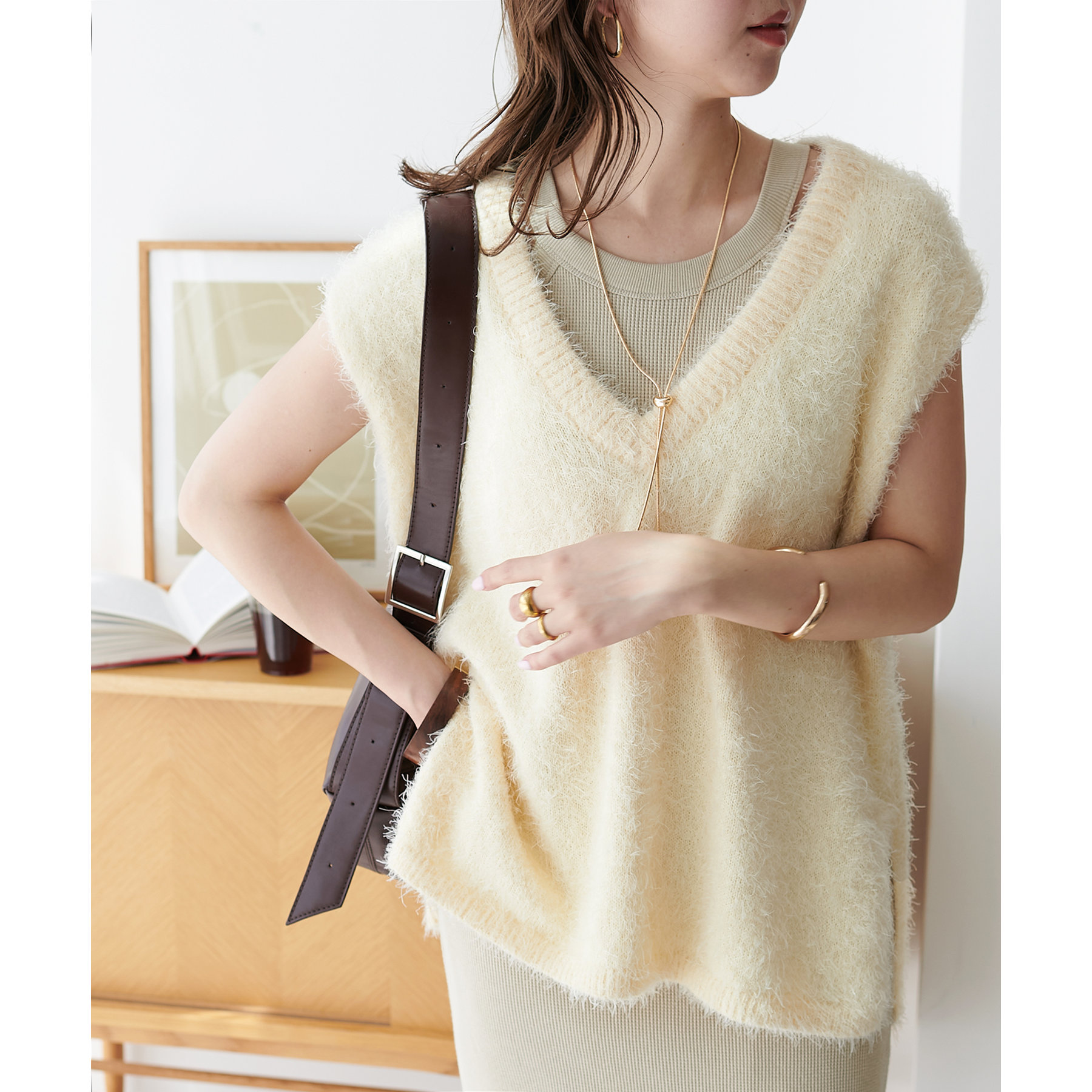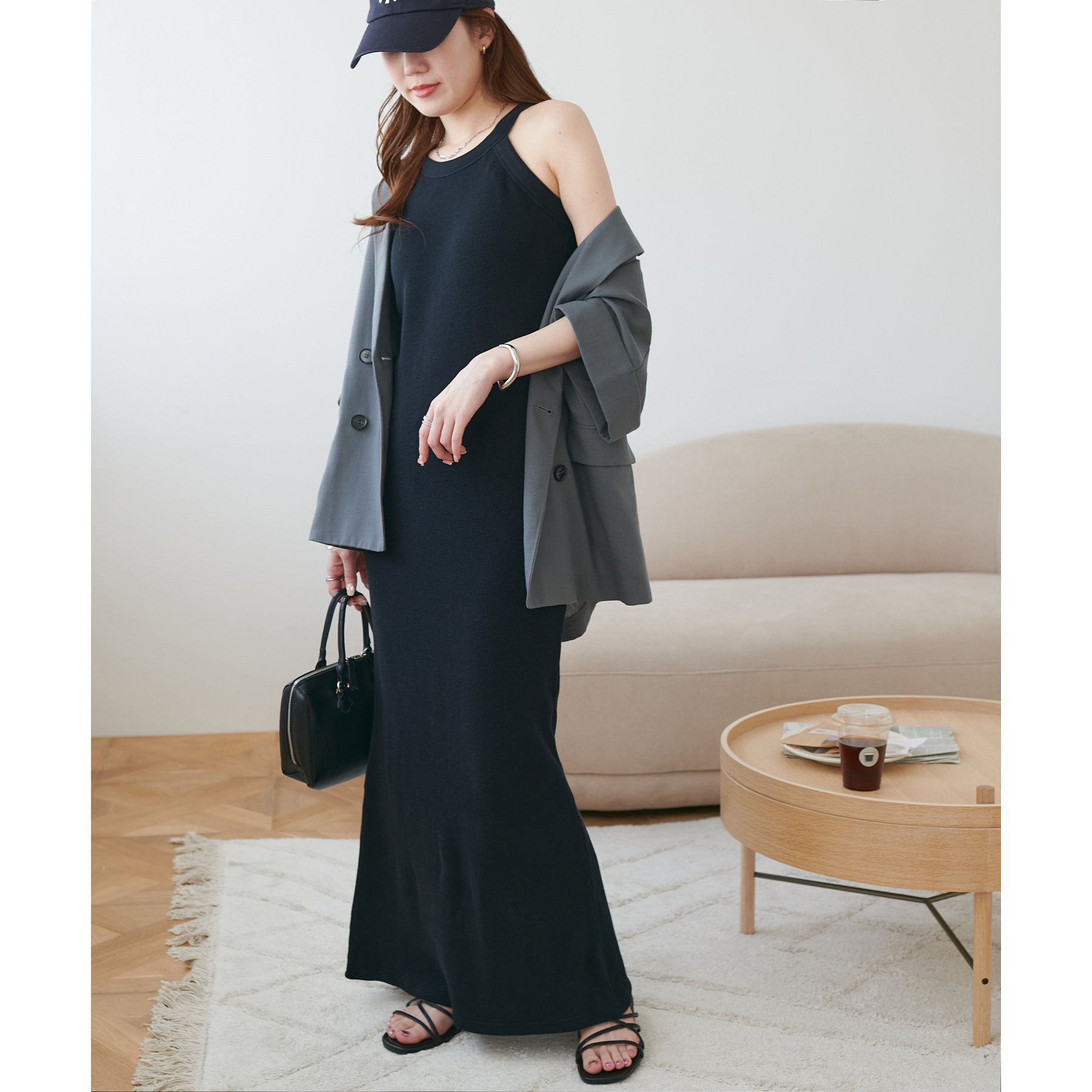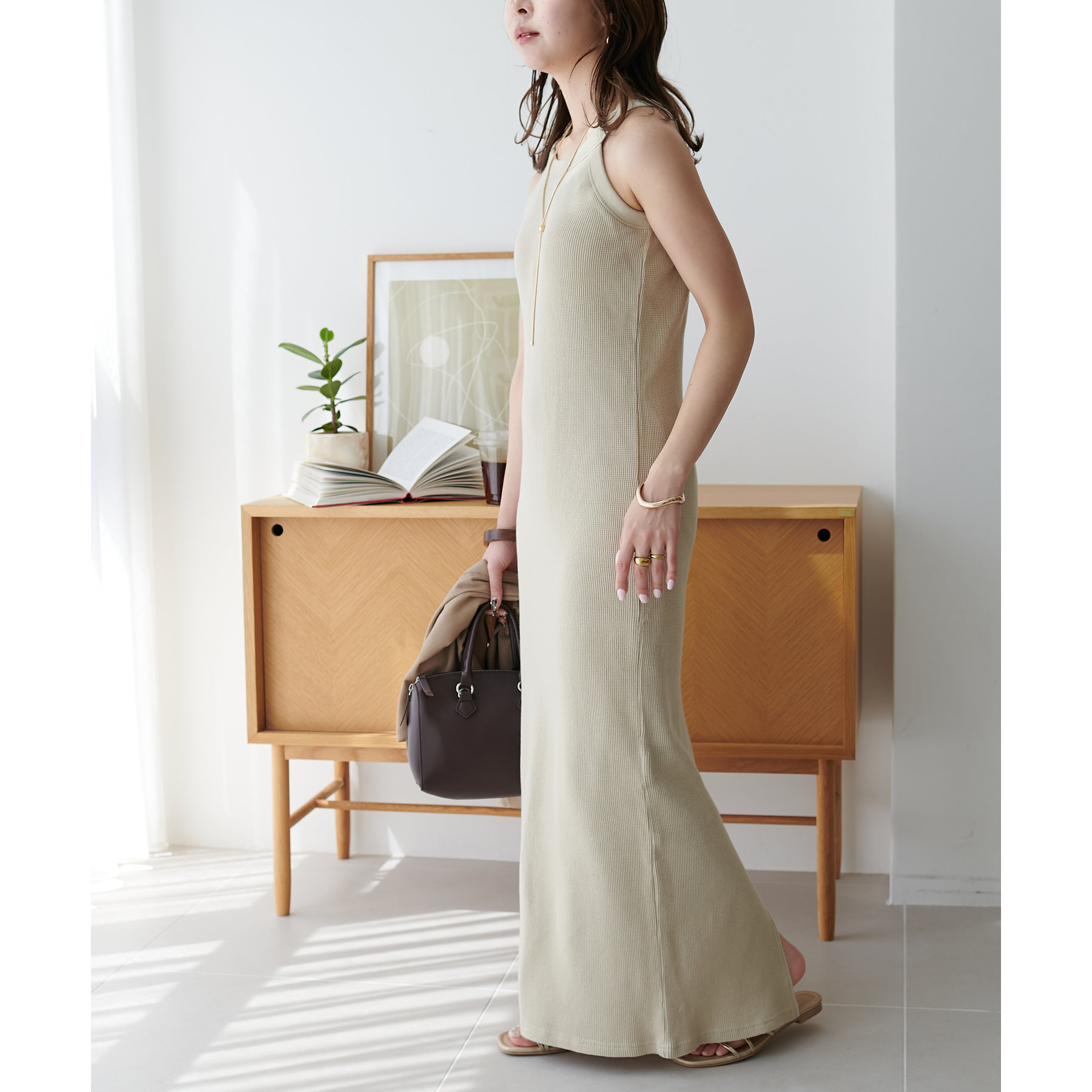 表面に凹凸感のあるワッフル素材は、程よい厚みがあり身体のラインを拾いにくいので、安心感も◎