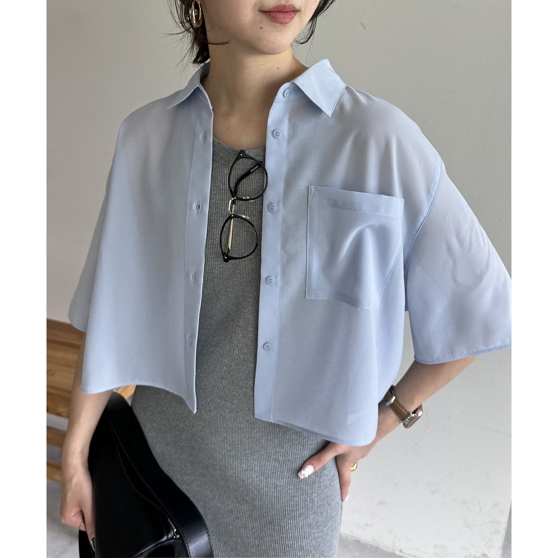 シアーバンドカラーシャツ《WEB限定カラーあり》