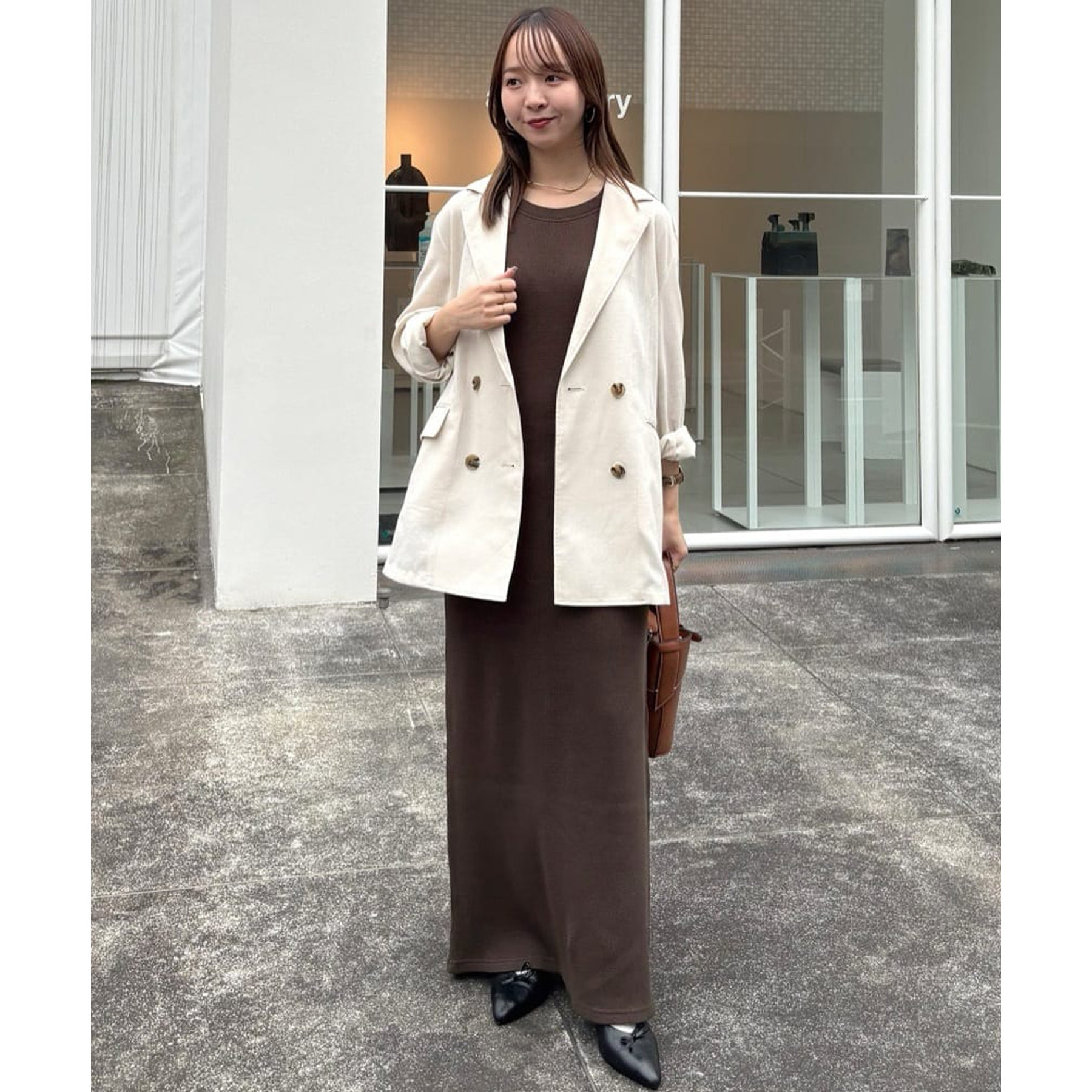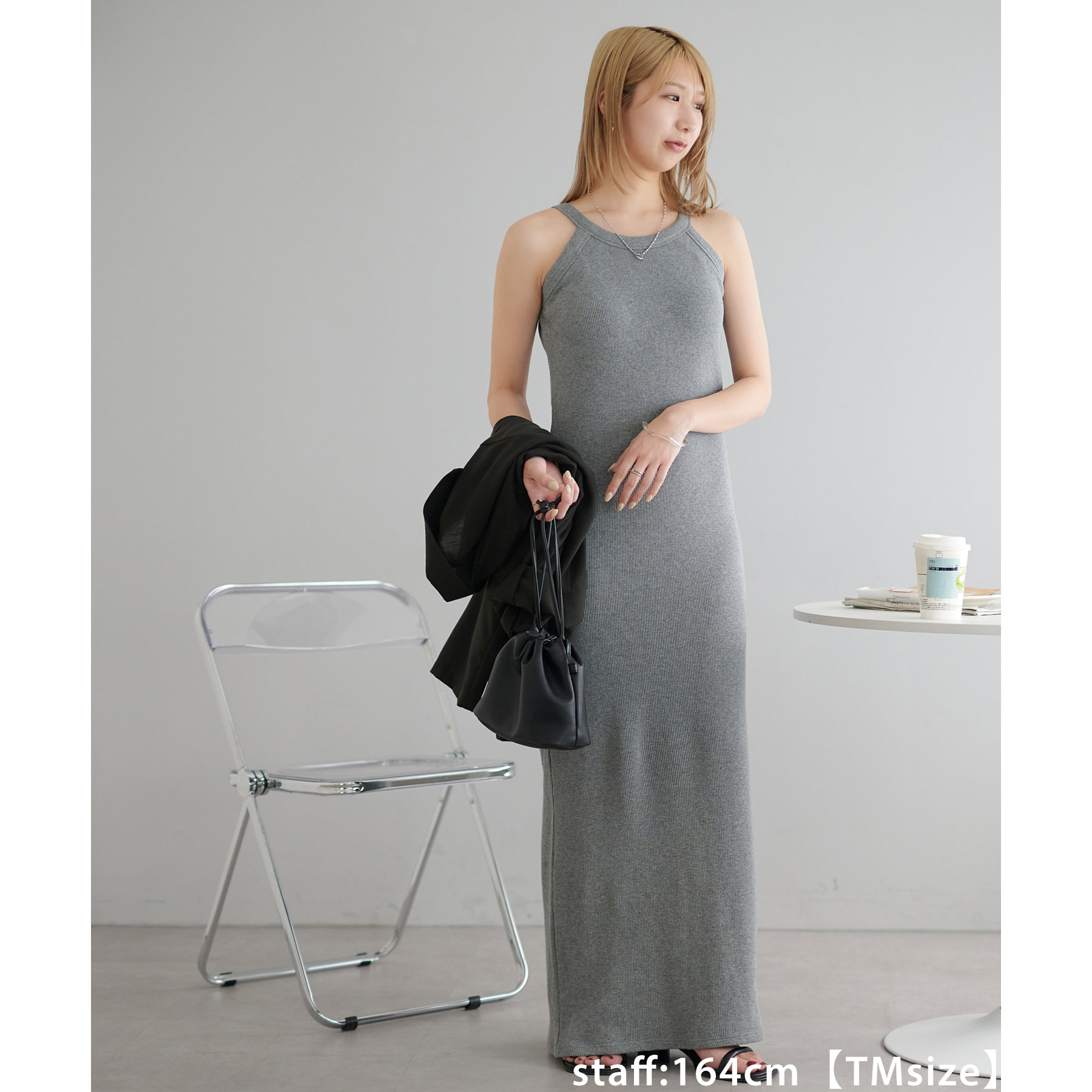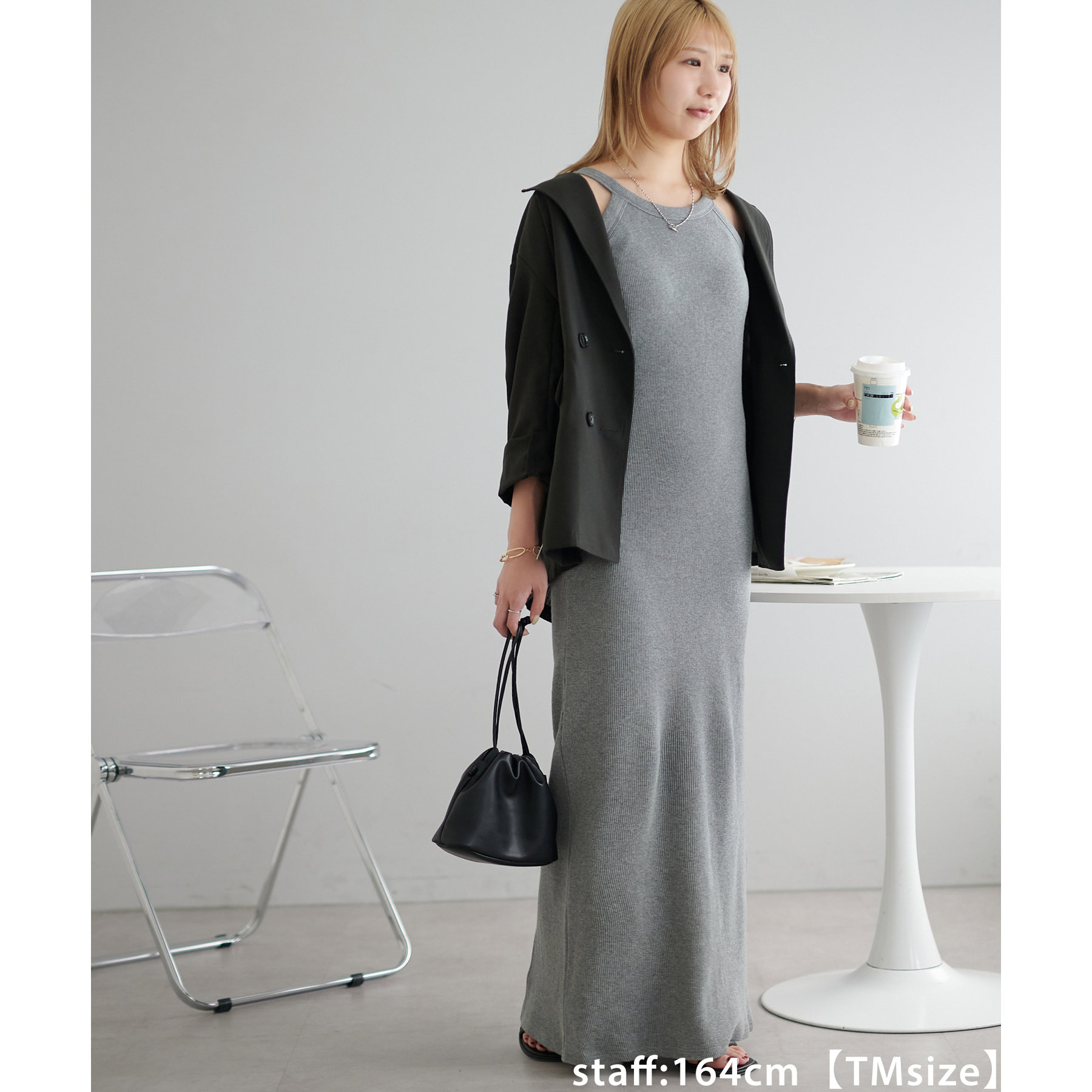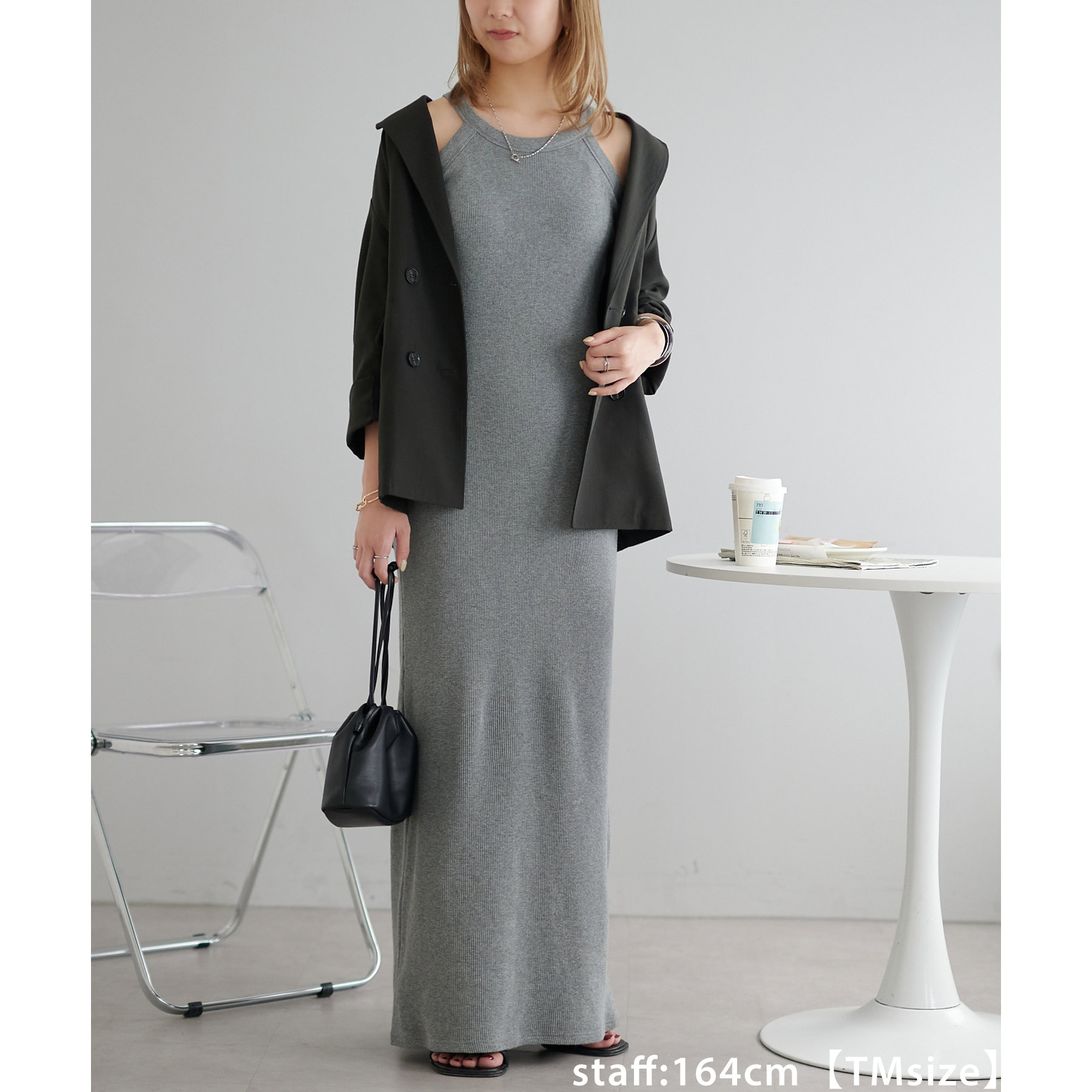 164cmスタッフ(TMサイズ着用):TMサイズは着丈が短くなく、綺麗なシルエットで着ることが出来ます!