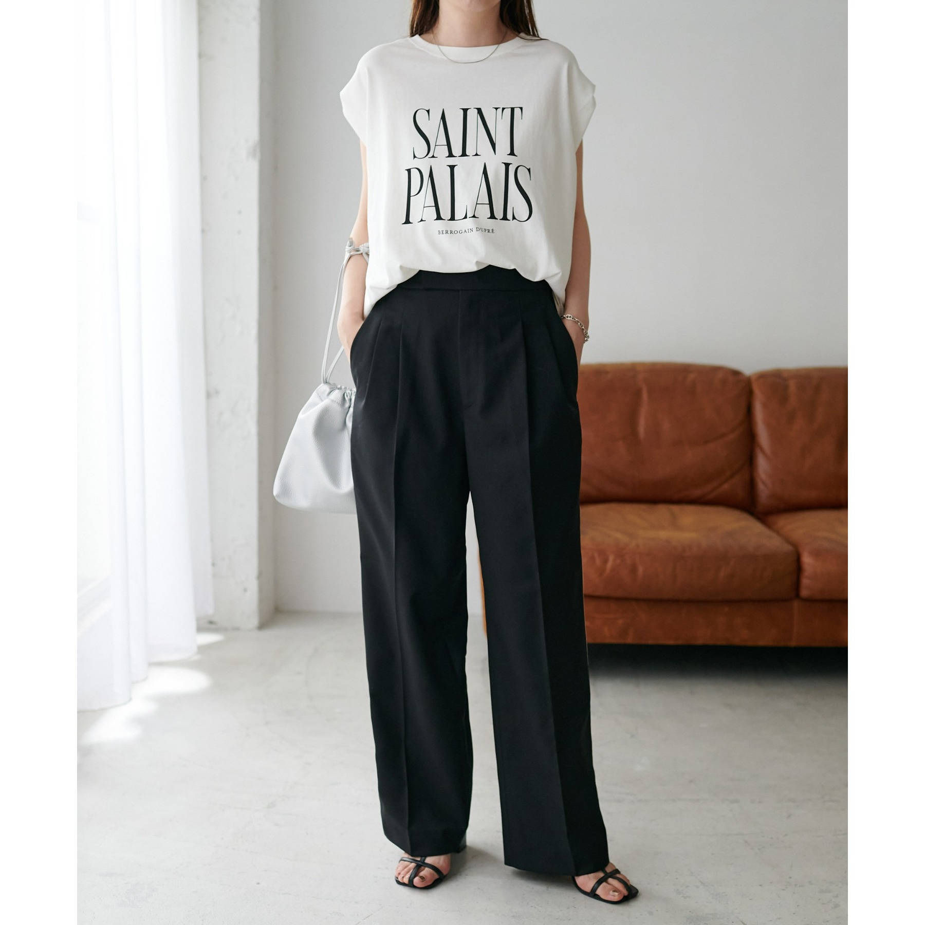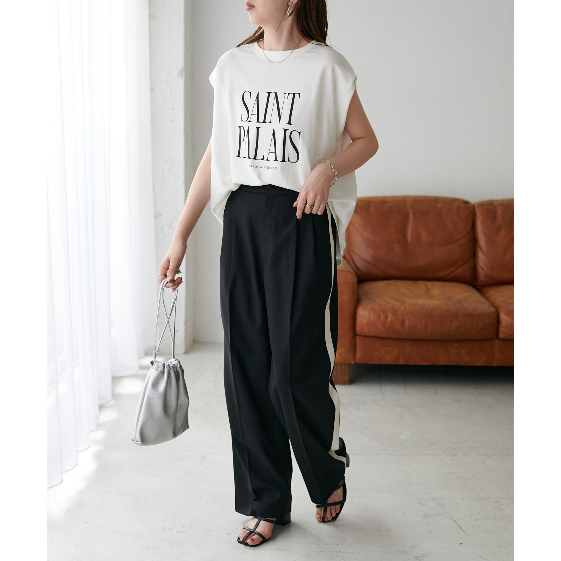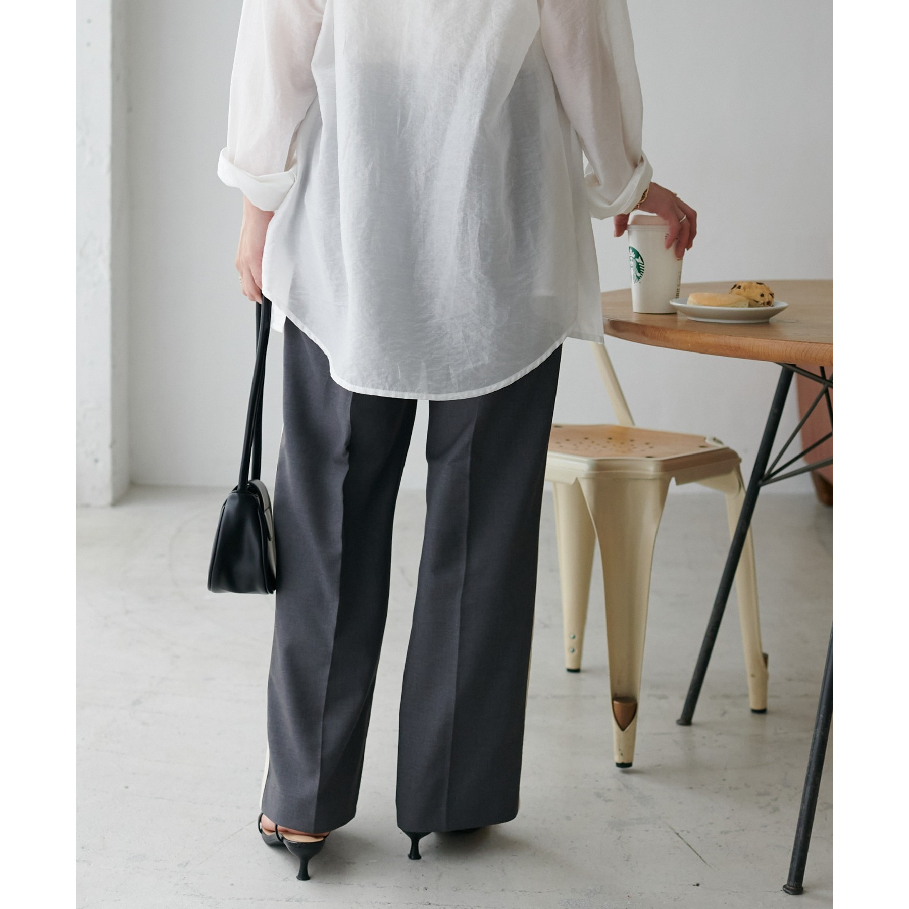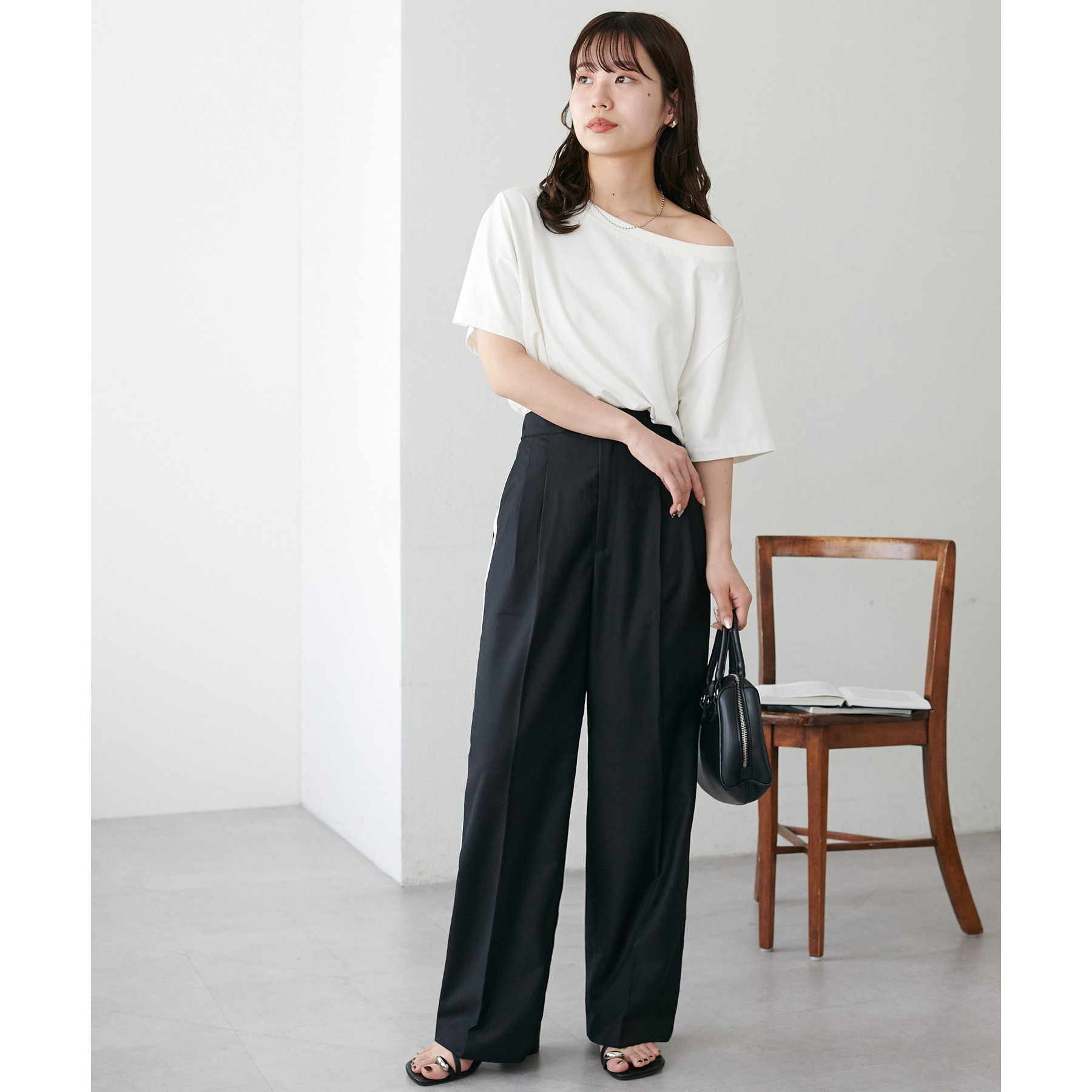 タックデザインなので、Tシャツをインしたスタイリングや、ニットやスウェットを前だけインしていただくとすっきりとした印象で着ていただけます!