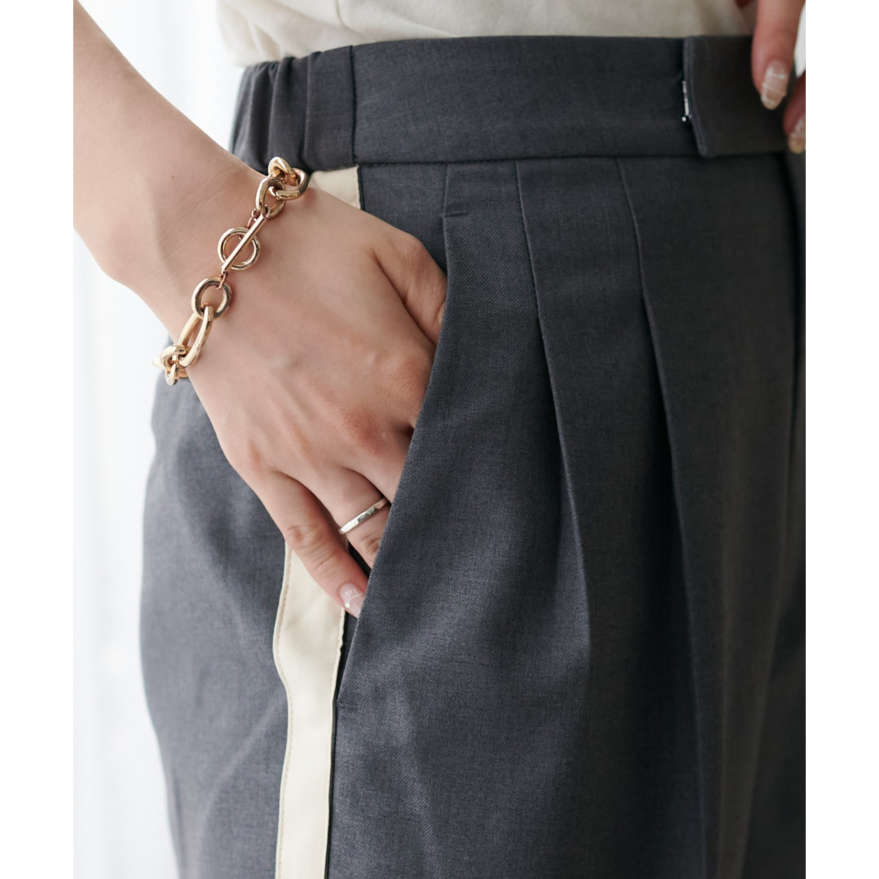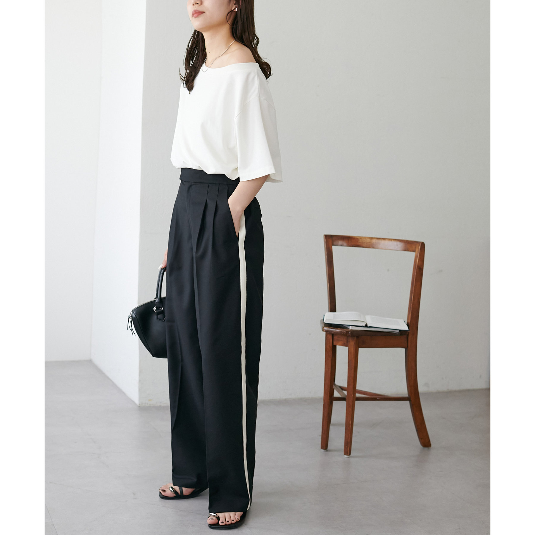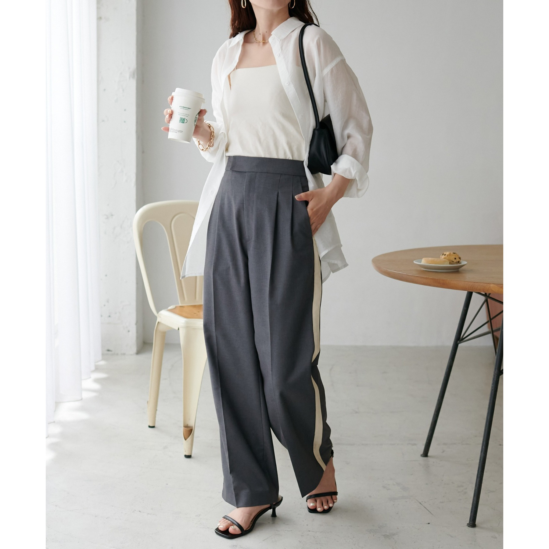 サイドラインのデザインがすっきりとした印象とコーデにアクセントをプラスしてくれるパンツです!