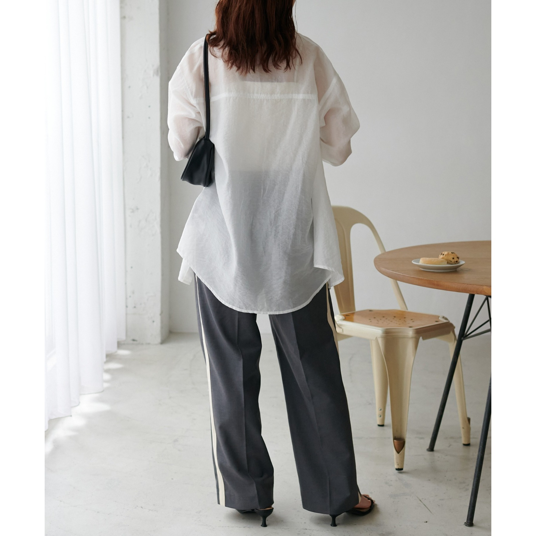 サイドラインのデザインがメリハリを出してくれるので、低身長が着てもスッキリとした印象もプラスしてくれます◎