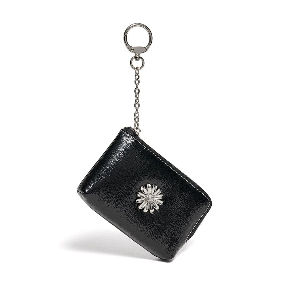 Daisy Keyring Coin Zipper Card Wallet Pouch Black