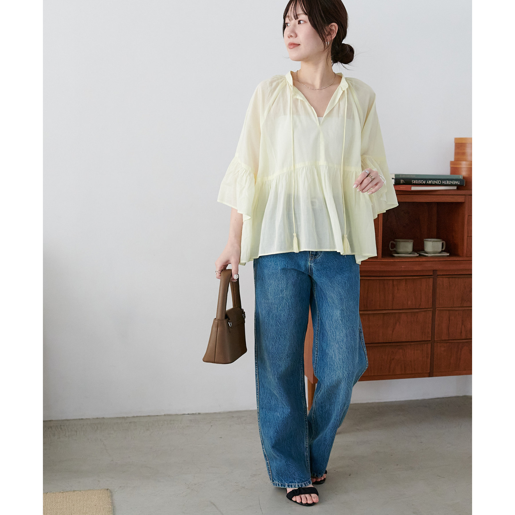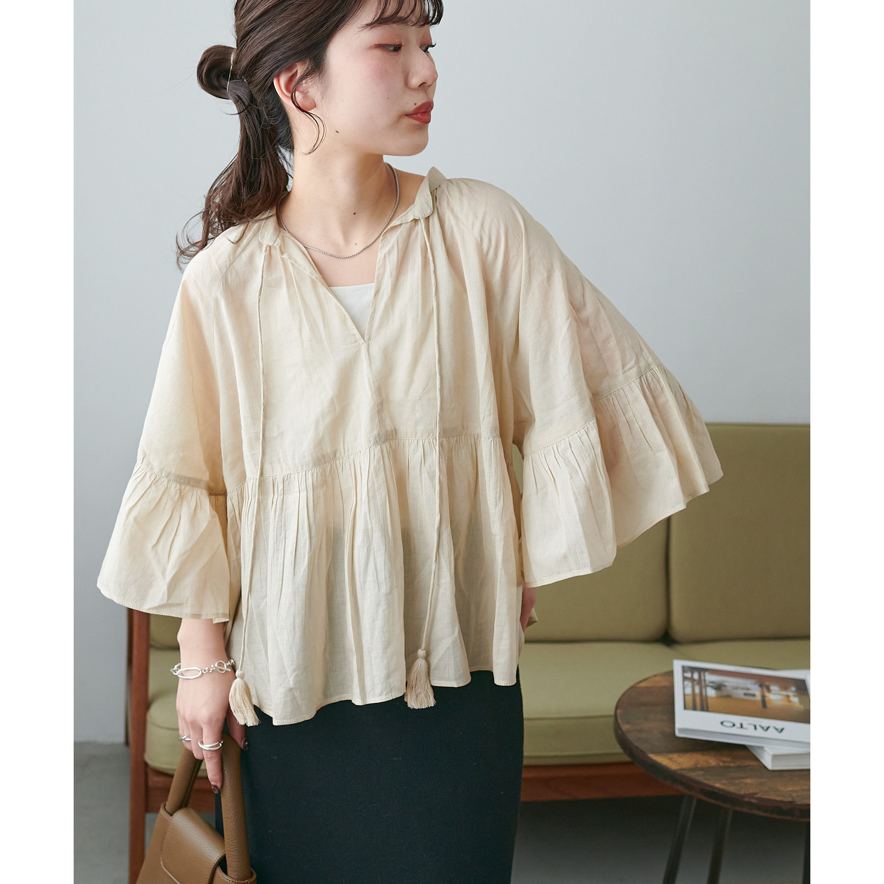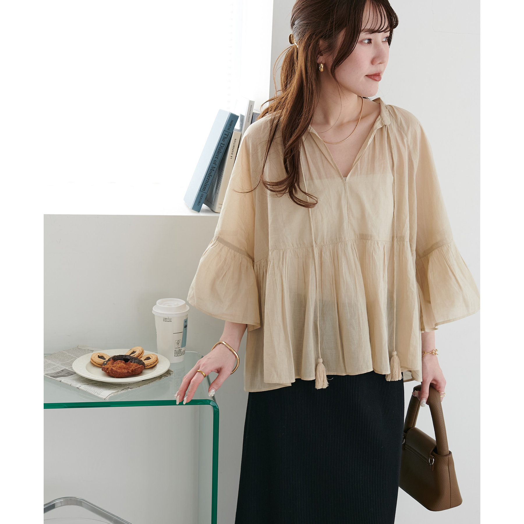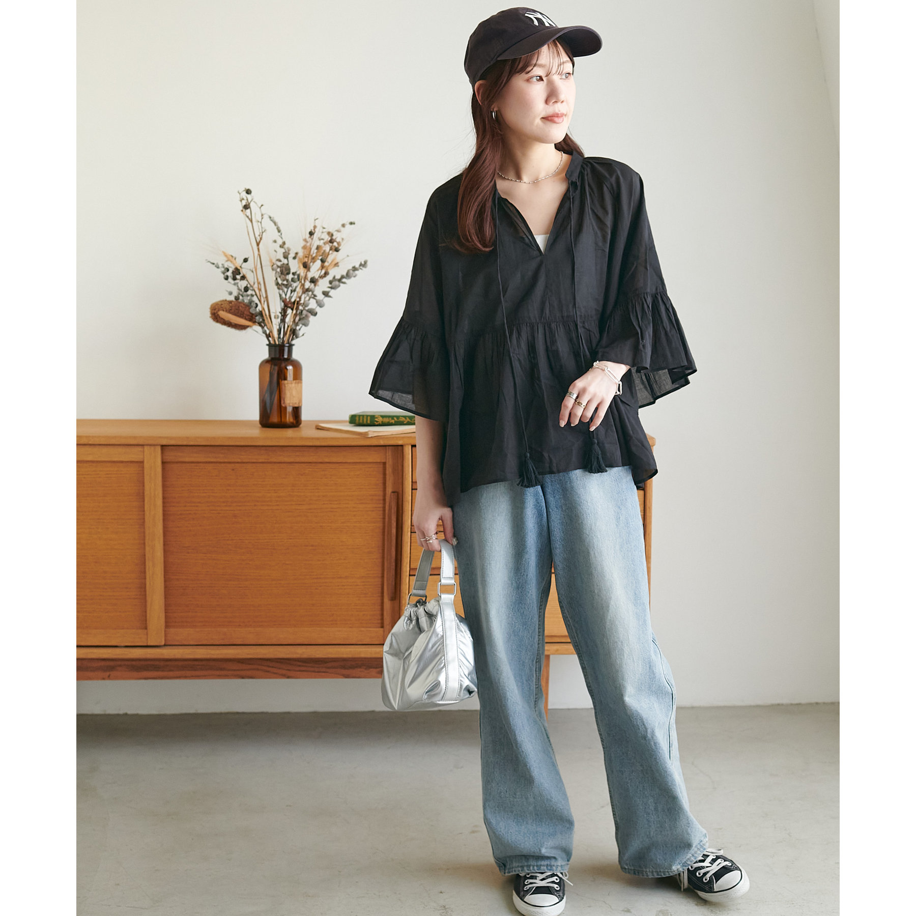 動くたびに揺れ感のあるデザインは軽やかな印象になり、春のトップスにぴったり◎