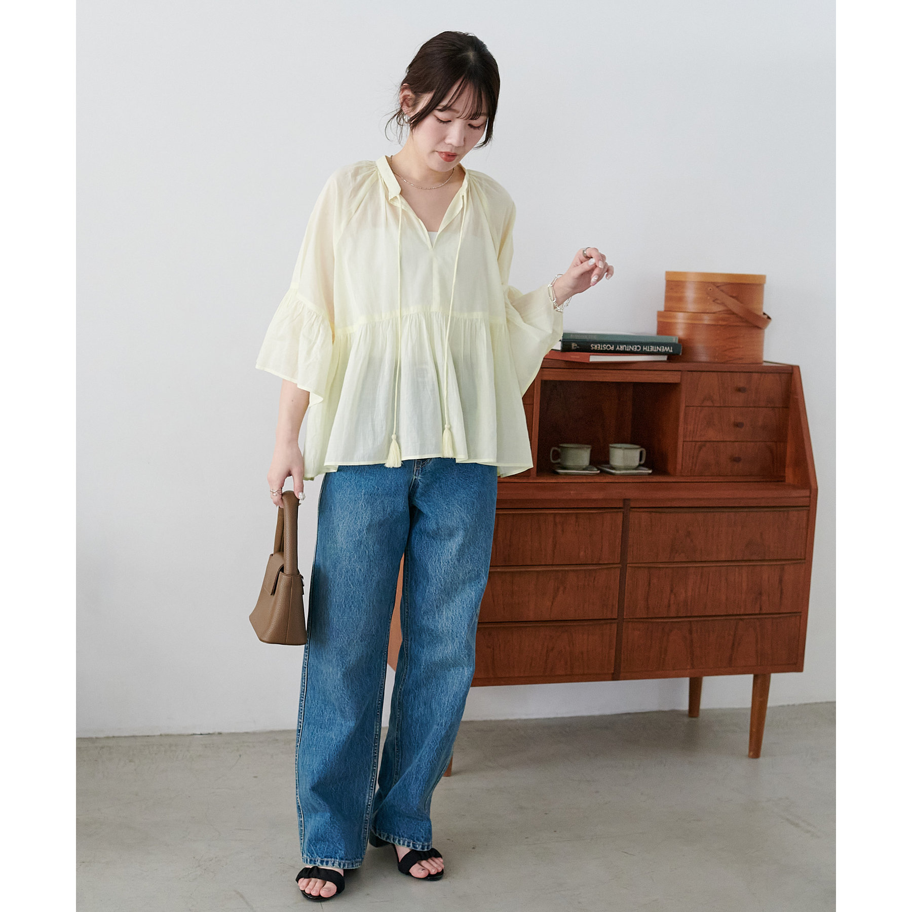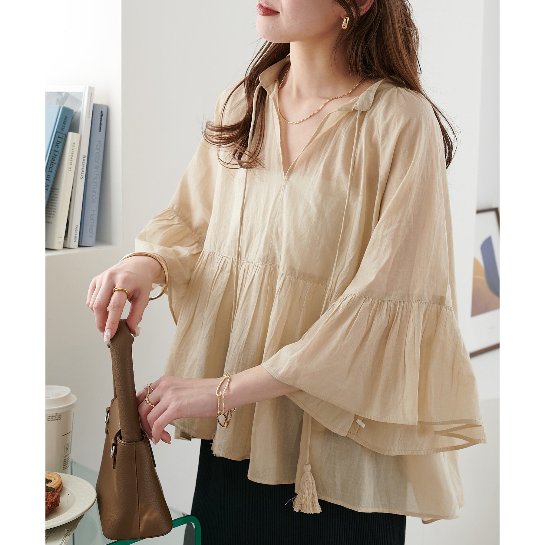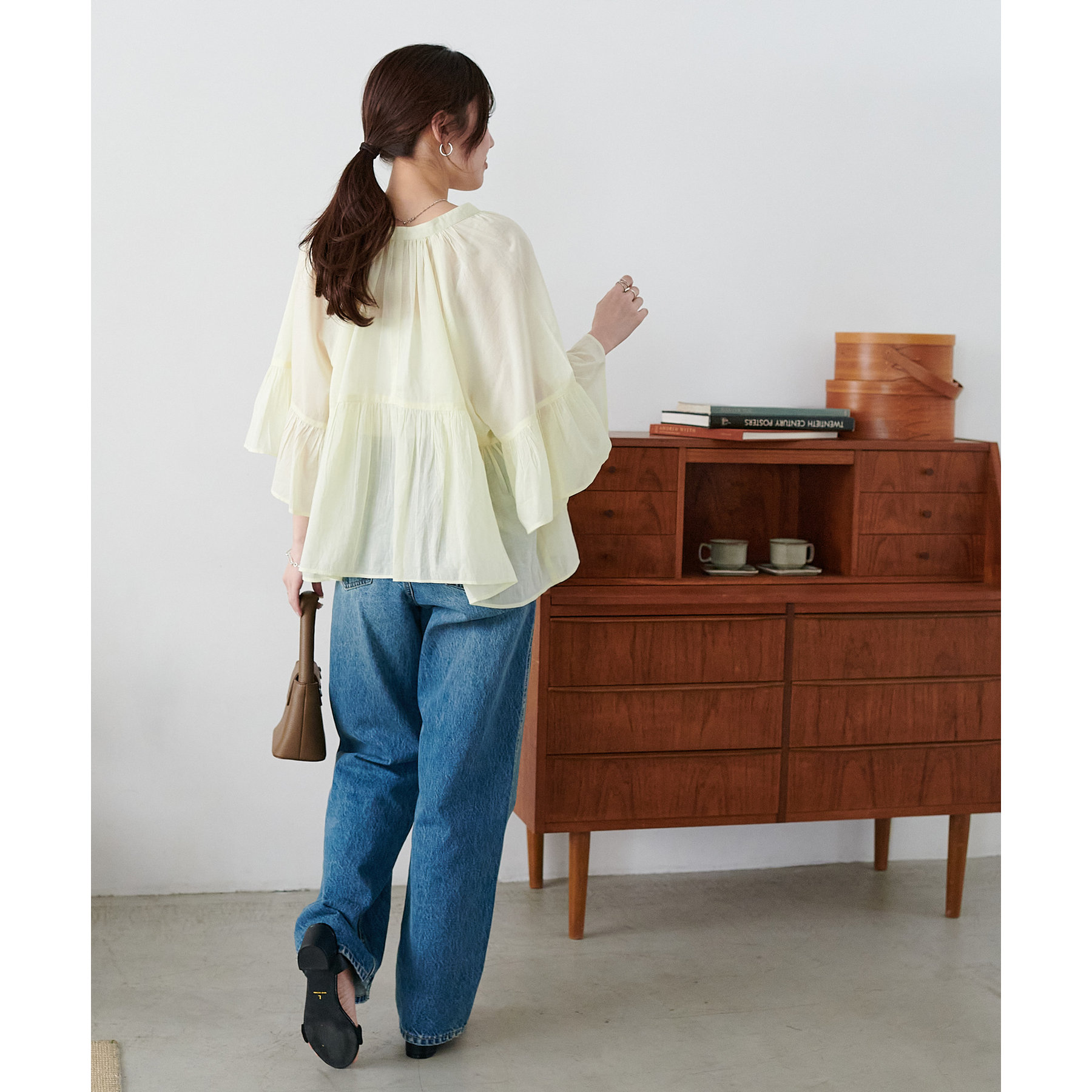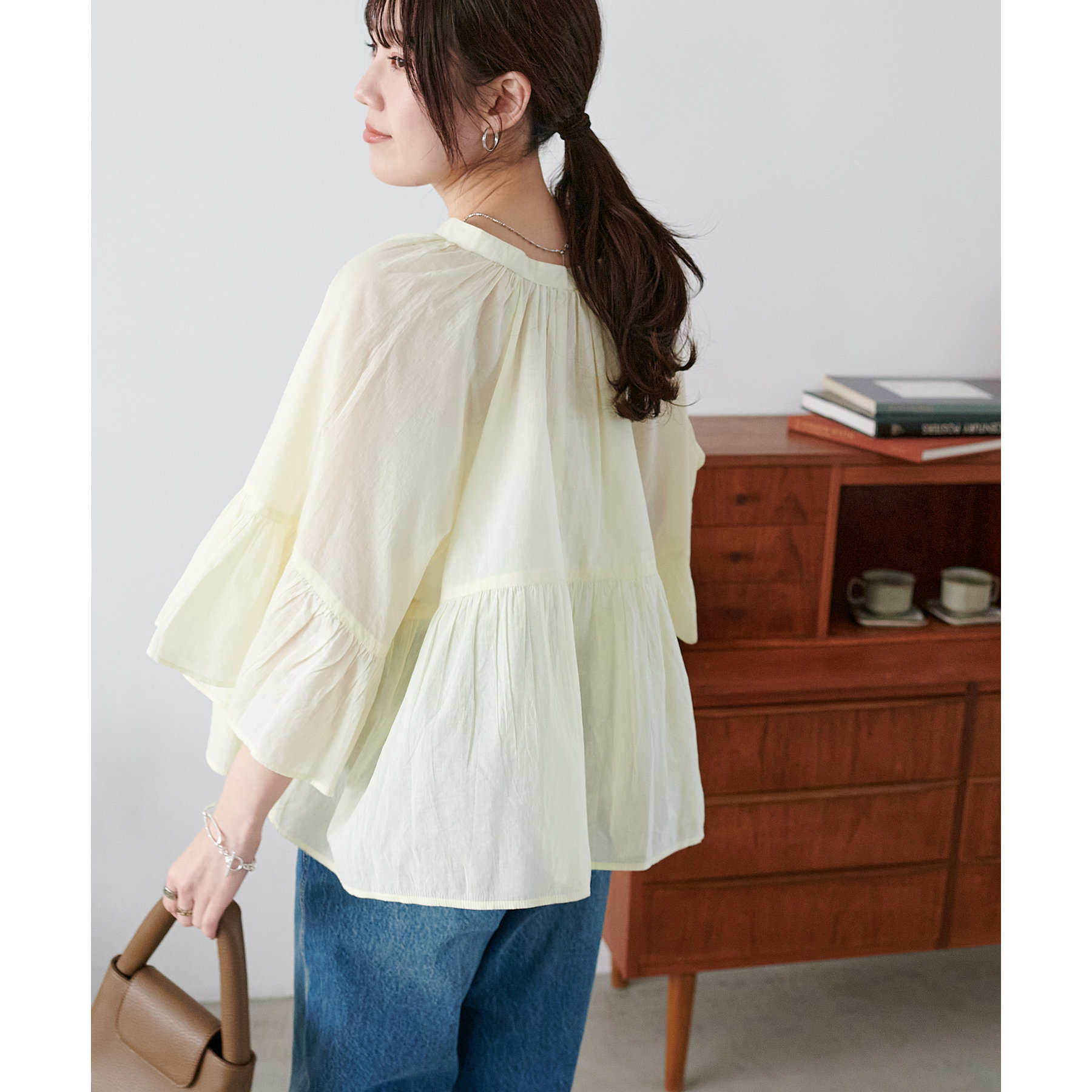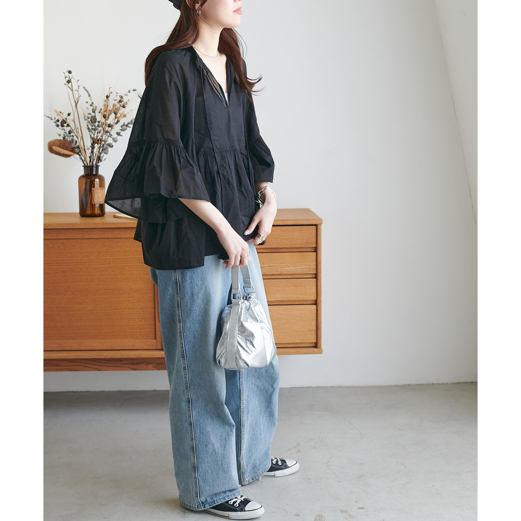 動くたびに揺れ感のあるデザインは軽やかな印象になり、春のトップスにぴったり◎