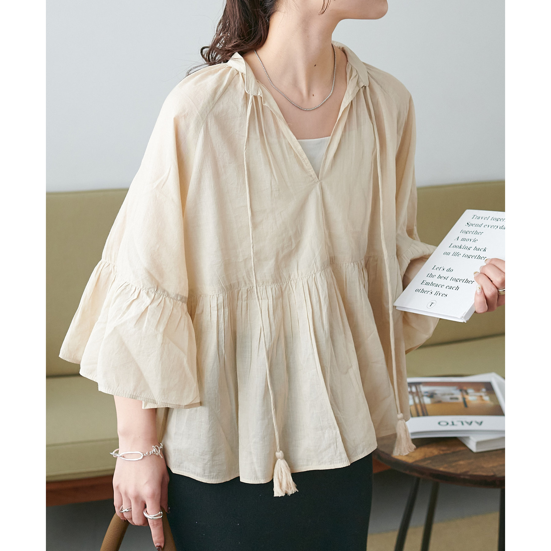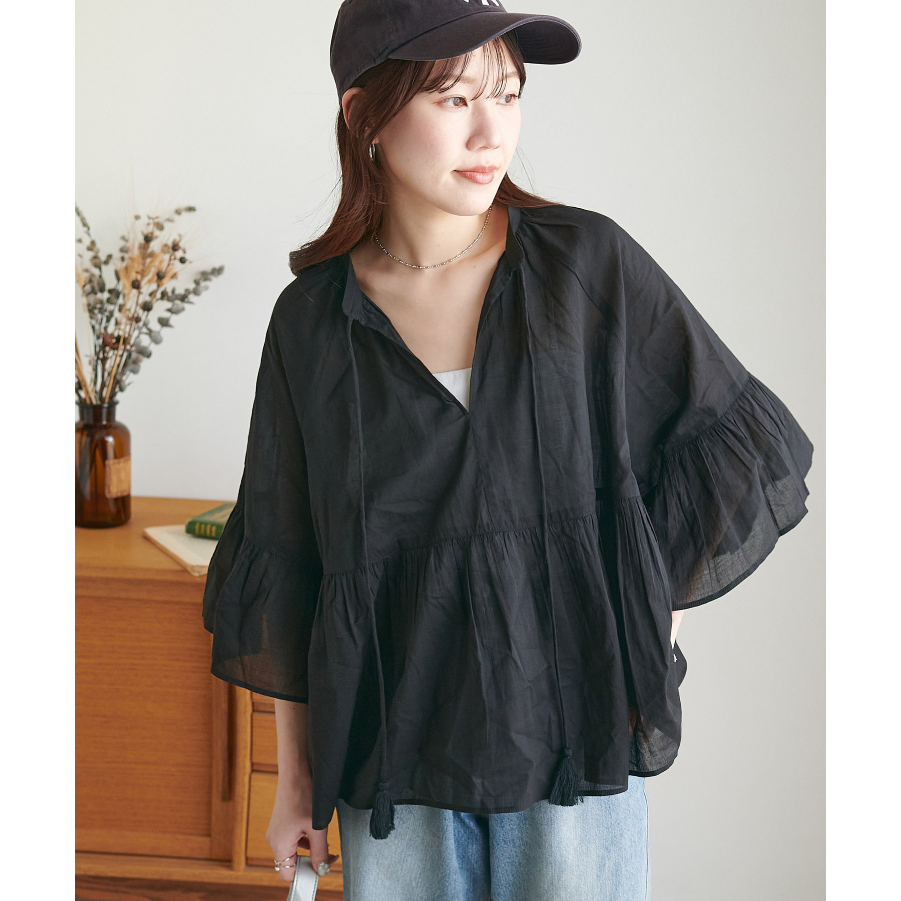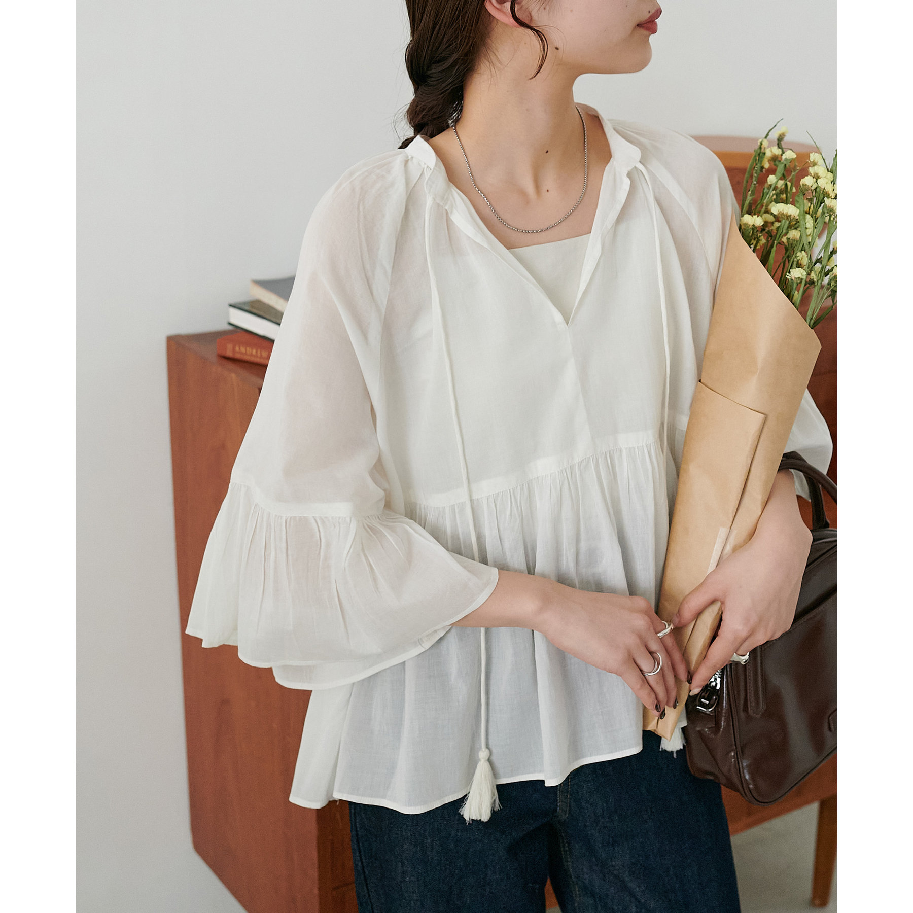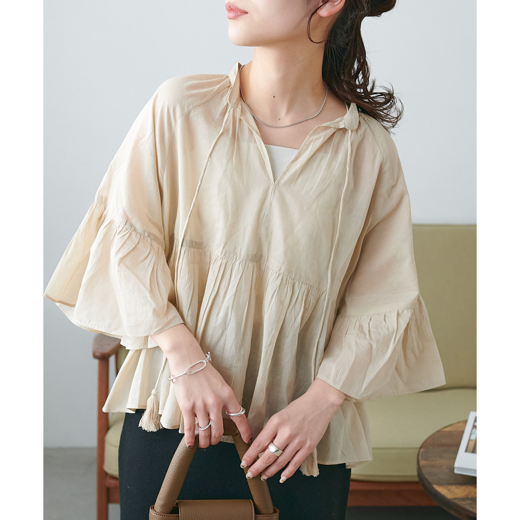 動くたびに揺れ感のあるデザインは軽やかな印象になり、春のトップスにぴったり◎