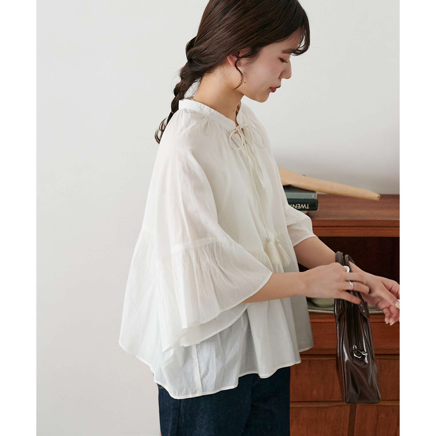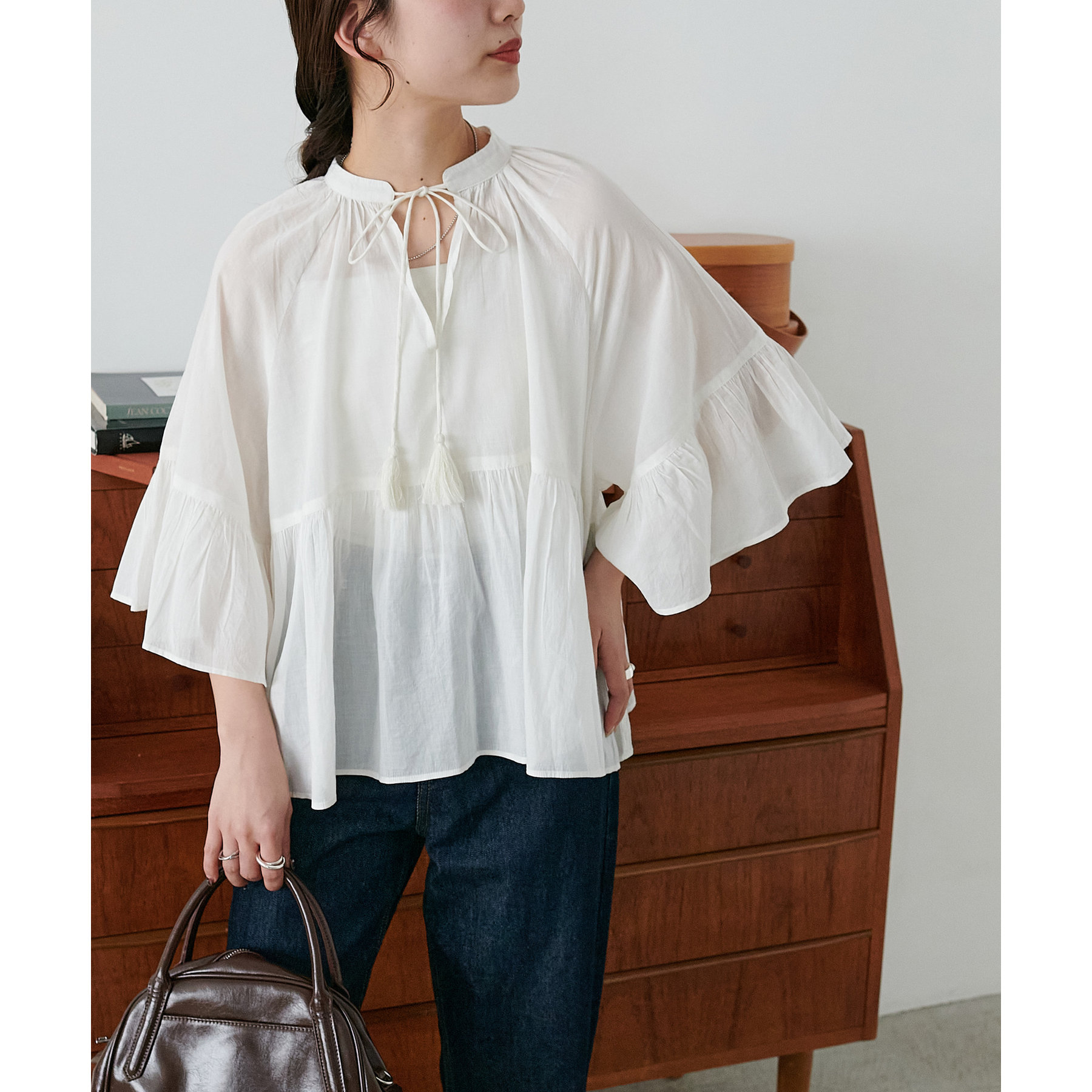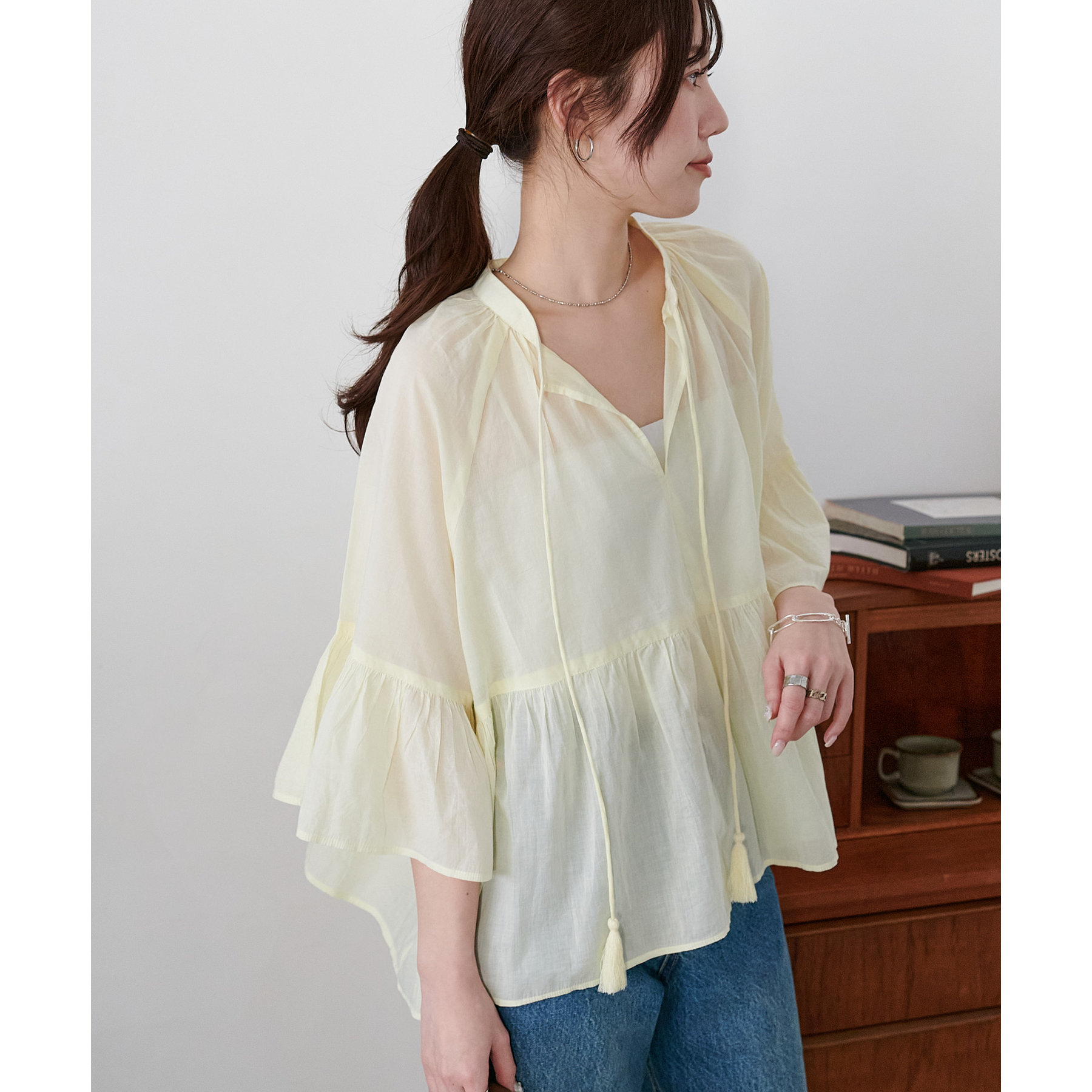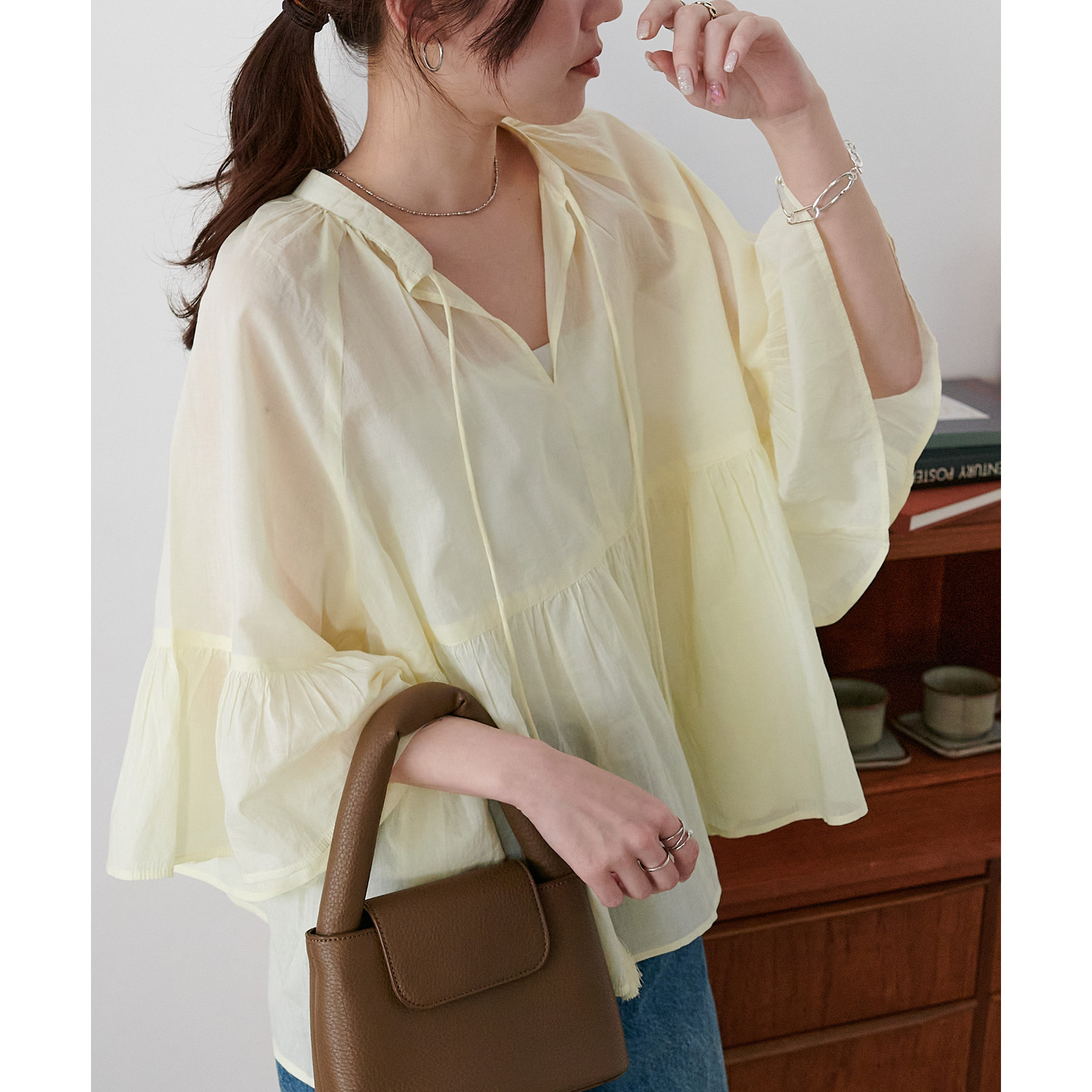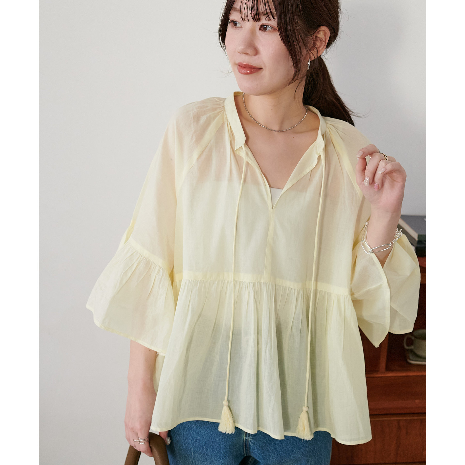 動くたびに揺れ感のあるデザインは軽やかな印象になり、春のトップスにぴったり◎