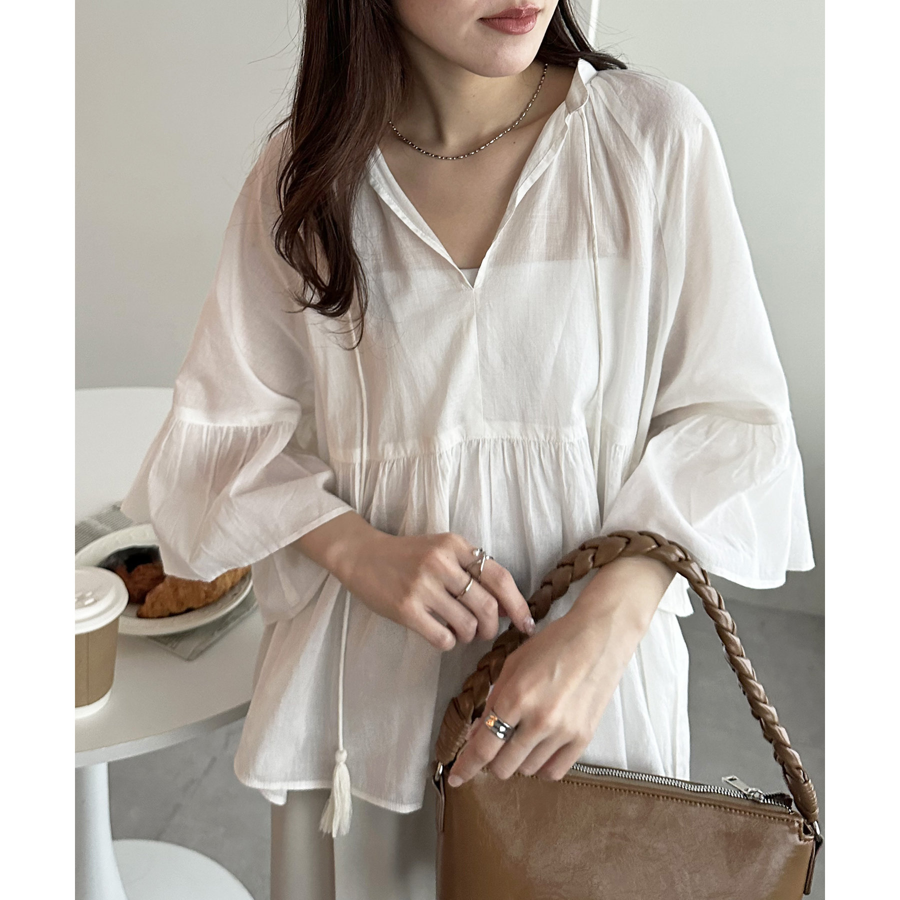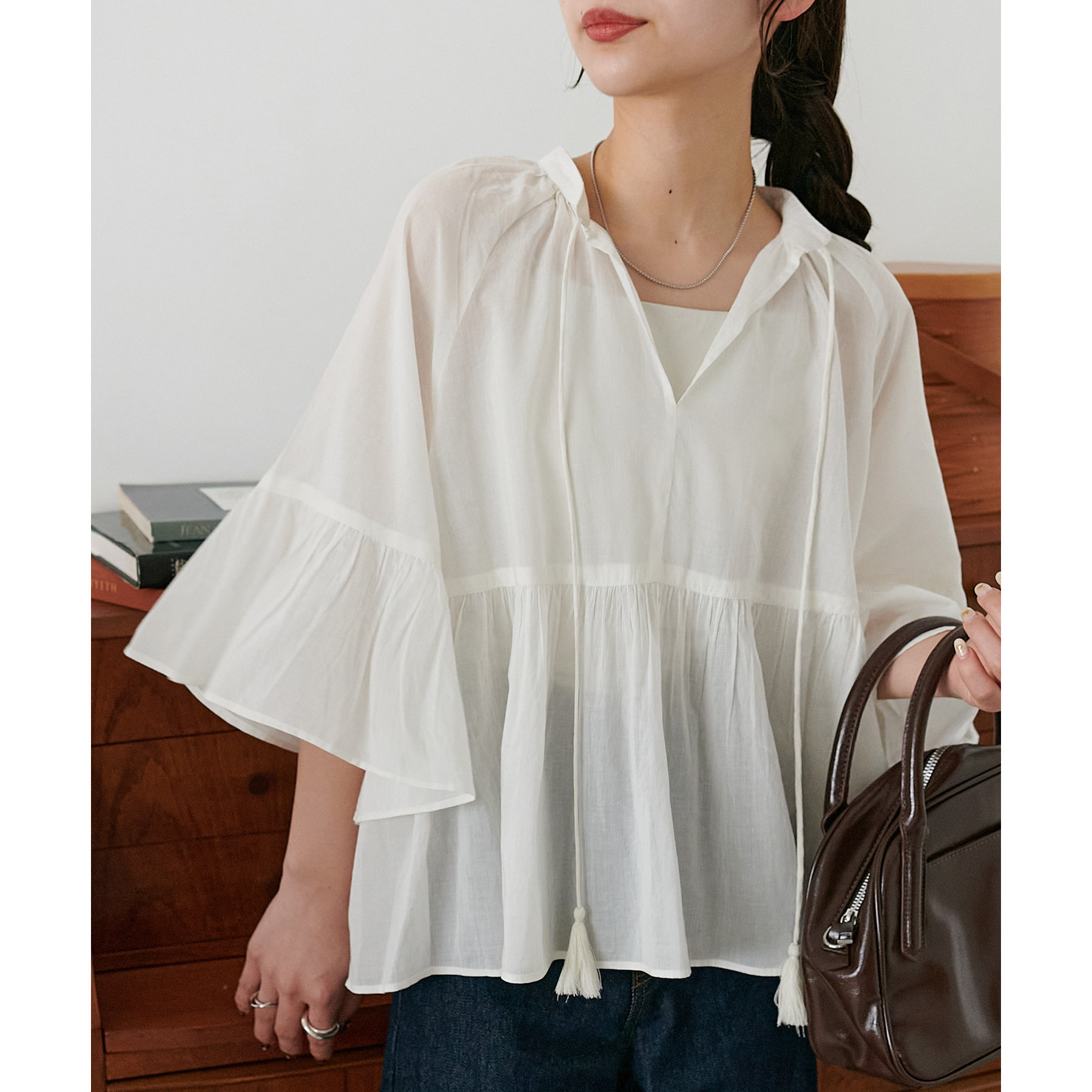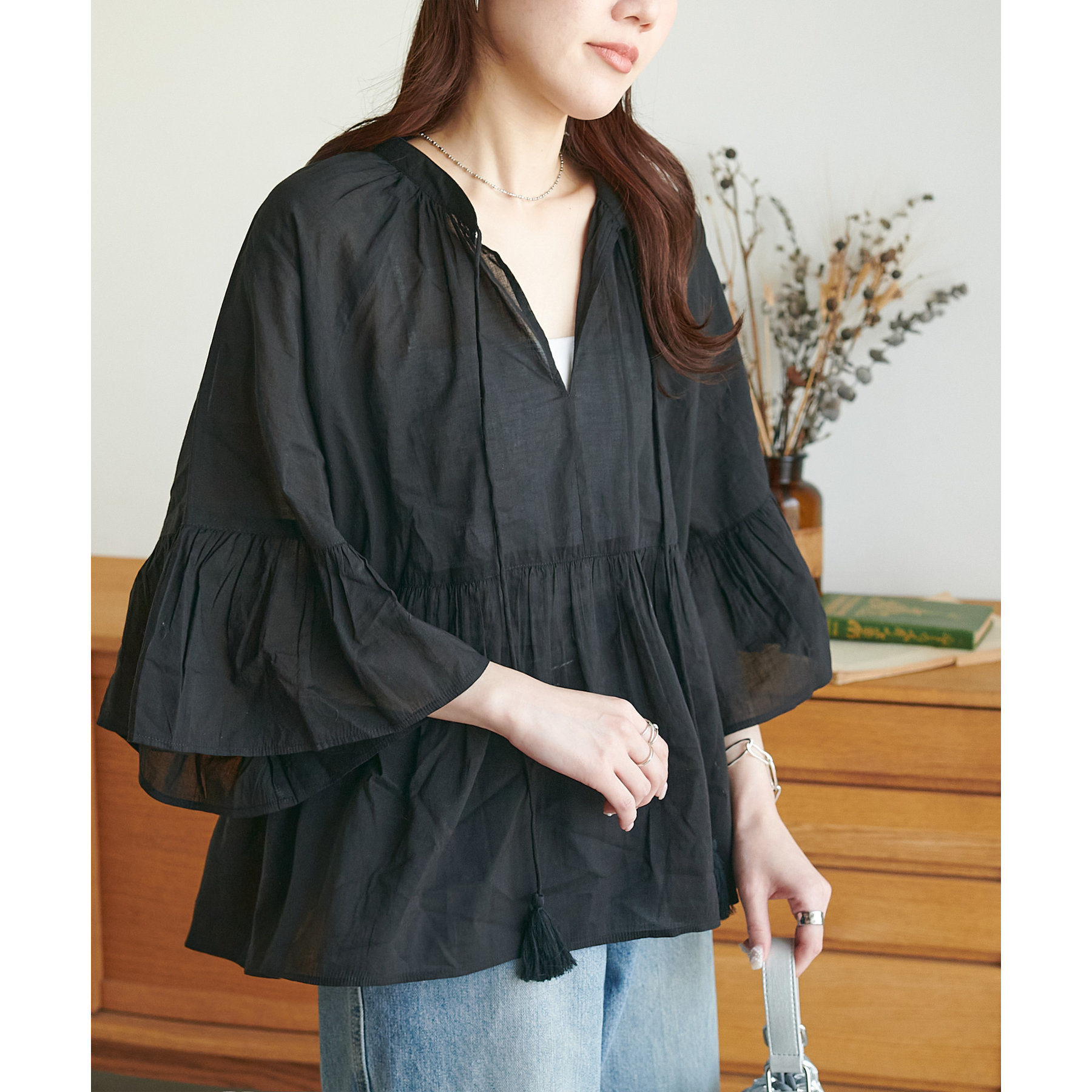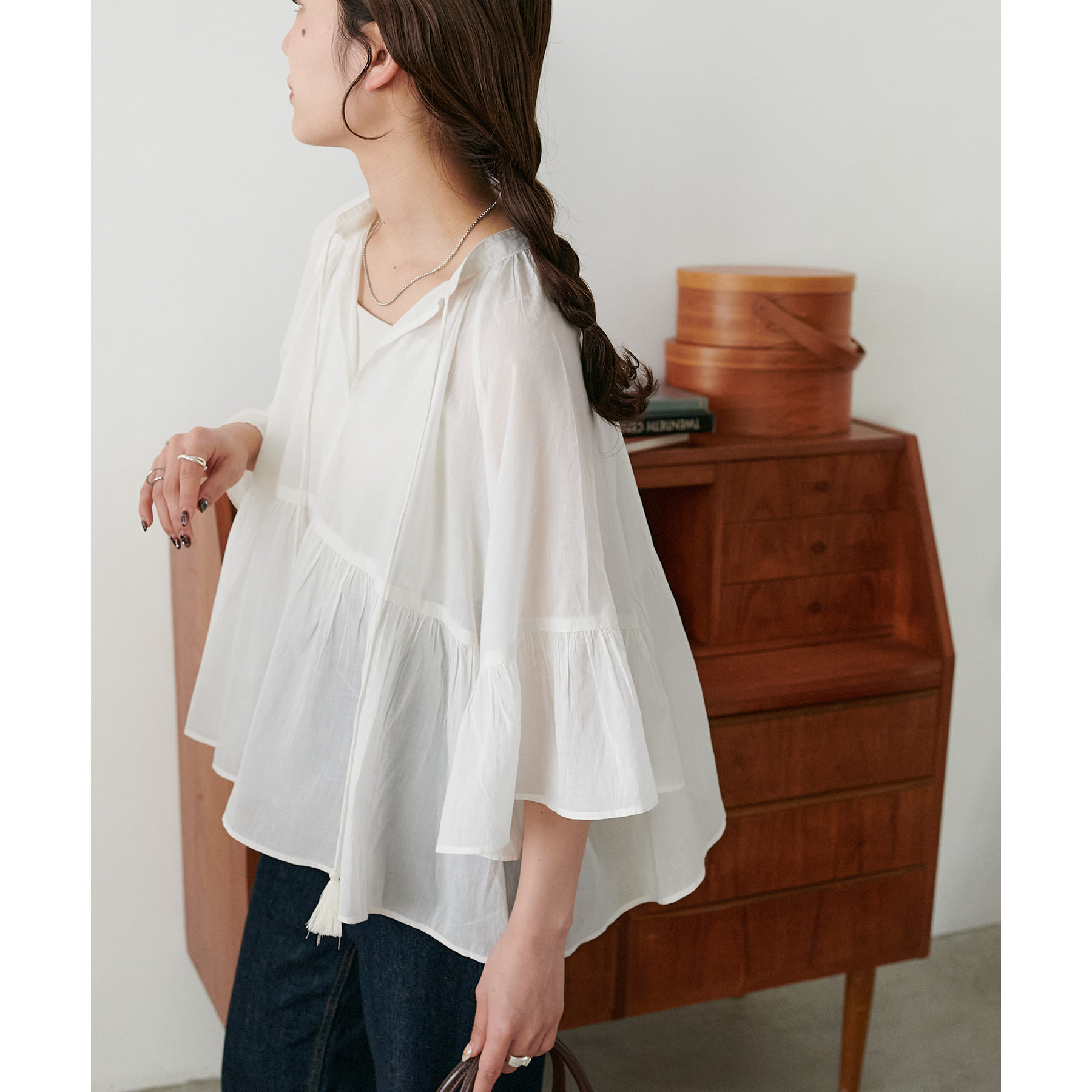 動くたびに揺れ感のあるデザインは軽やかな印象になり、春のトップスにぴったり◎