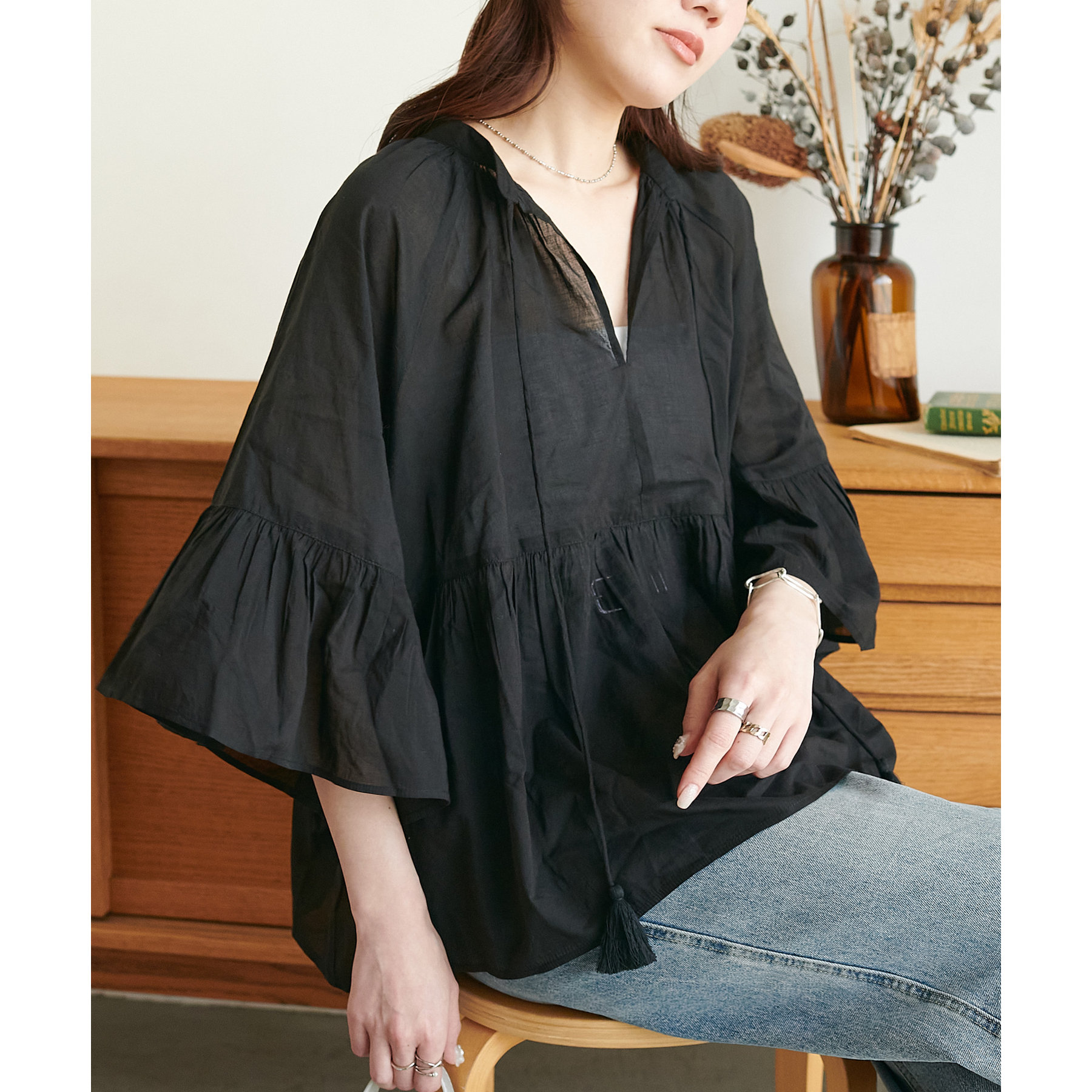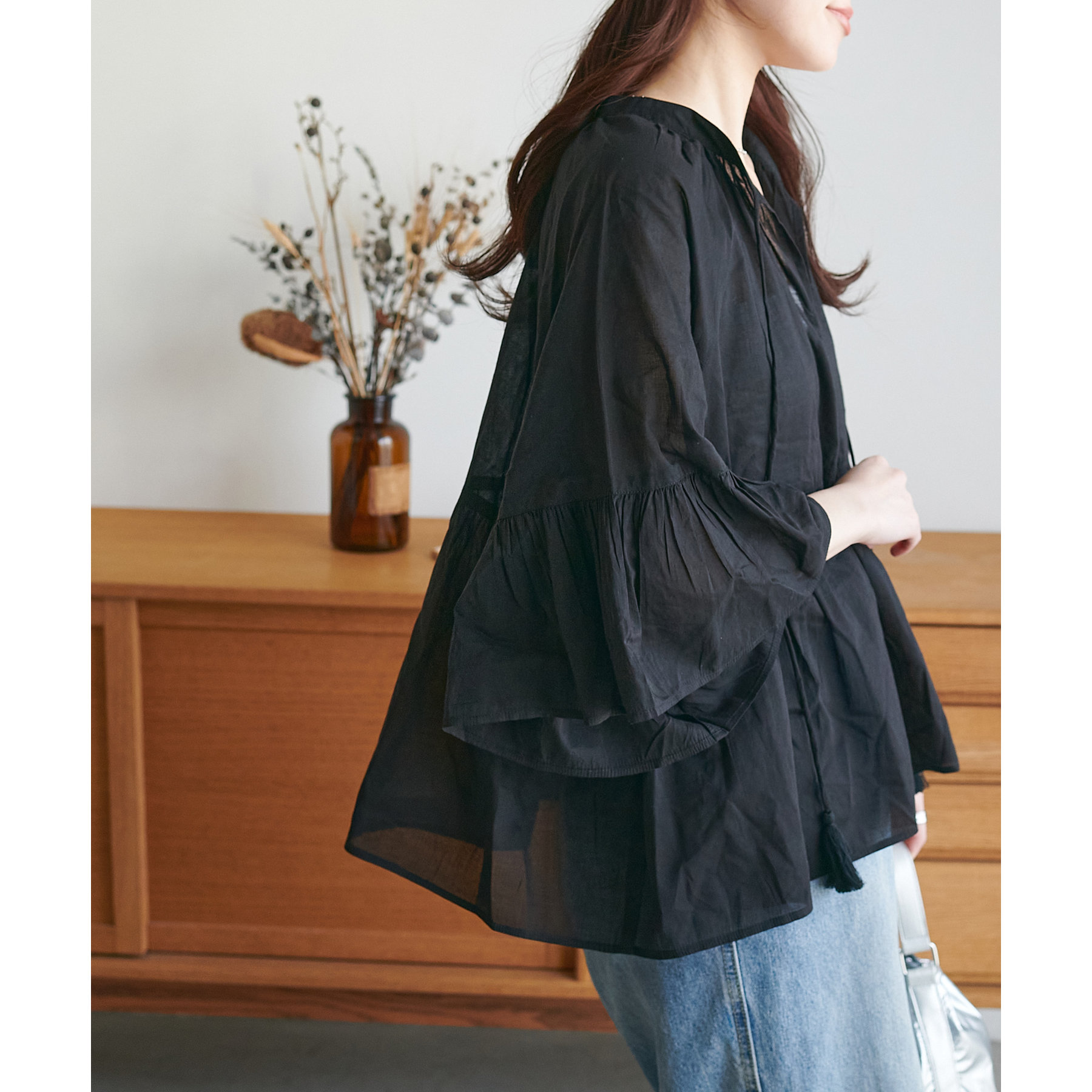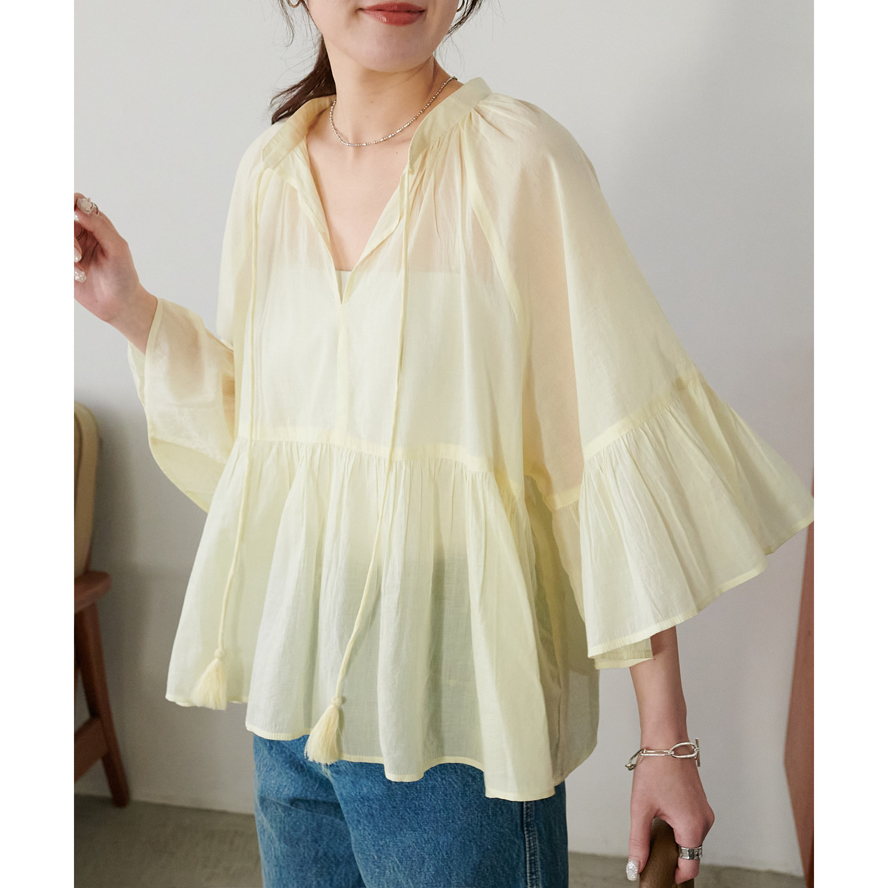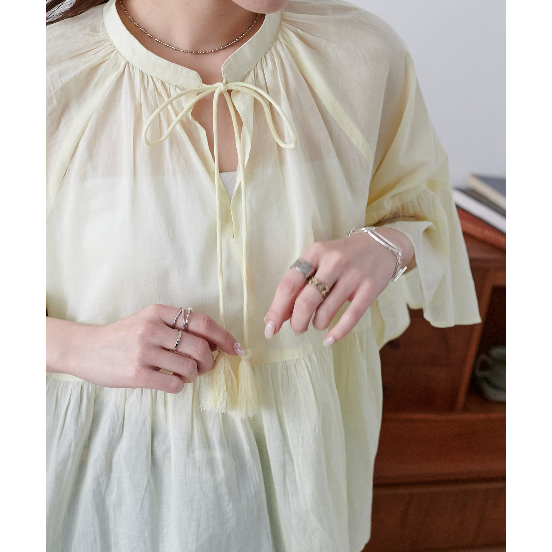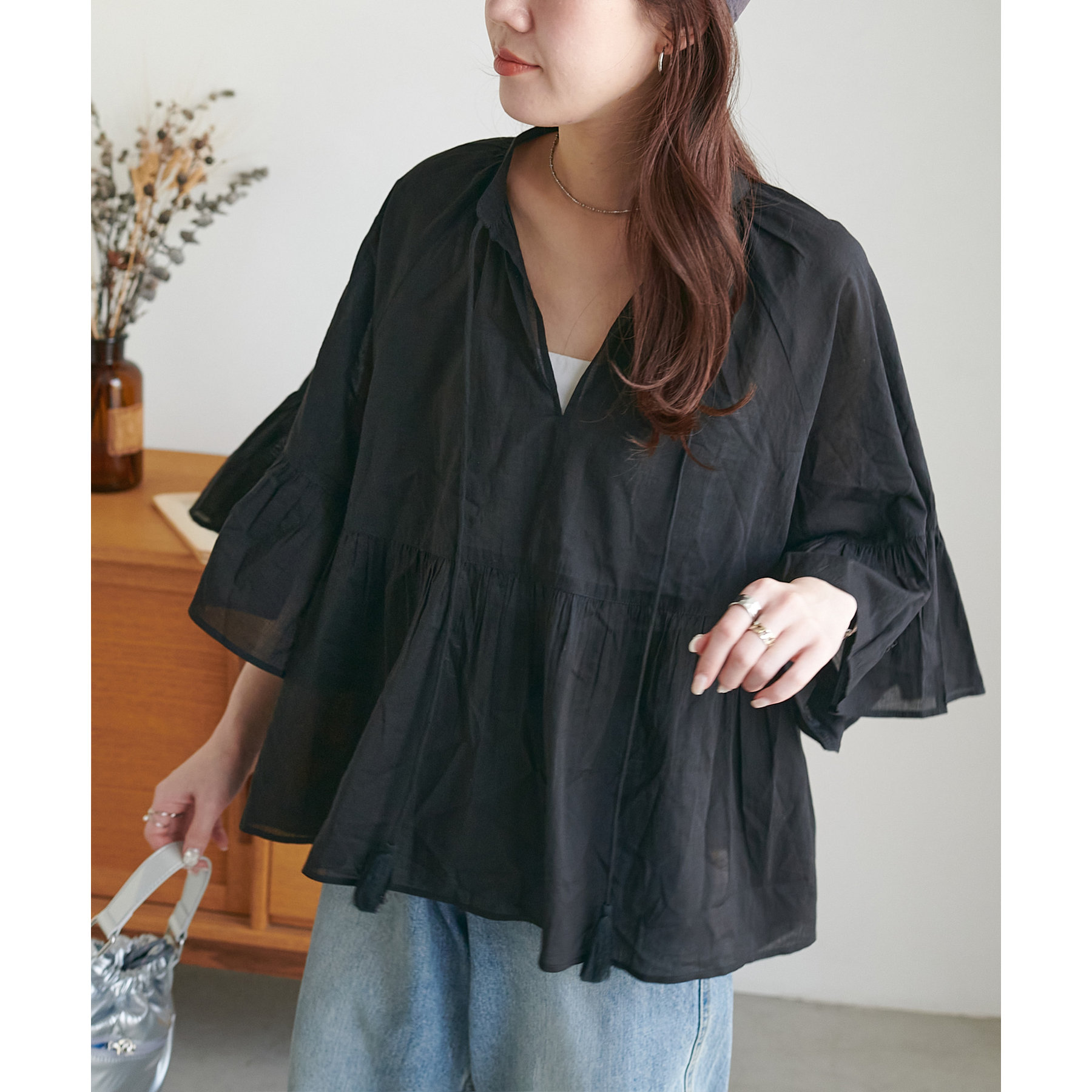 動くたびに揺れ感のあるデザインは軽やかな印象になり、春のトップスにぴったり◎