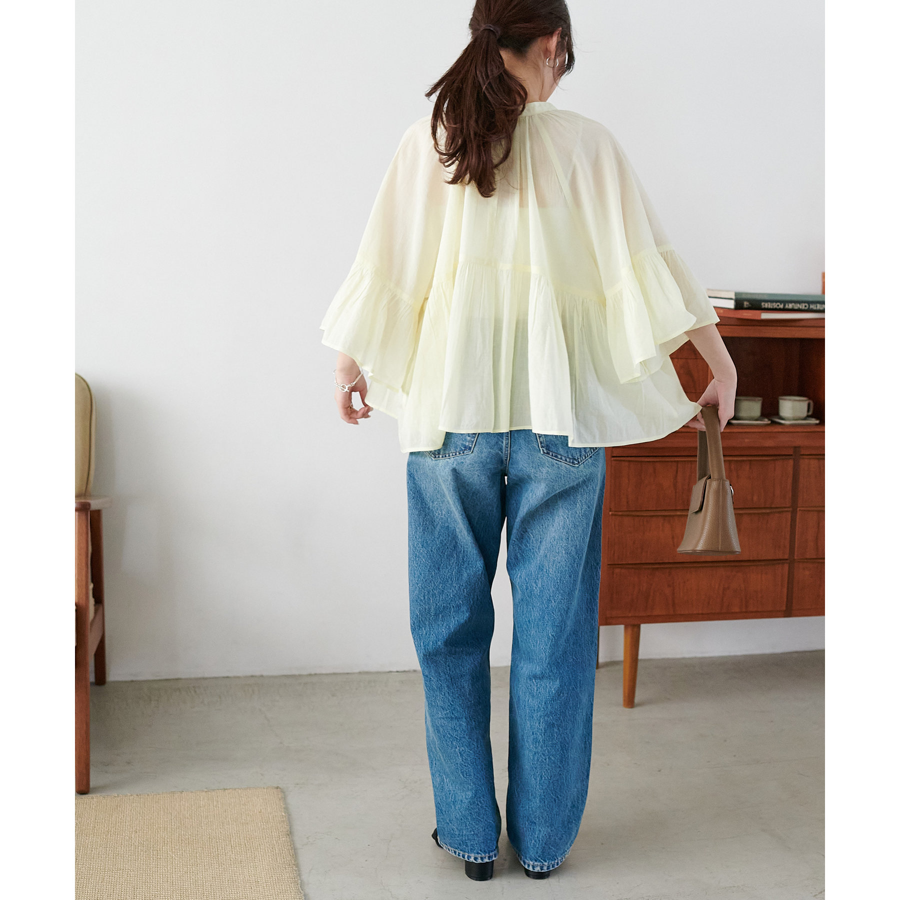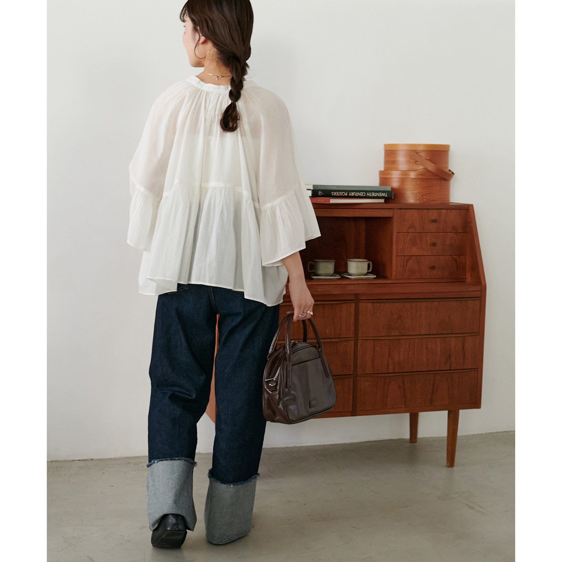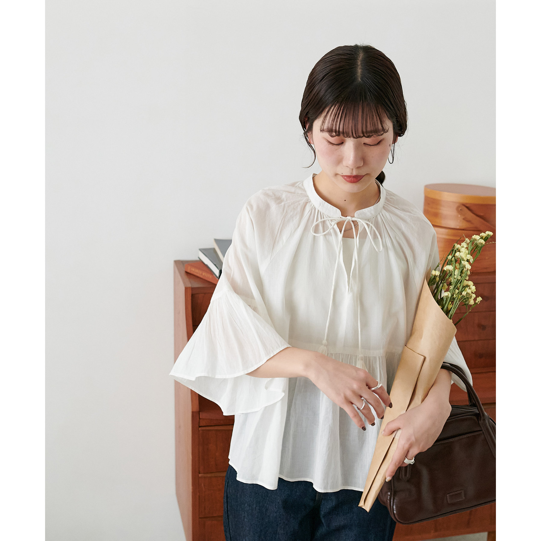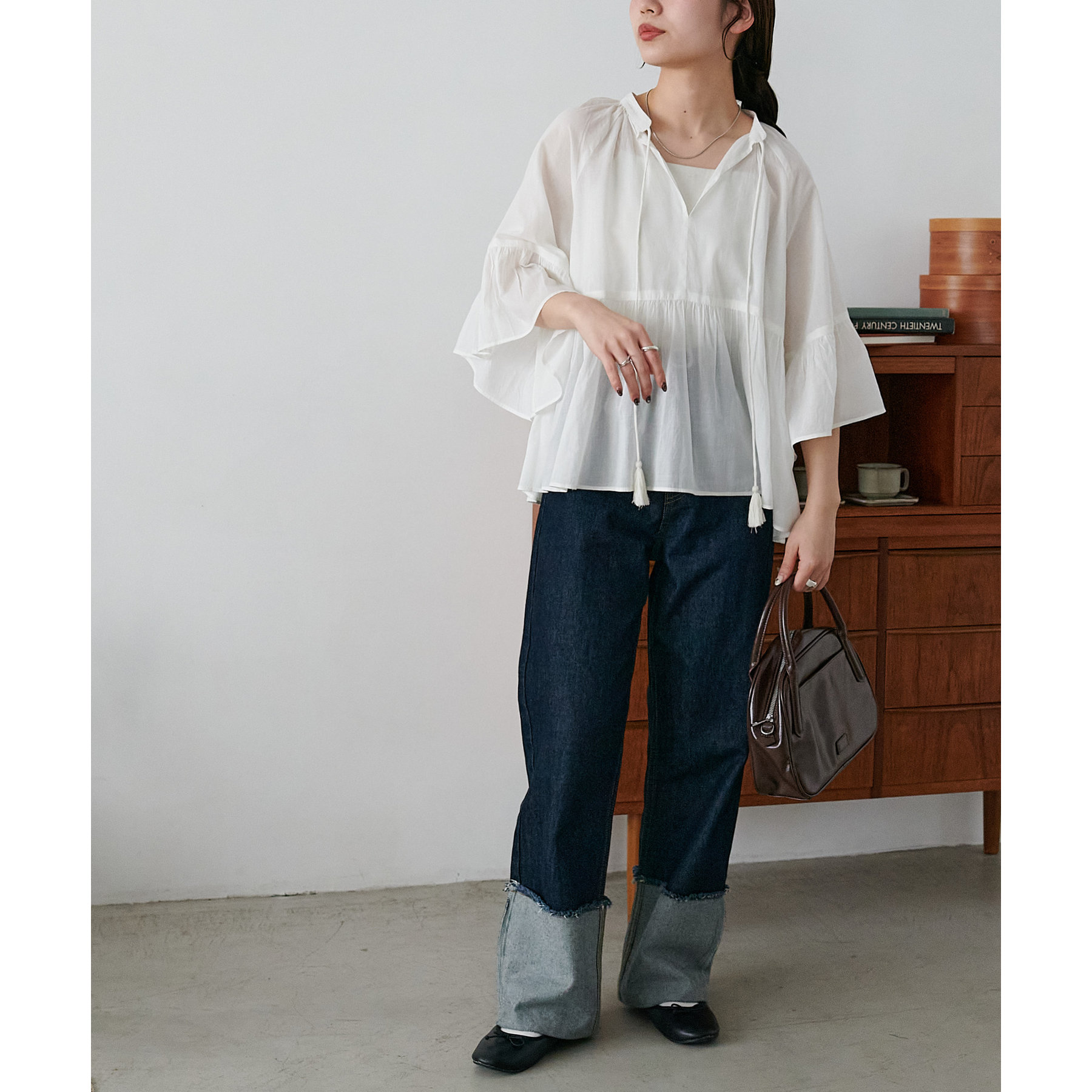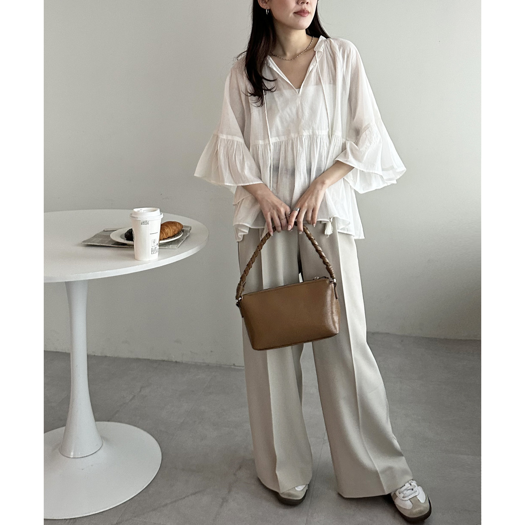 一枚で着てもサマになるブラウスですが、シンプルなデザインだからこそ、様々なボトムスとの組み合わせも楽しめます。