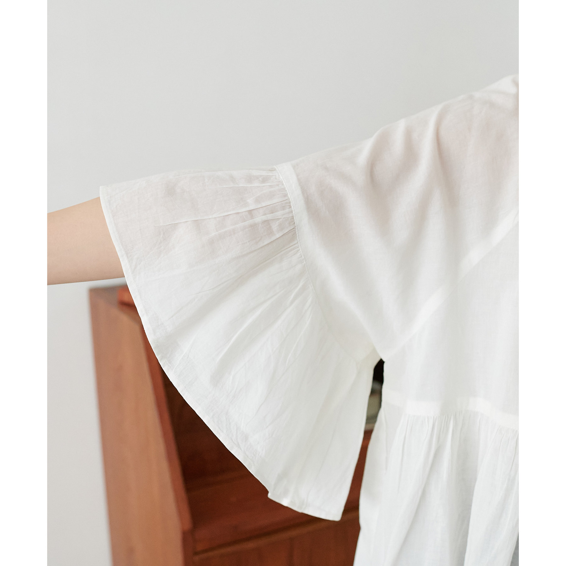 袖をフレアにしたことで、二の腕周りをさりげなくカバーしてくれるのもポイント!