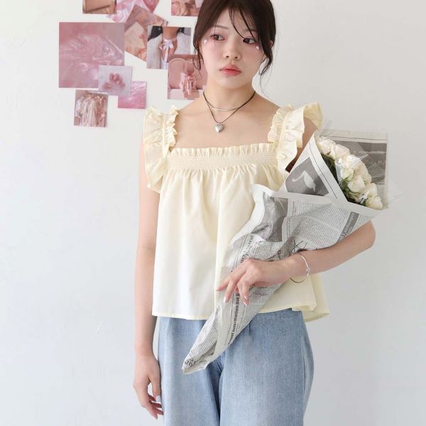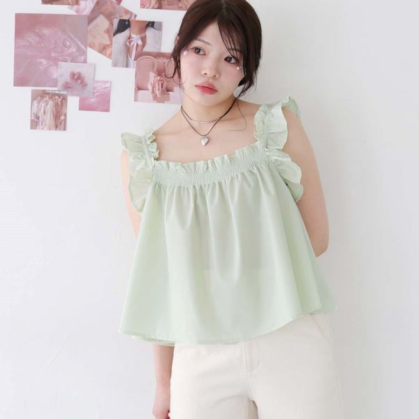 シャーリングギャザーキャミブラウス(980-31501)
