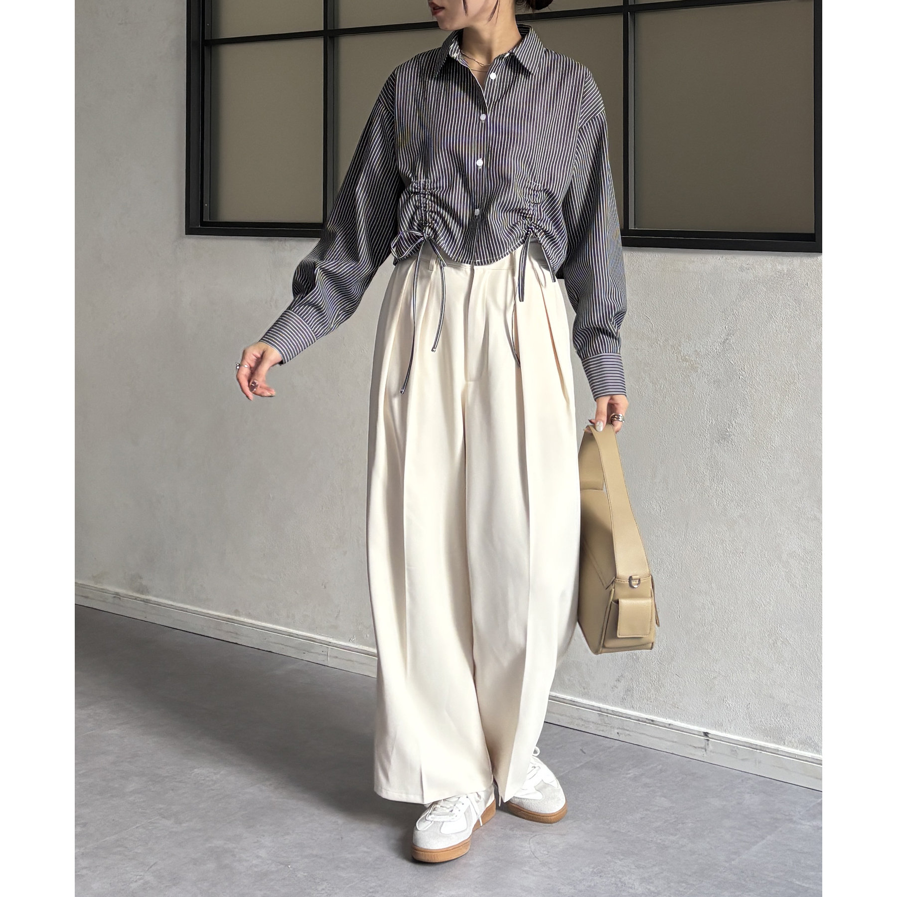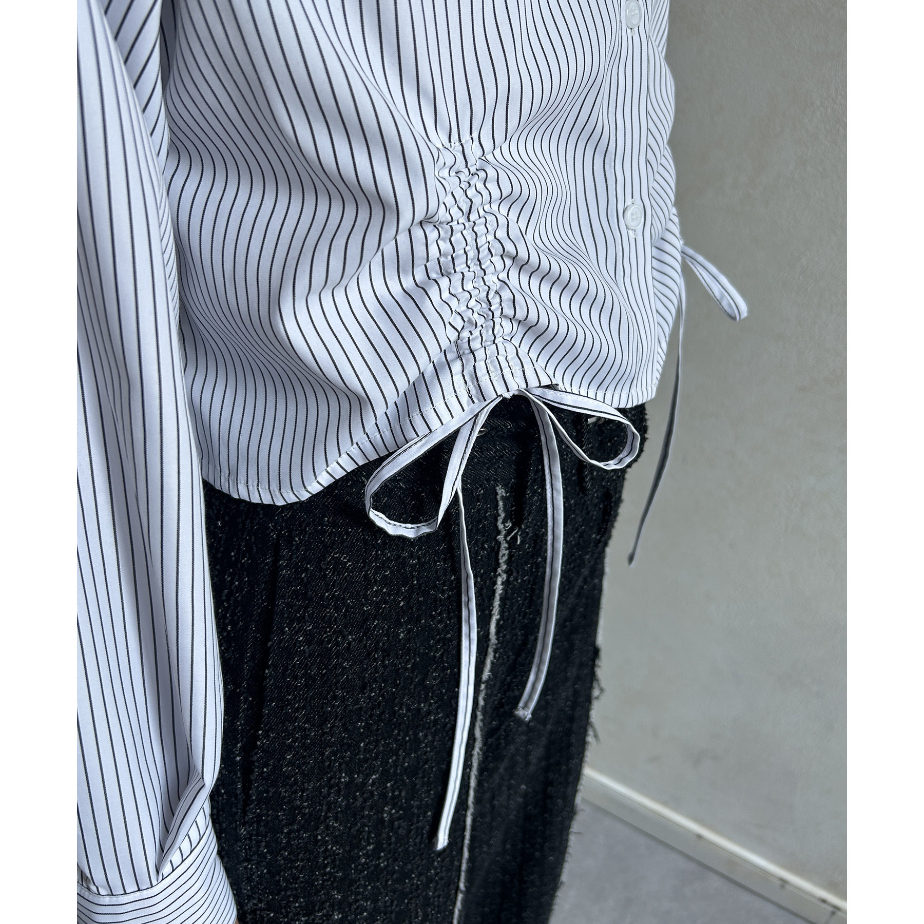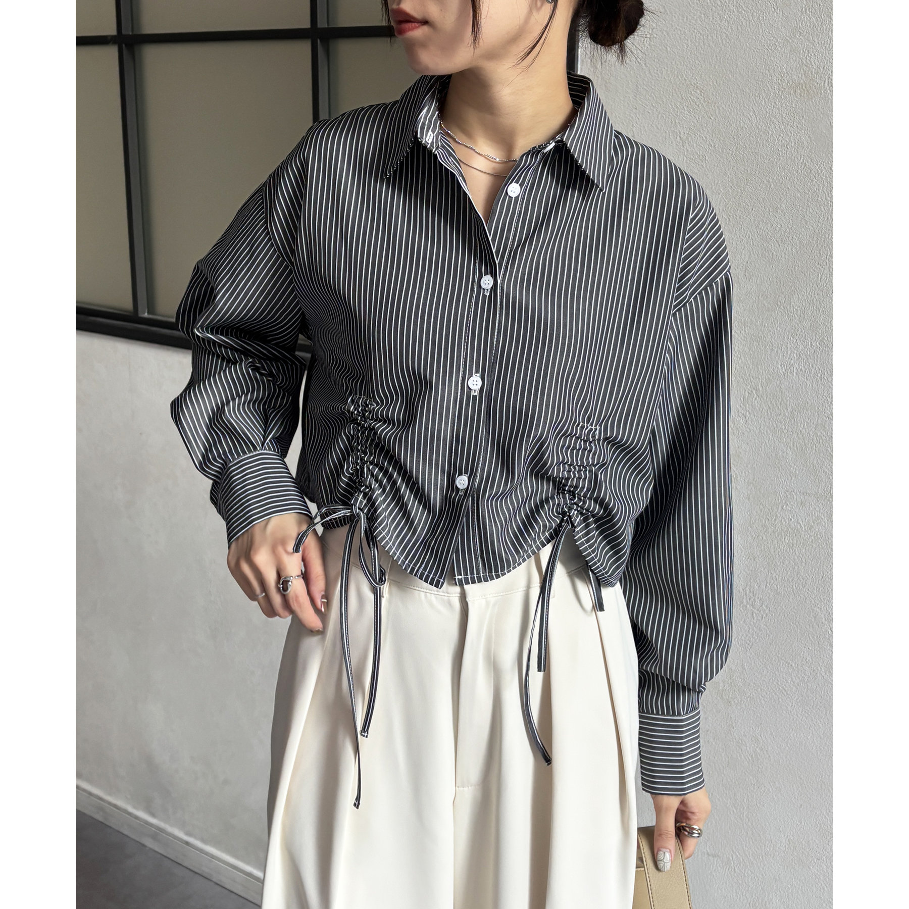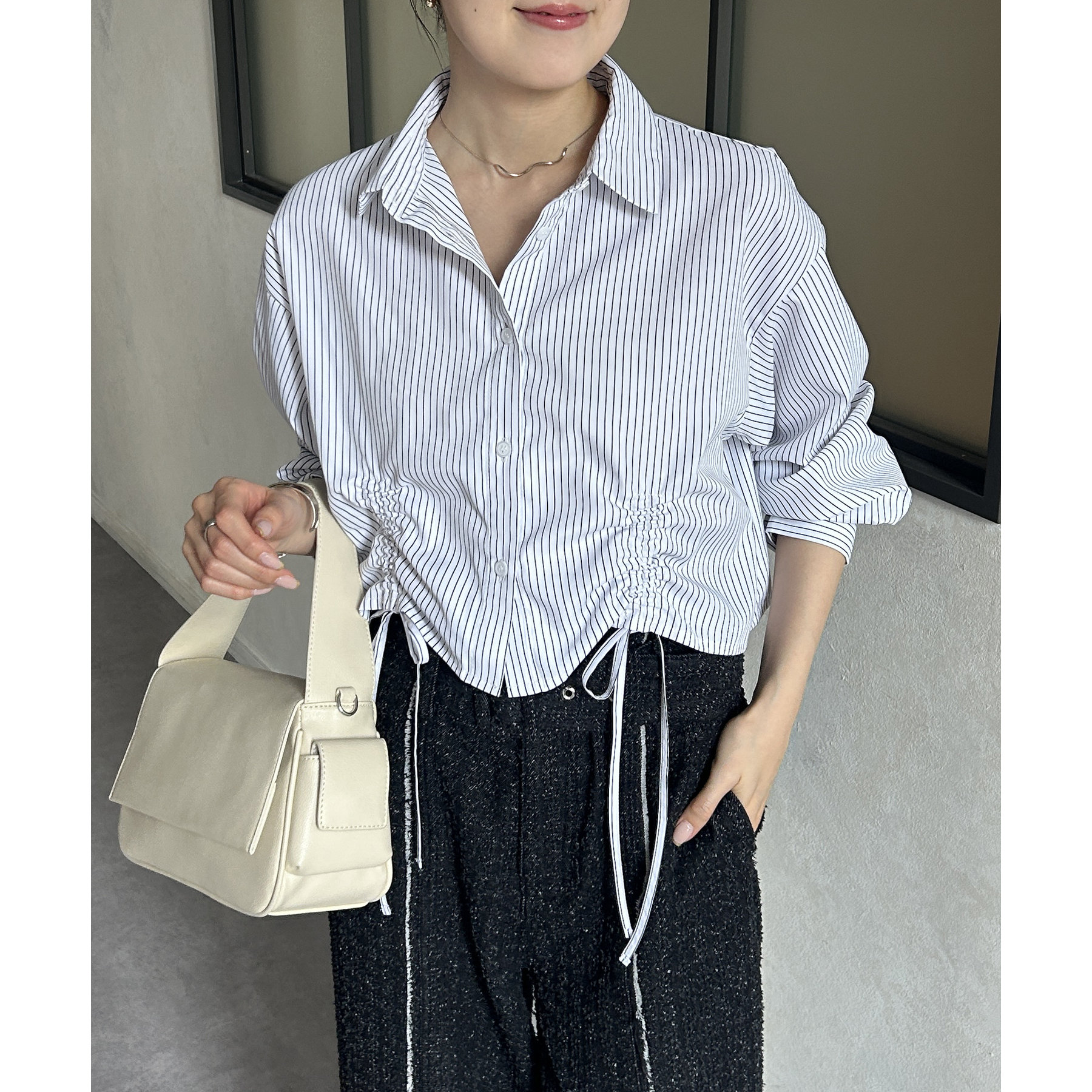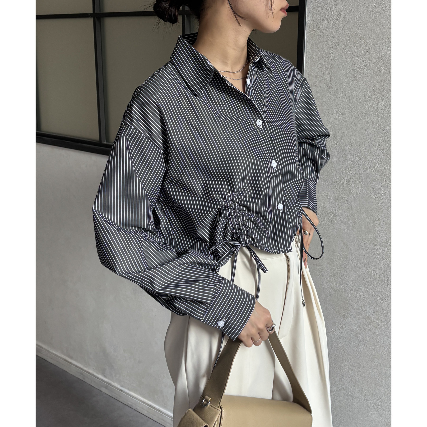 #シャツ #ストライプシャツ #ドロストデザイン #ショートシャツ