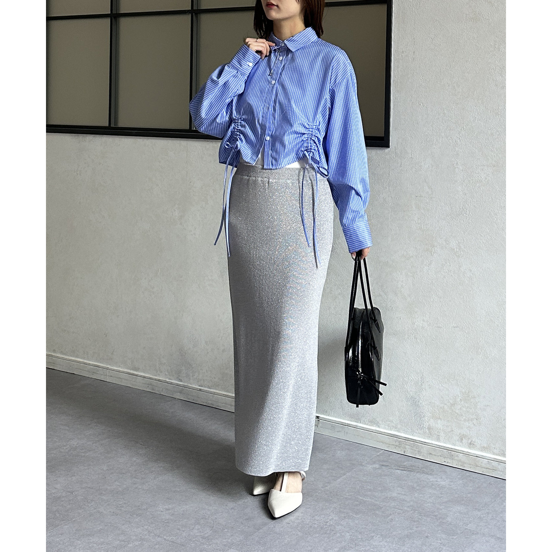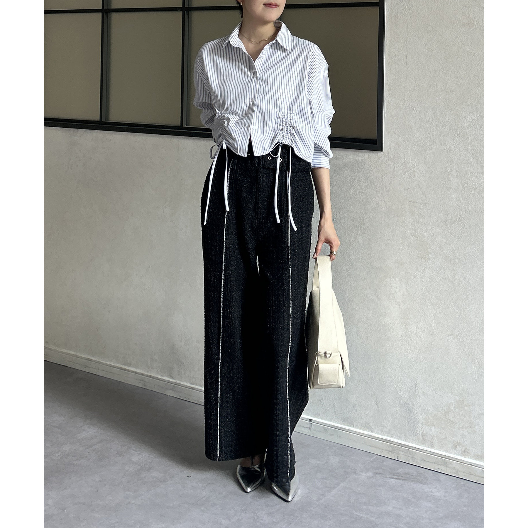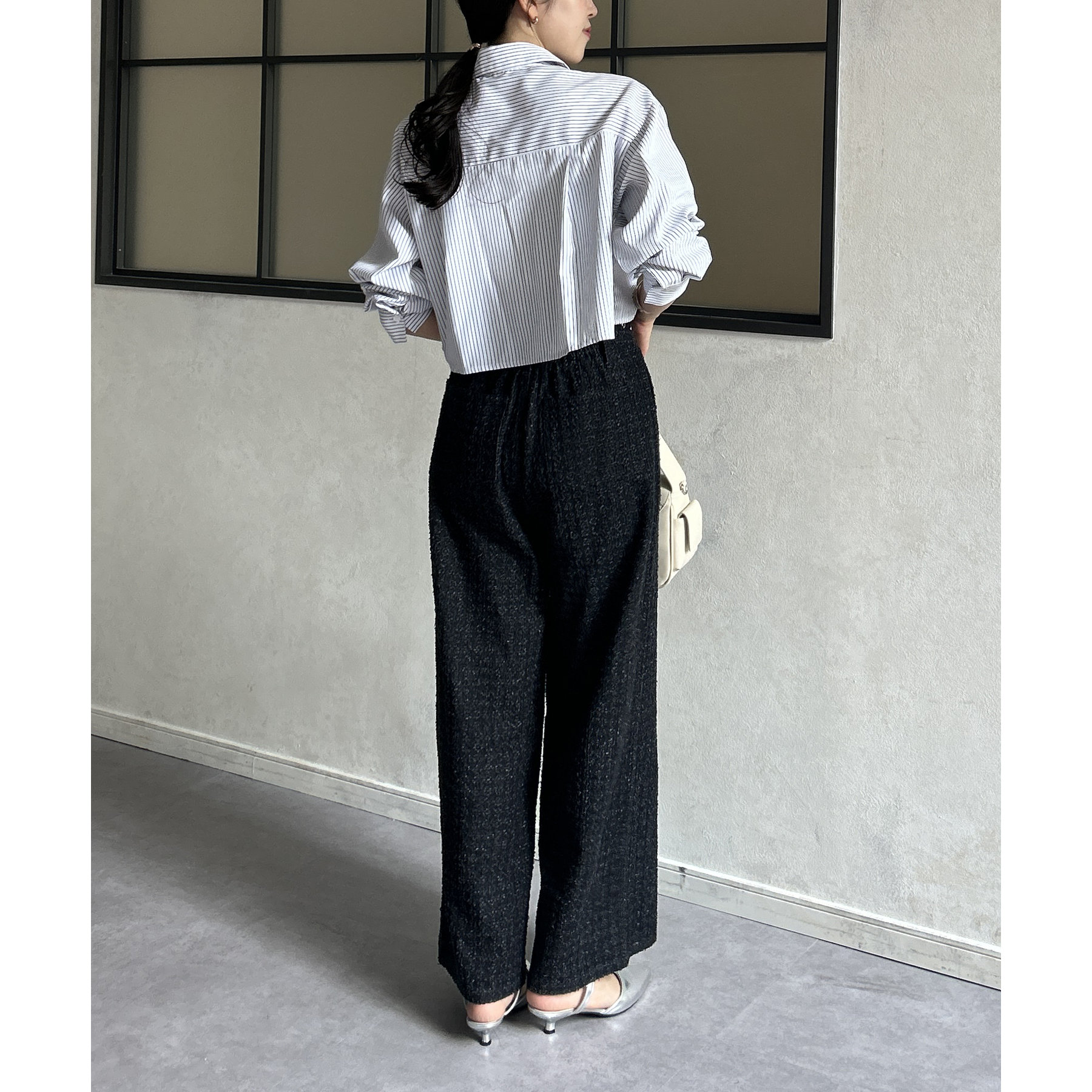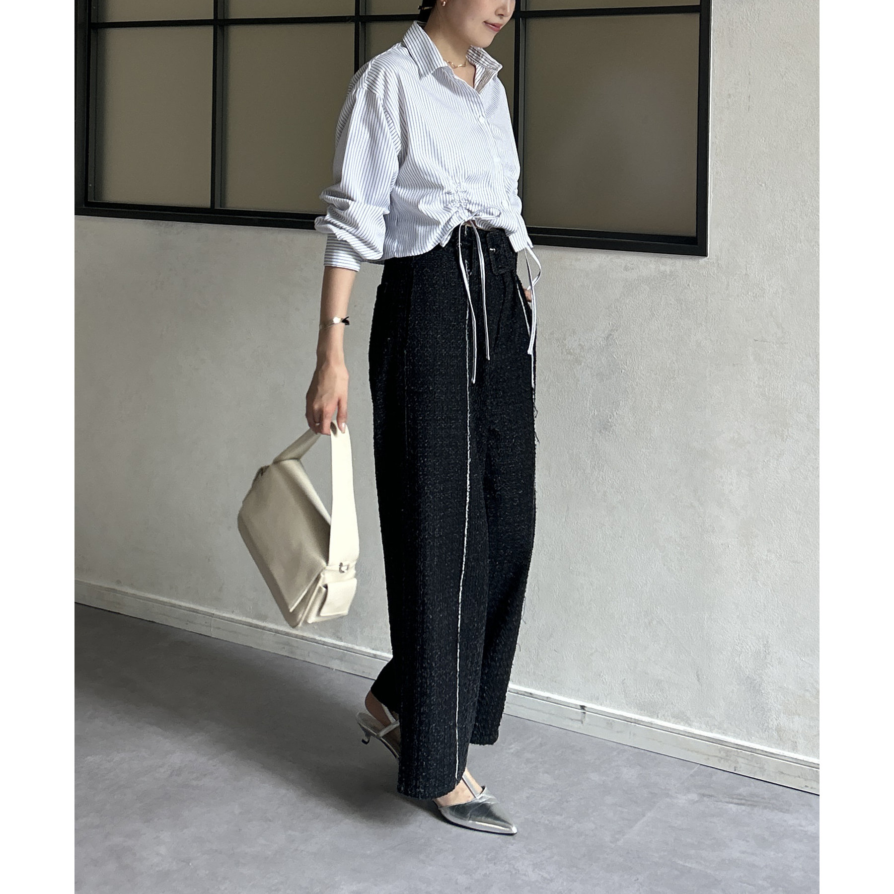 ・1枚でも華やかな印象になるシャツなので、ボトムスは