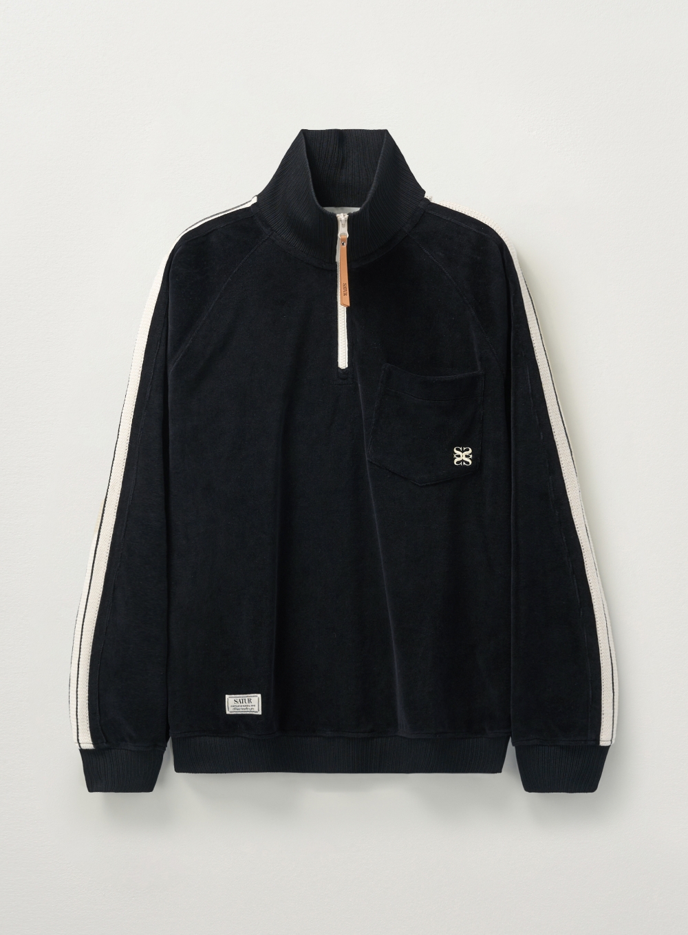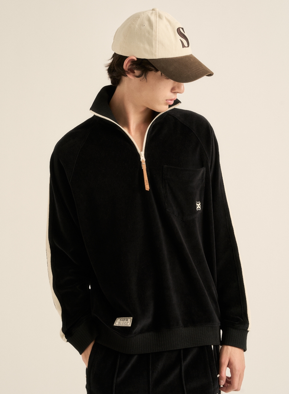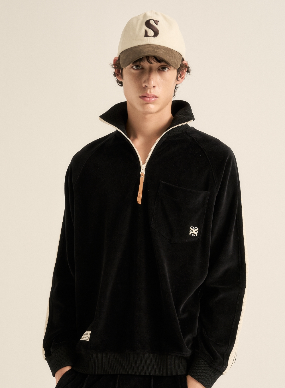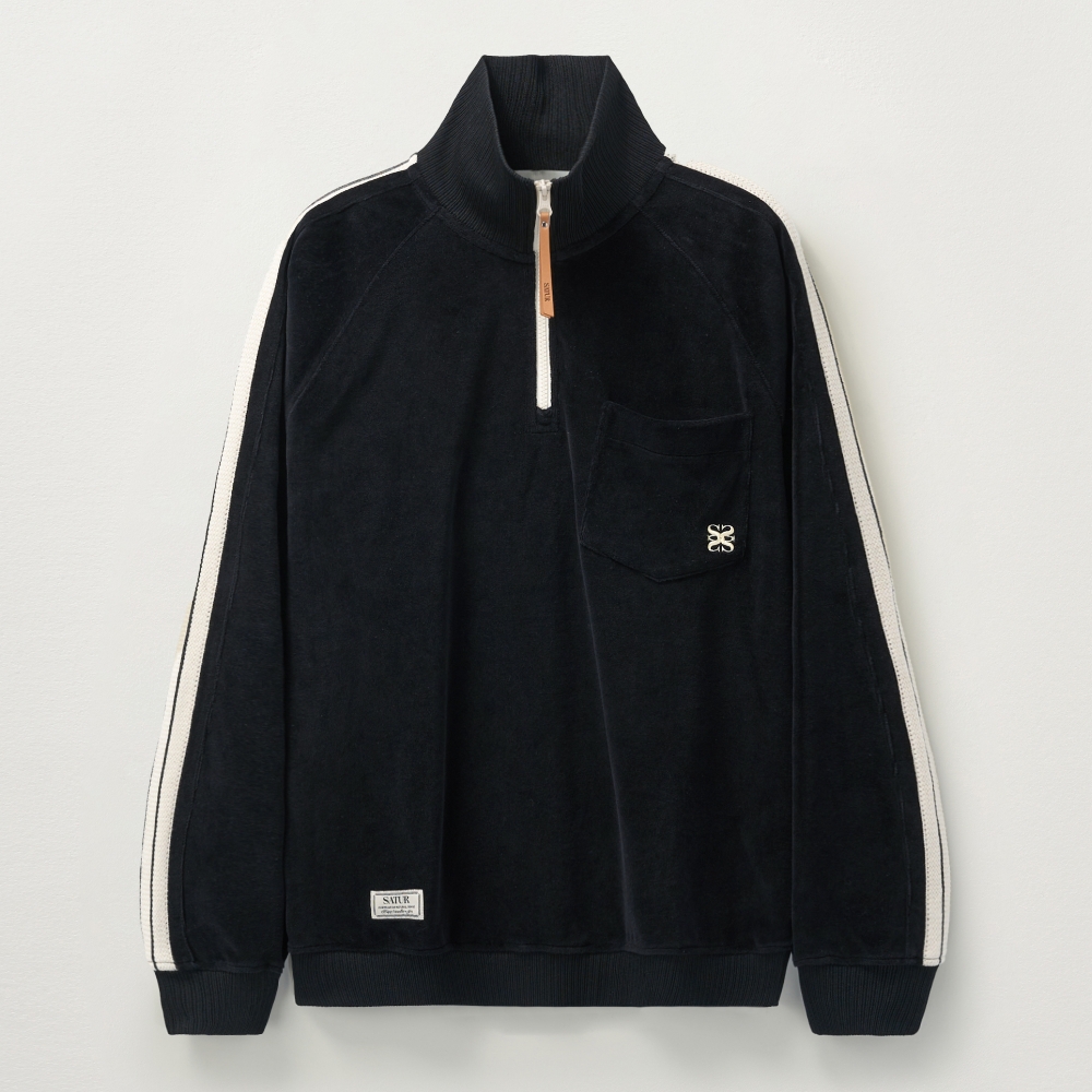 Velour Loose Fit Half Zip-up - Black