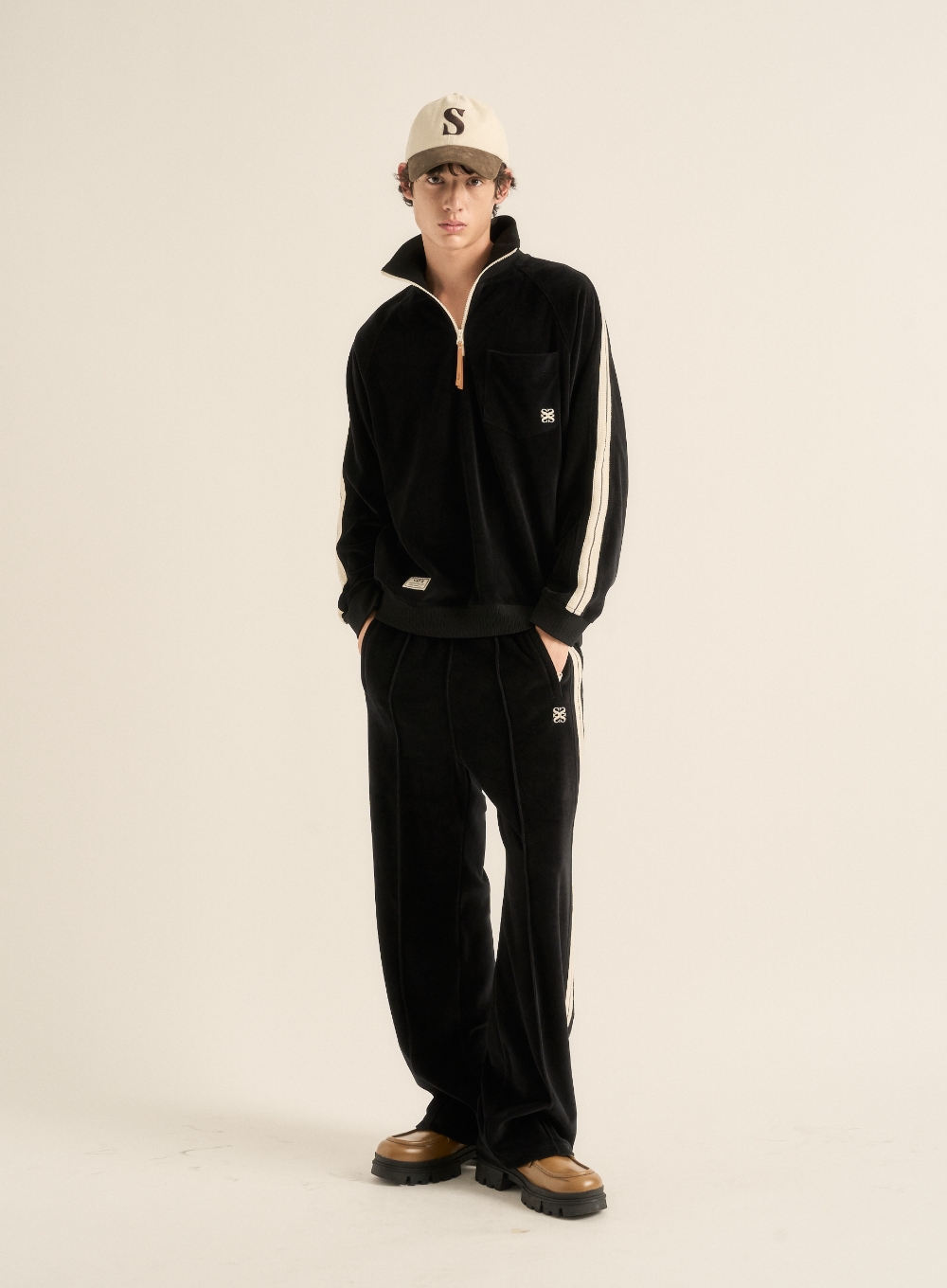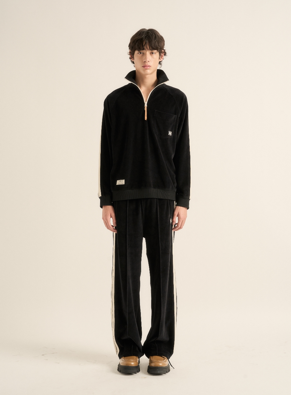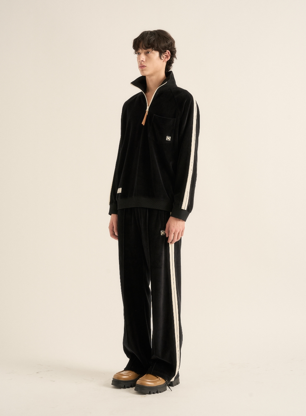 Velour Loose Fit Half Zip-up - Black
