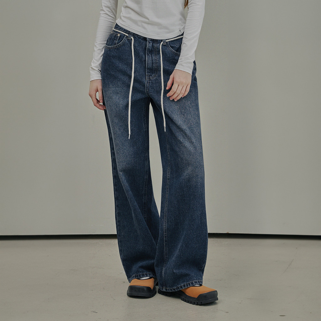 Rope Straight Wide-Leg Denim Pants