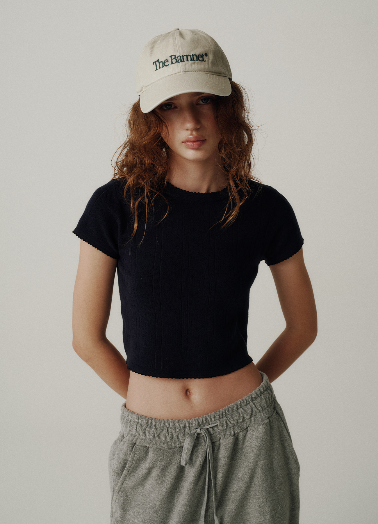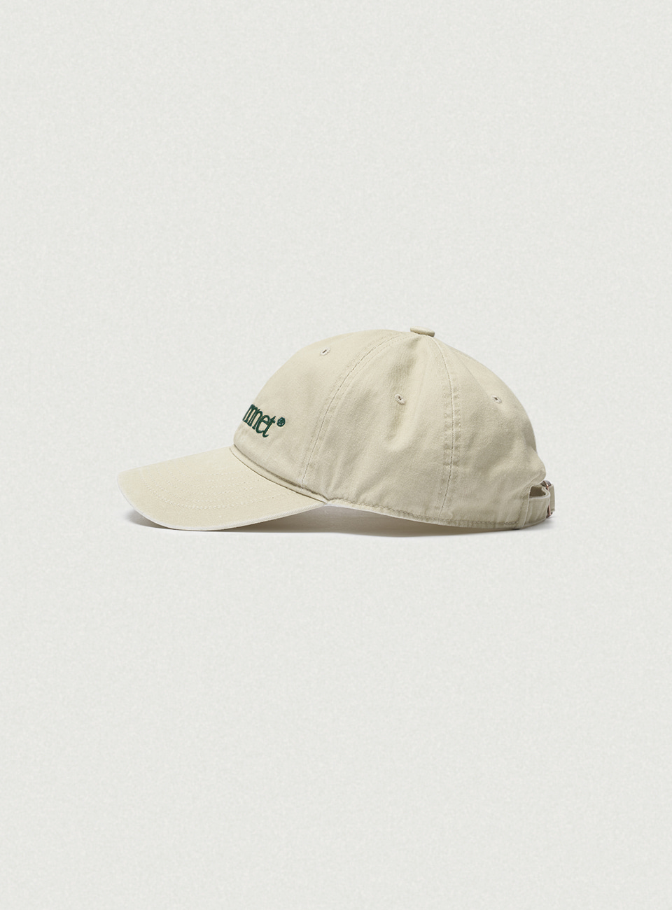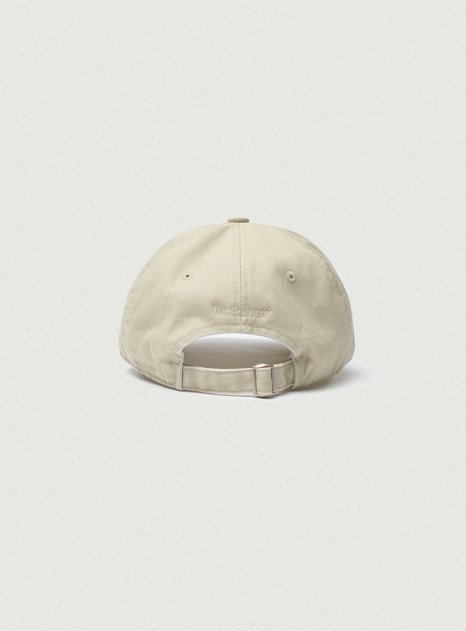 調節可能なストラップ付き、アンストラクチャー仕様のベースボールキャップタイプ。