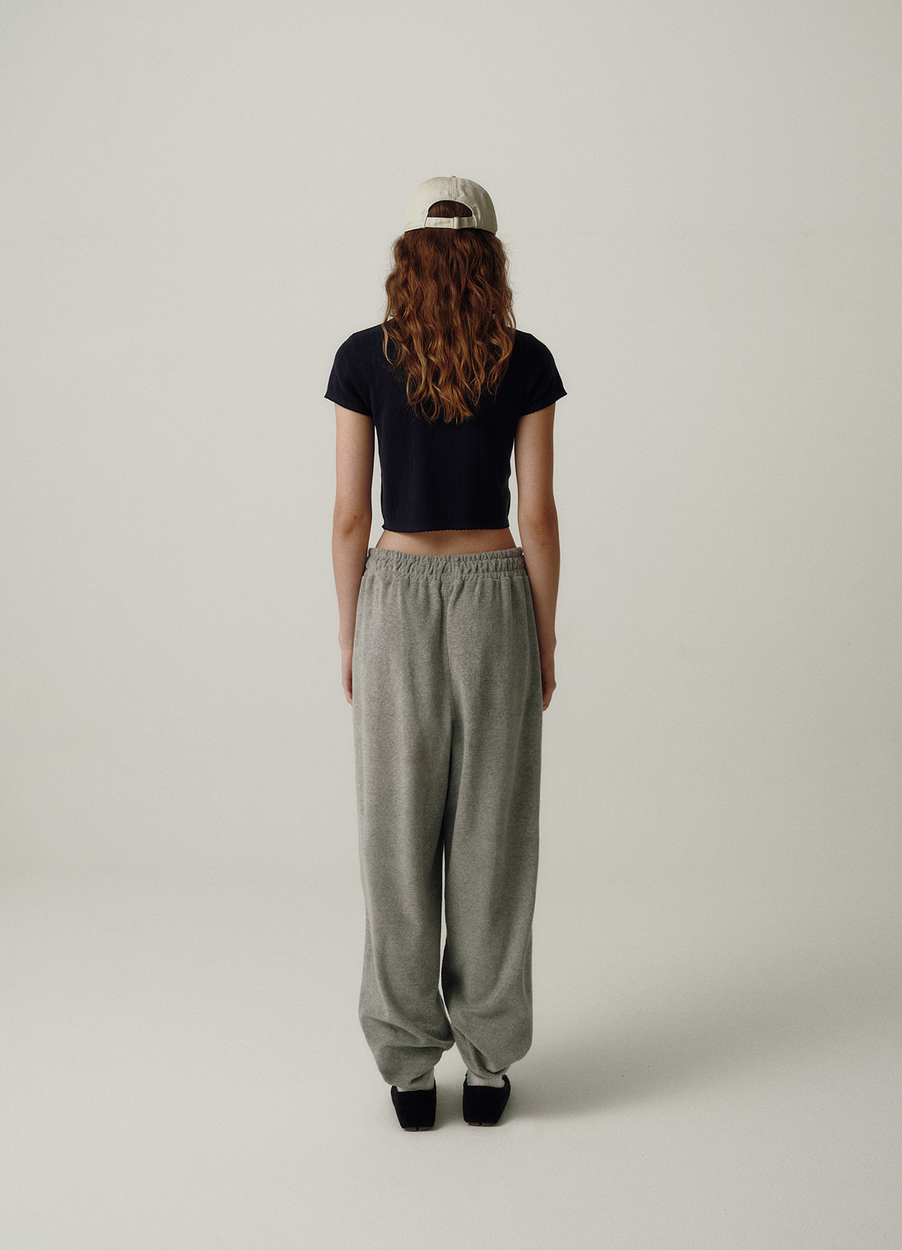ファブリックカラーとコントラストをなす配色で施されたロゴ刺繍ディテール。