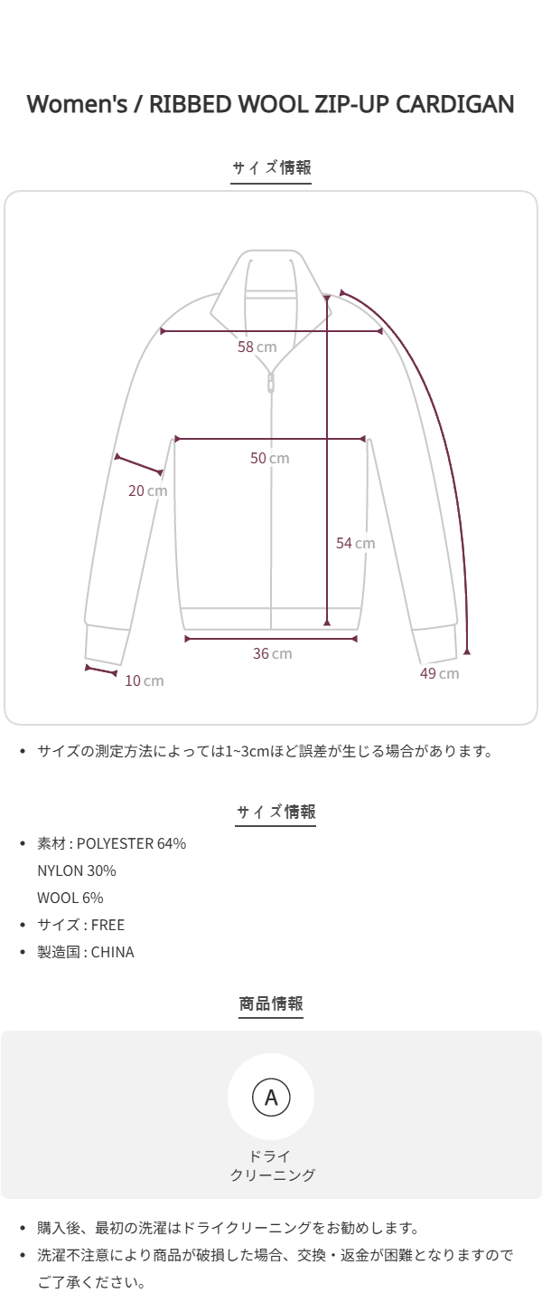 このブランドの商品はお客様の都合による交換および返品はお受けいたしかねます。 十分にご注意の上、ご注文をお願い致します。