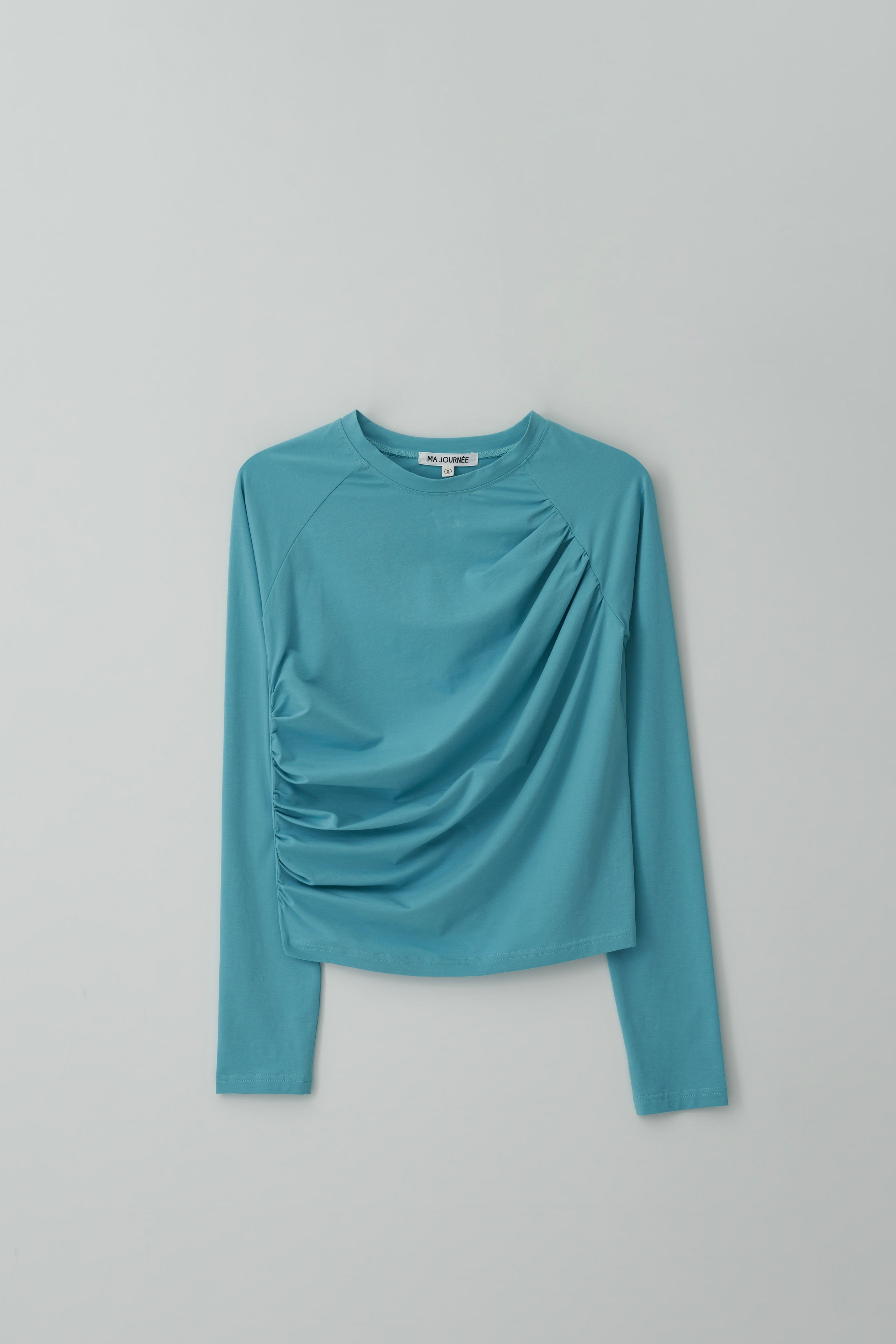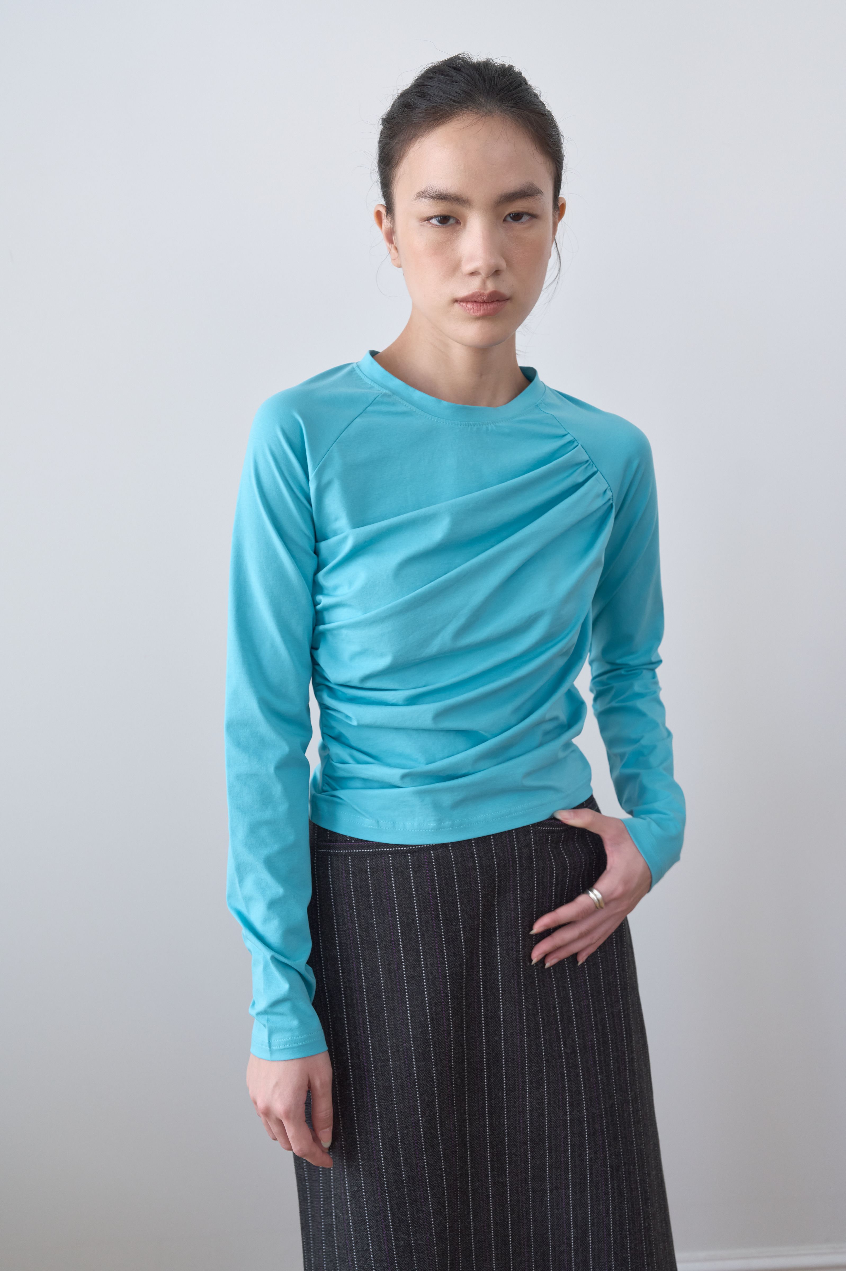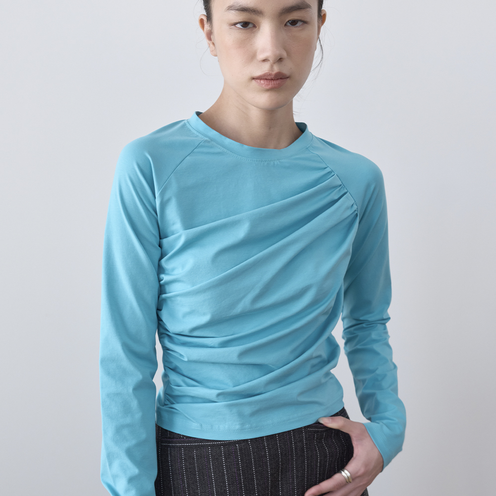 [Influencer pick] RAGLAN SHIRRING T-SHIRT_AQUA BLUE
